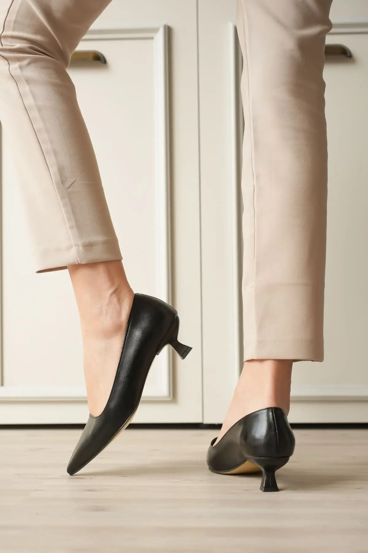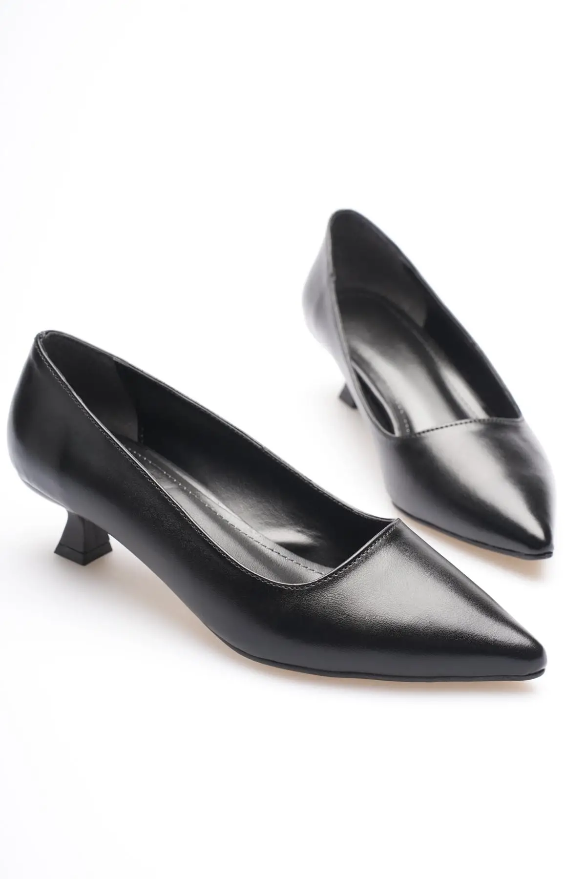 Siyah Kadın Günlük Kısa Topuklu Stiletto Ayakkabı TR20MS03A