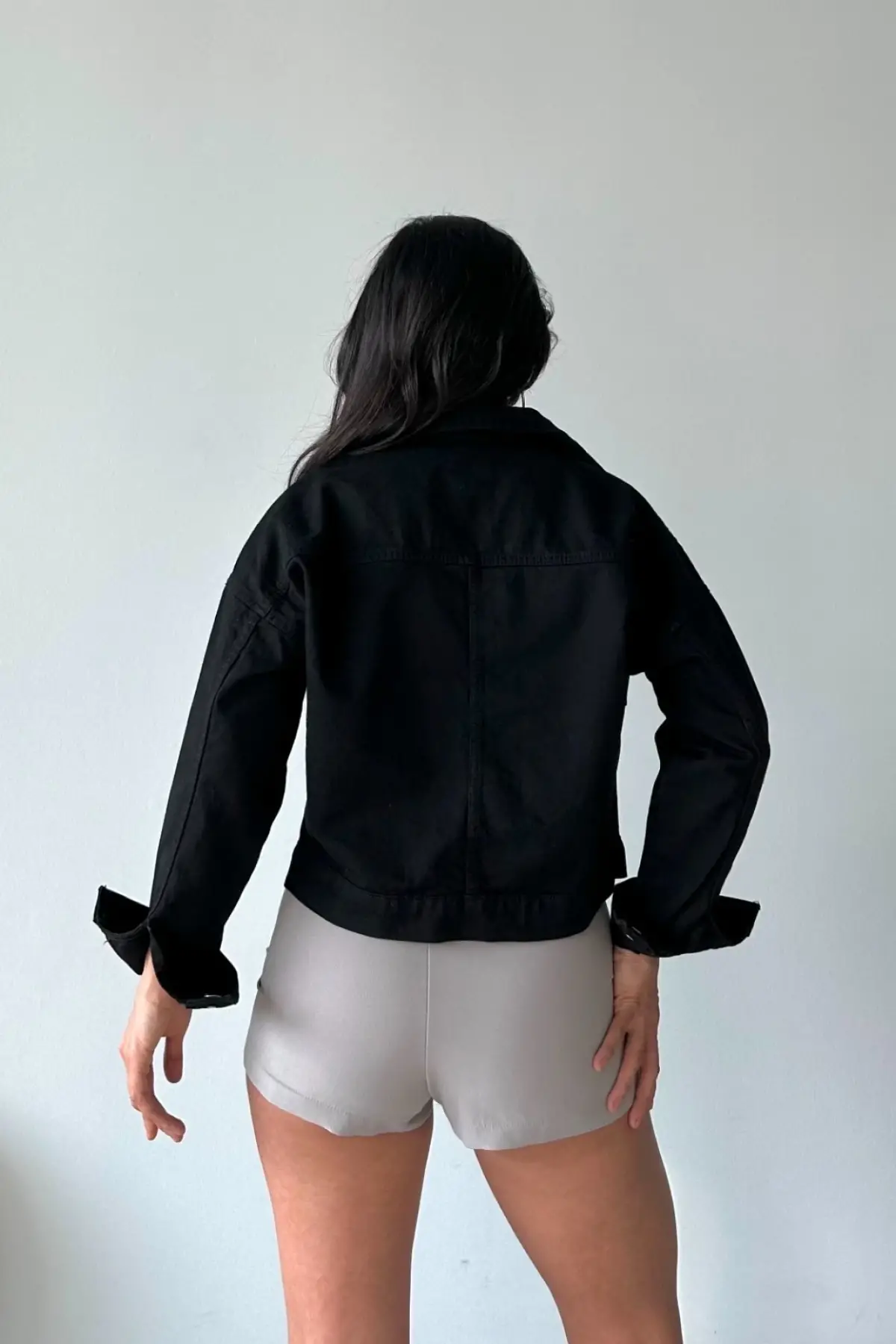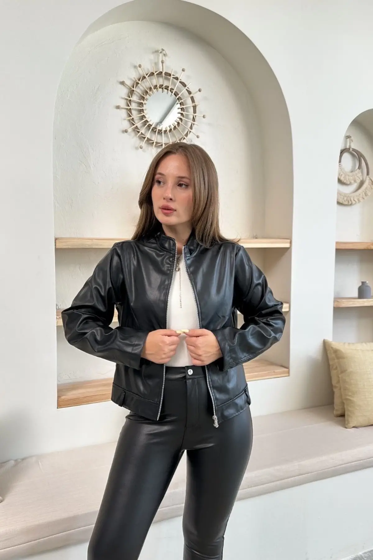 Şıklık ve rahatlık arayan kadınların tercihi olan siyah kapşonlu yarım fermuarlı ceket, her mevsim kullanım için idealdir.