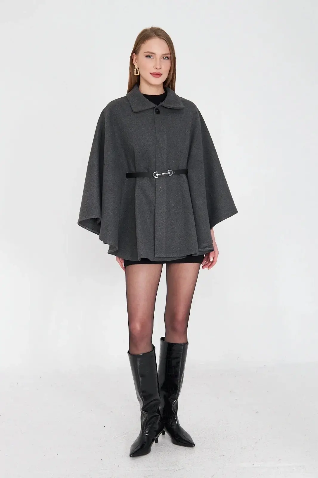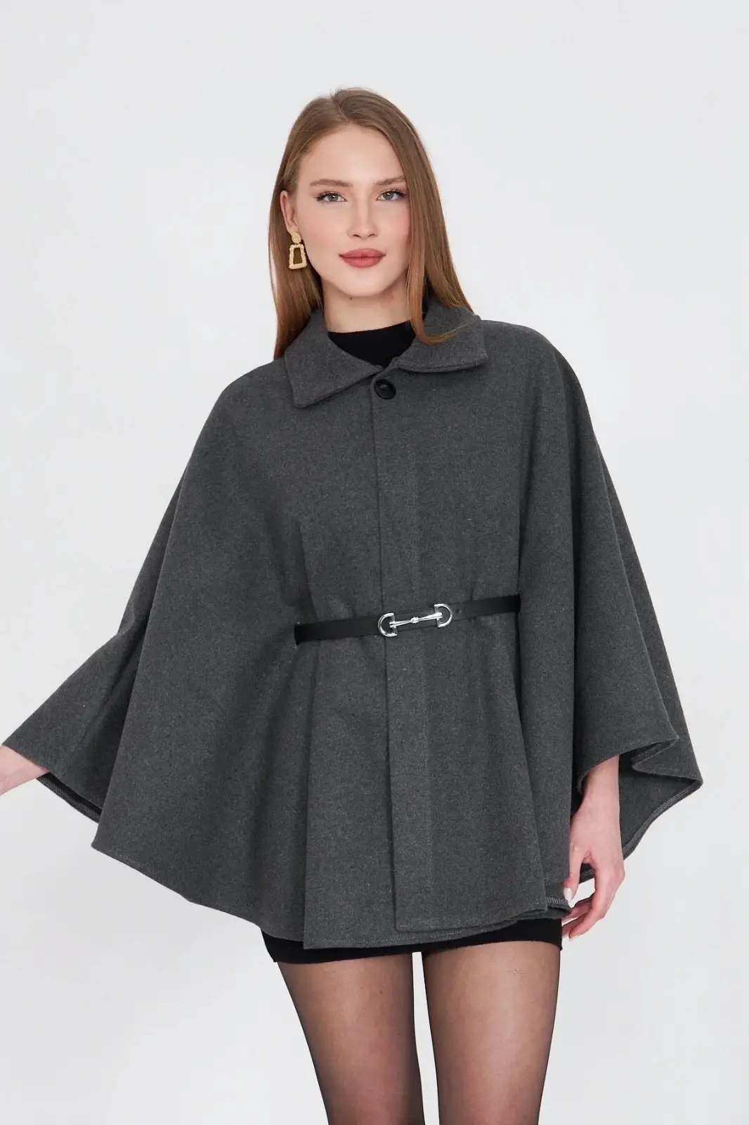 Şık ve modern bir görünüm elde etmek isteyen kadınlar için ideal bir seçenek olan Kemerli Kaşe Panço Antrasit PT, soğuk havalarda şıklığınızı korumanıza yardımcı olacak.