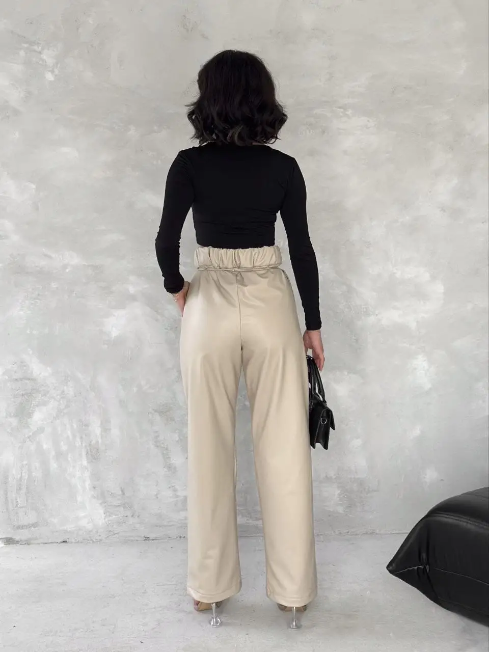 Şıklığı ve rahatlığı bir arada sunan Kendinden İnce Kemerli Deri Pantolon Bej, gardırobunuzun vazgeçilmezi olmaya aday! İşte bu pantolonun özellikleri: