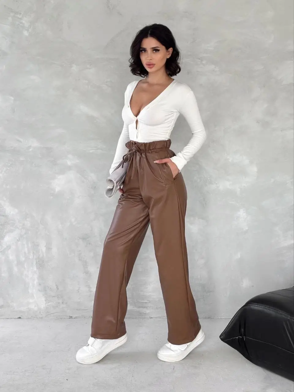 Şıklığı seven kadınların favorisi olmaya aday Kendinden İnce Kemerli Deri Pantolon Kahve T1178, hem şık hem de rahat bir seçenek arayanların tercihi olacak!