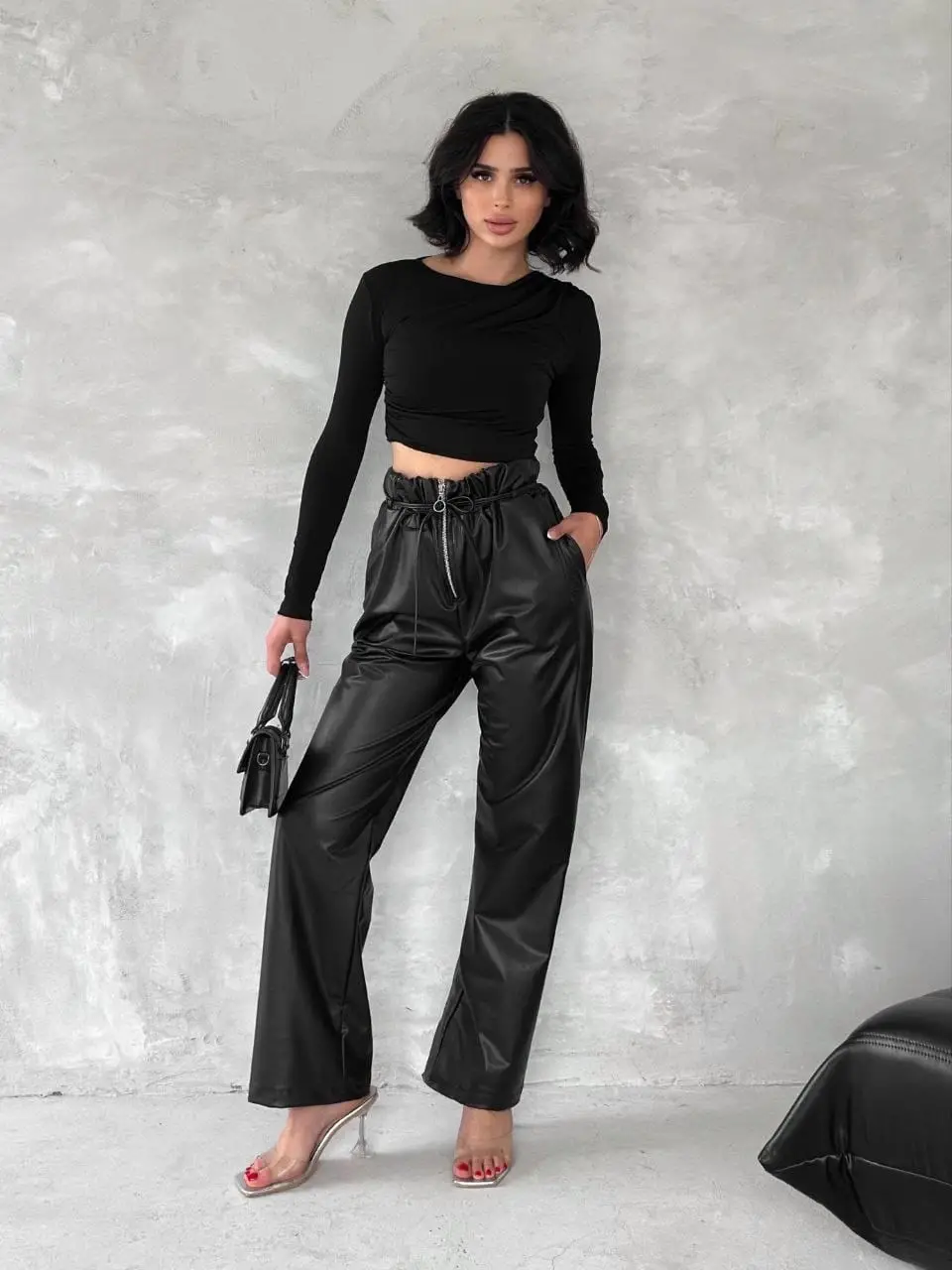 Güvenilir ve şık görünüm elde etmek isteyen kadınların tercihi olan T1178 Deri Pantolon, hem rahatlığı hem de şıklığı bir arada sunuyor.