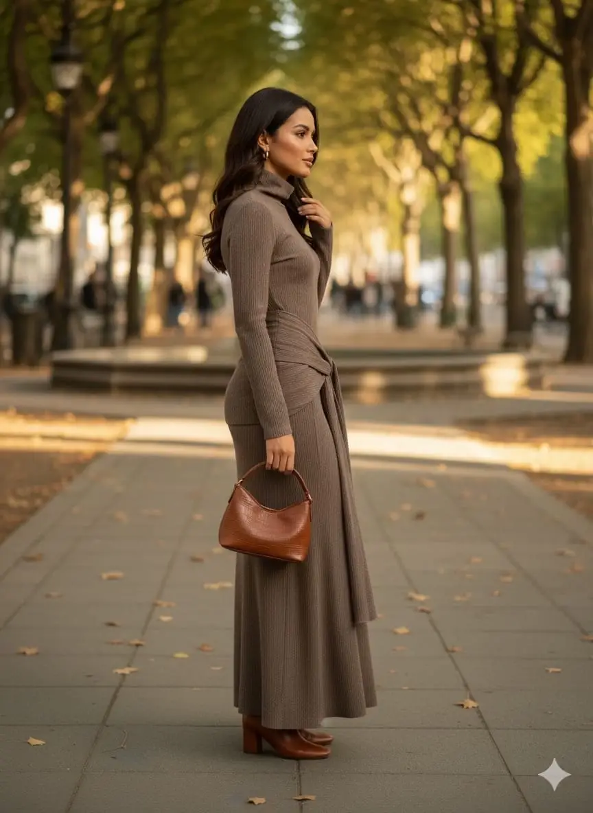 Bu vizon renkli uzun elbise, şıklığı ve rahatlığı bir arada sunuyor. Kendinden kemer detayı sayesinde belinizi ön plana çıkarırken, salaş kesimiyle de hareket özgürlüğü sağlar. İster günlük kullanım için ister özel davetlerde tercih edin, her ortama uyum sağlayacak şık bir seçenektir.