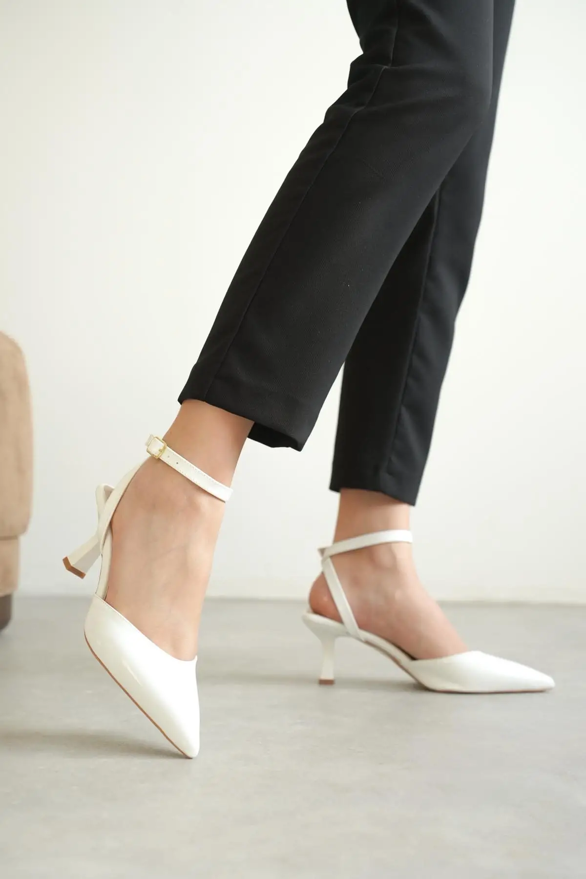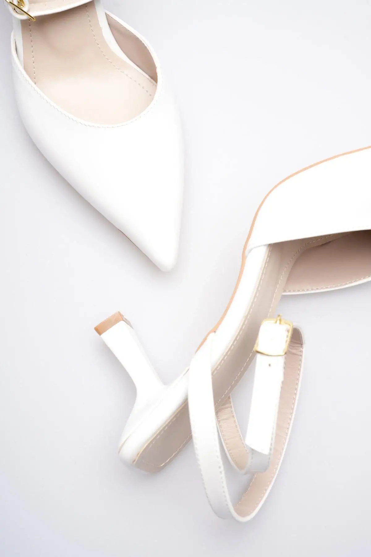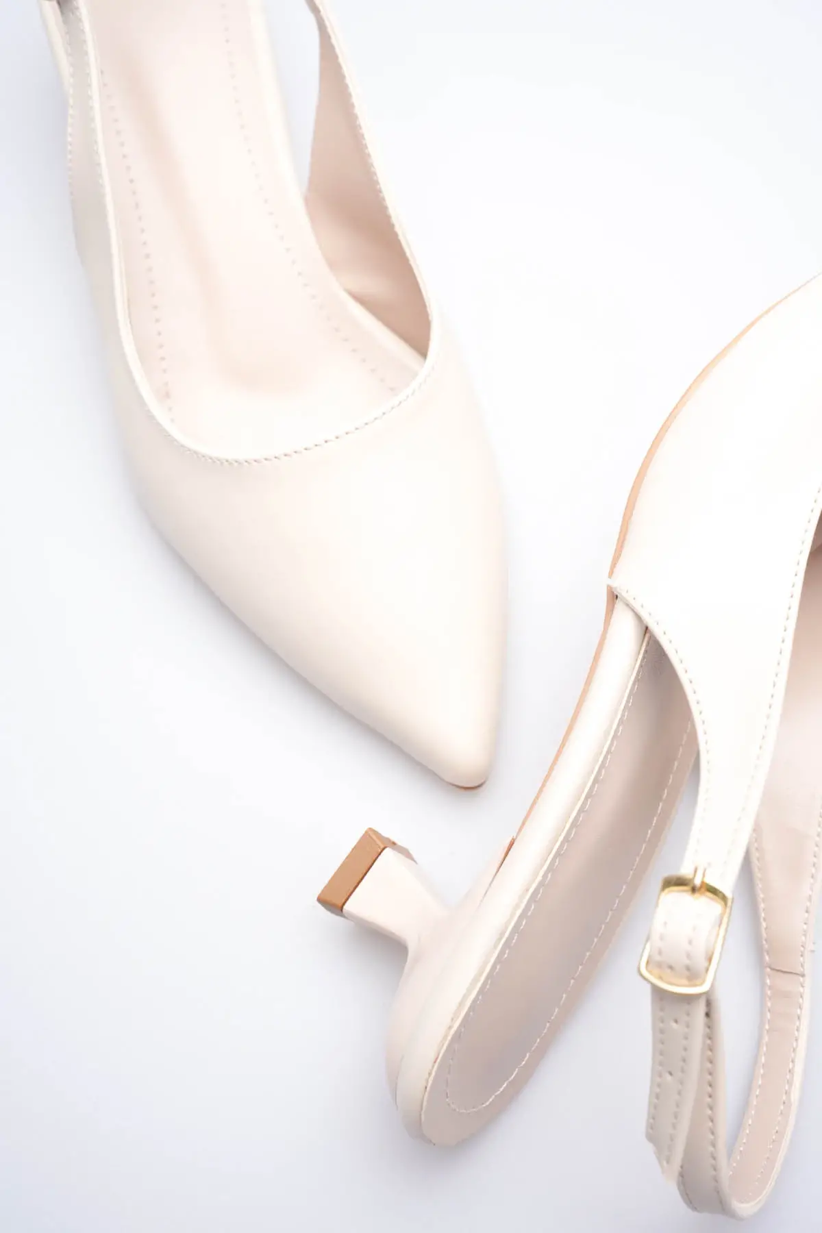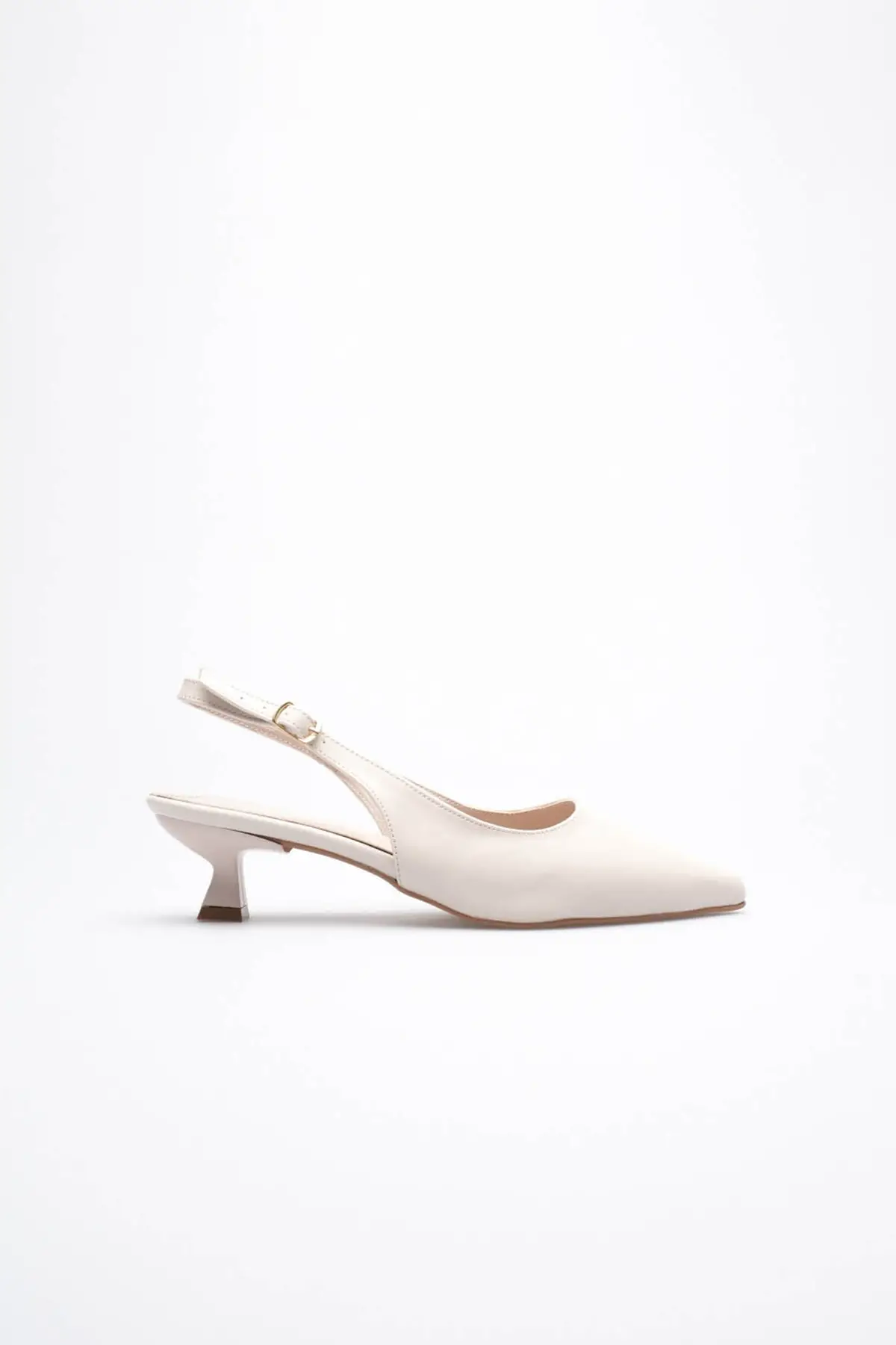 Kadın Bej Sivri Burun Slingback Kısa Topuklu Ayakkabı TR20MS04B