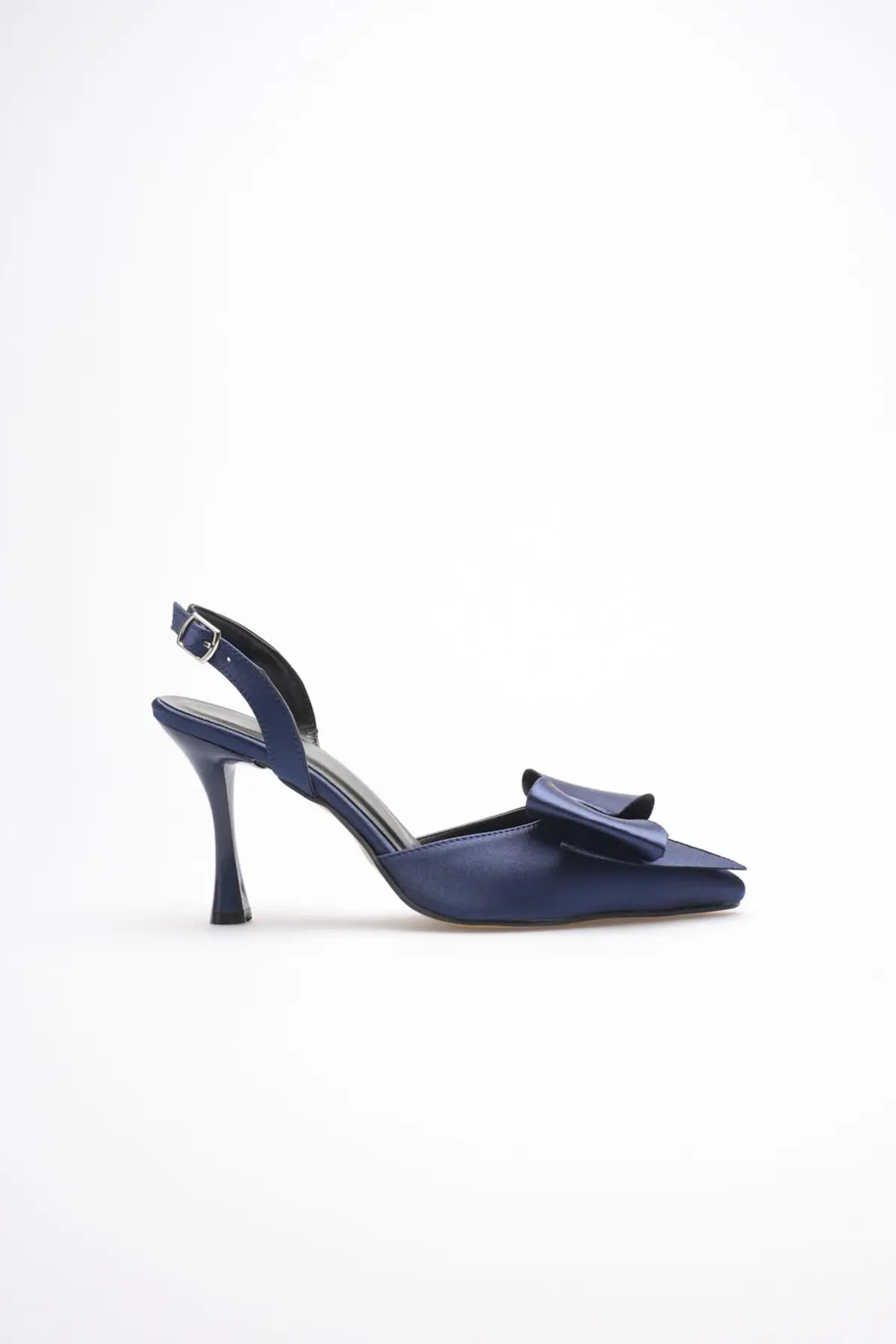 Kadın Lacivert Fiyonklu Saten Slingback Topuklu Ayakkabı TR40MS01E