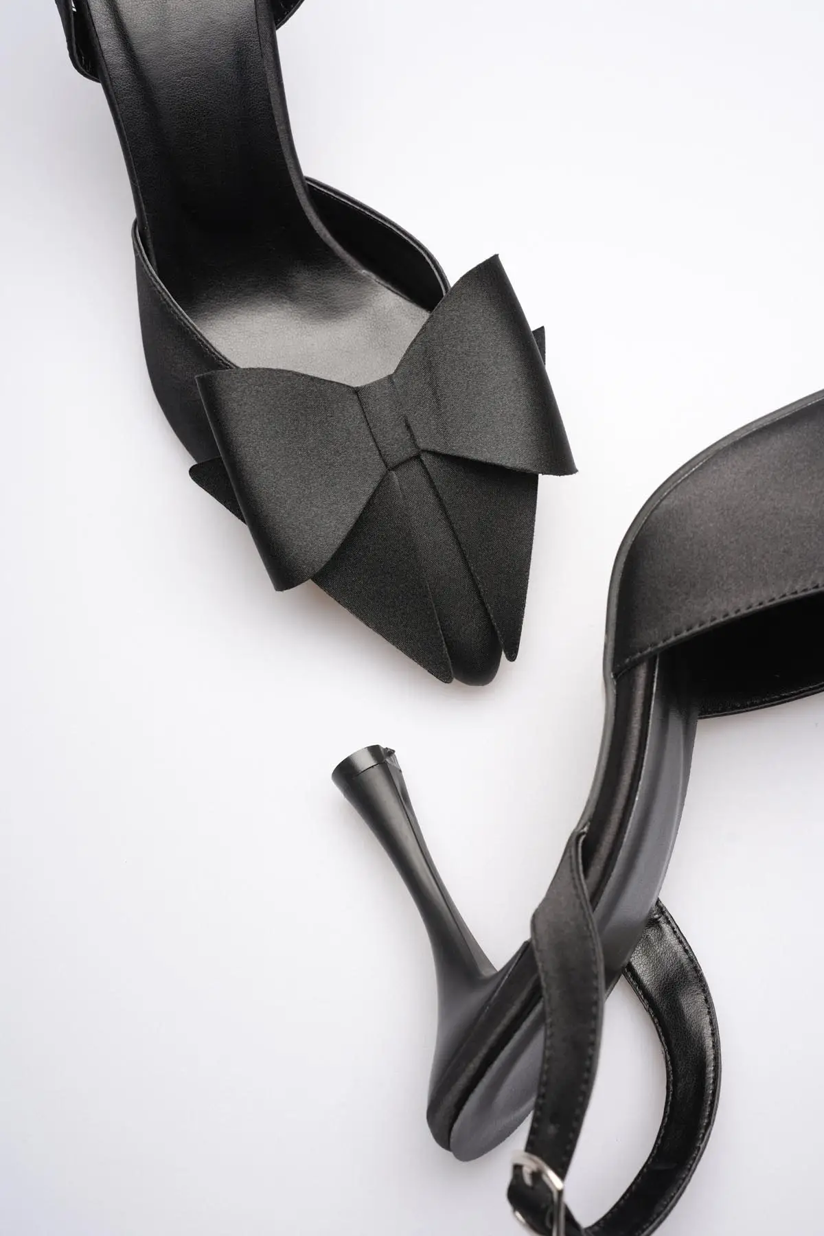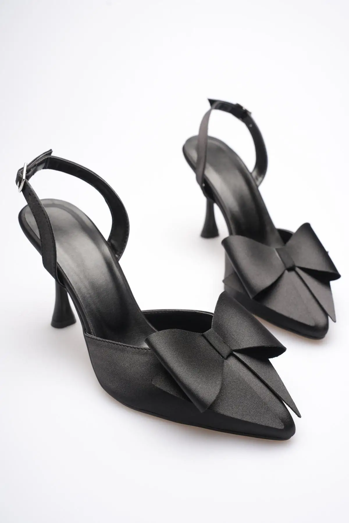 Kadın Siyah Fiyonklu Saten Slingback Topuklu Ayakkabı TR40MS01A