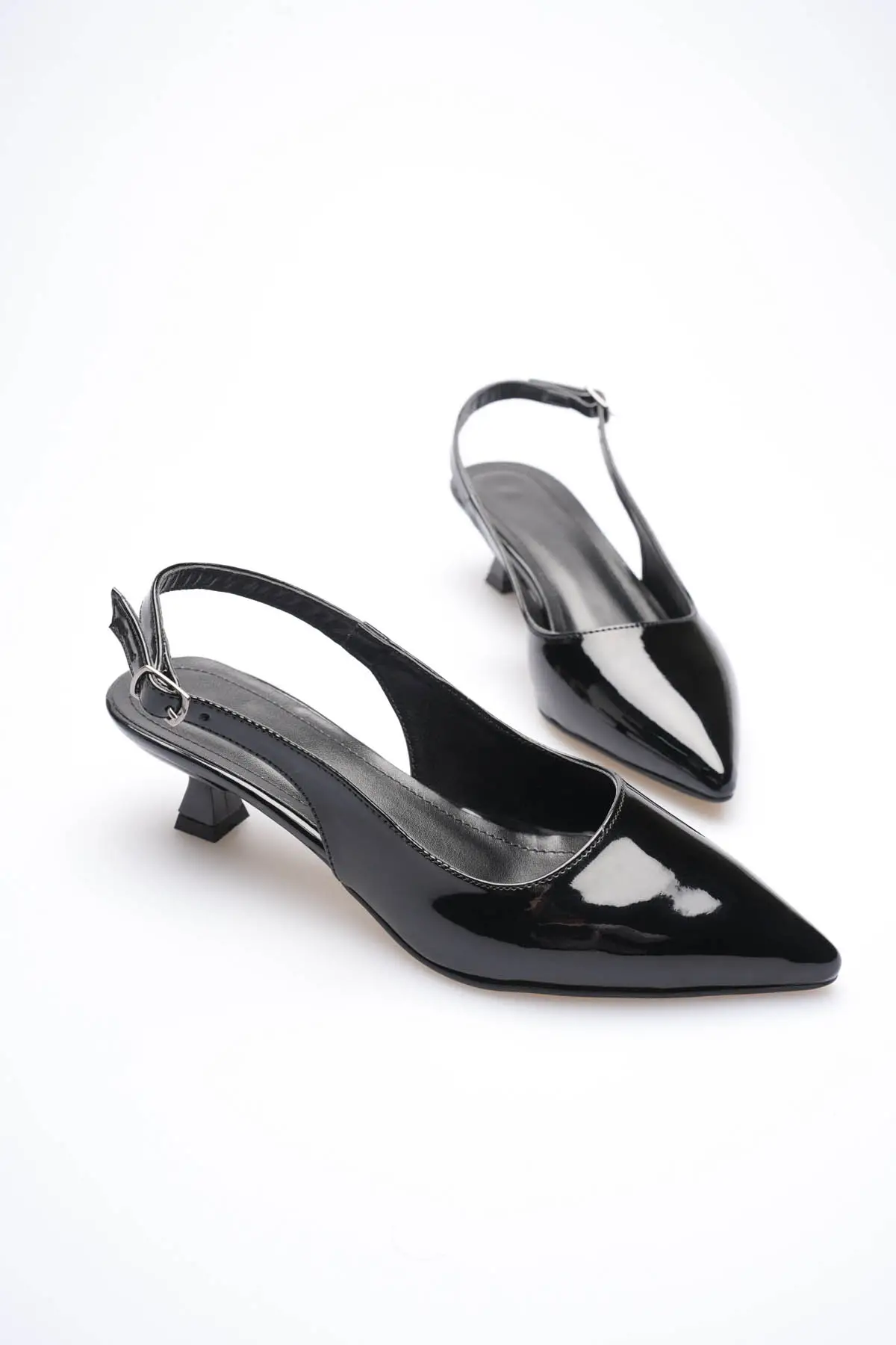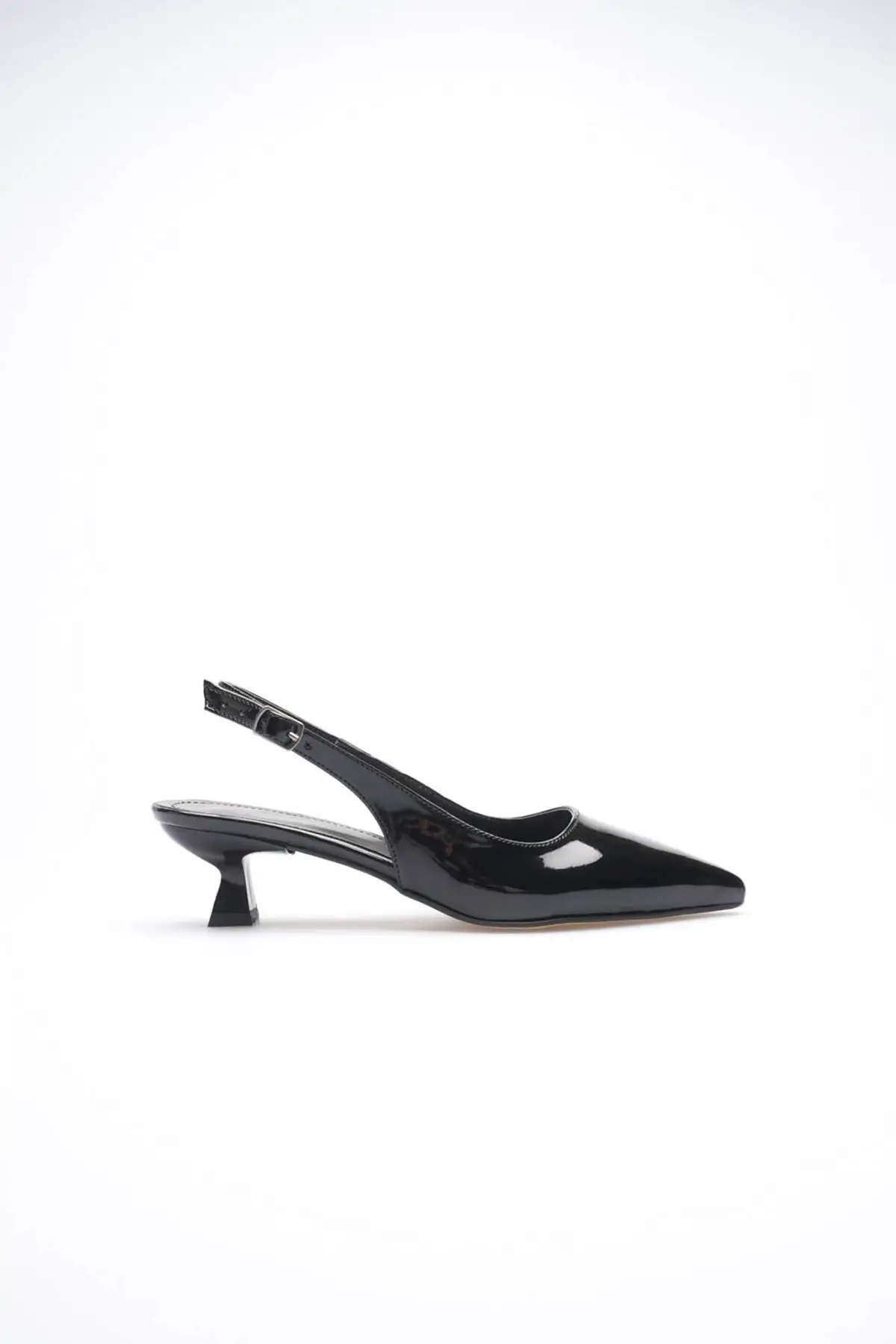 Kadın Siyah Rugan Sivri Burun Slingback Kısa Topuklu Ayakkabı TR20MS04E