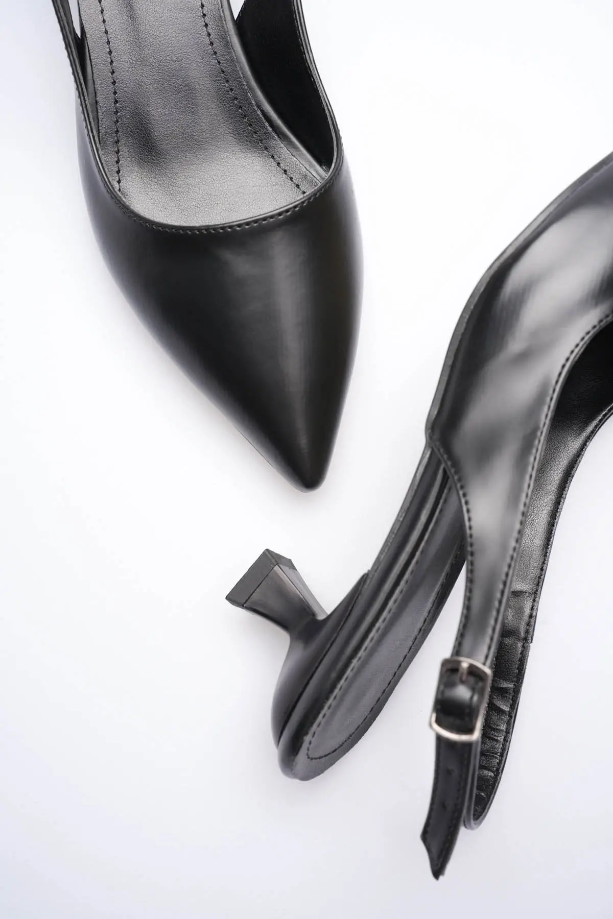 Kadın Siyah Sivri Burun Slingback Kısa Topuklu Ayakkabı TR20MS04A