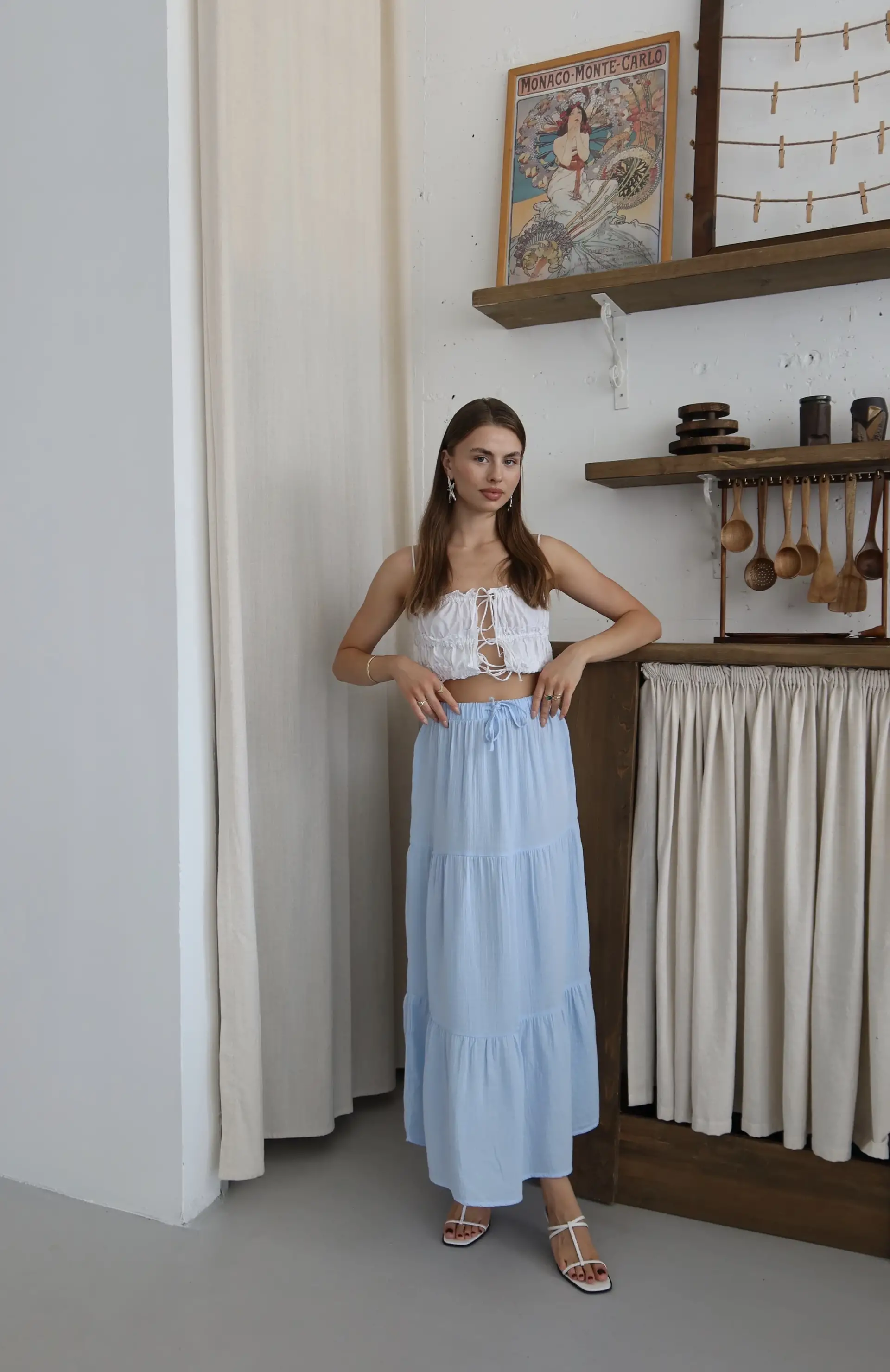 Bu muhteşem Müslin Kumaş Keten Uzun Etek, gardırobunuzda şıklığı ve rahatlığı bir araya getiriyor.