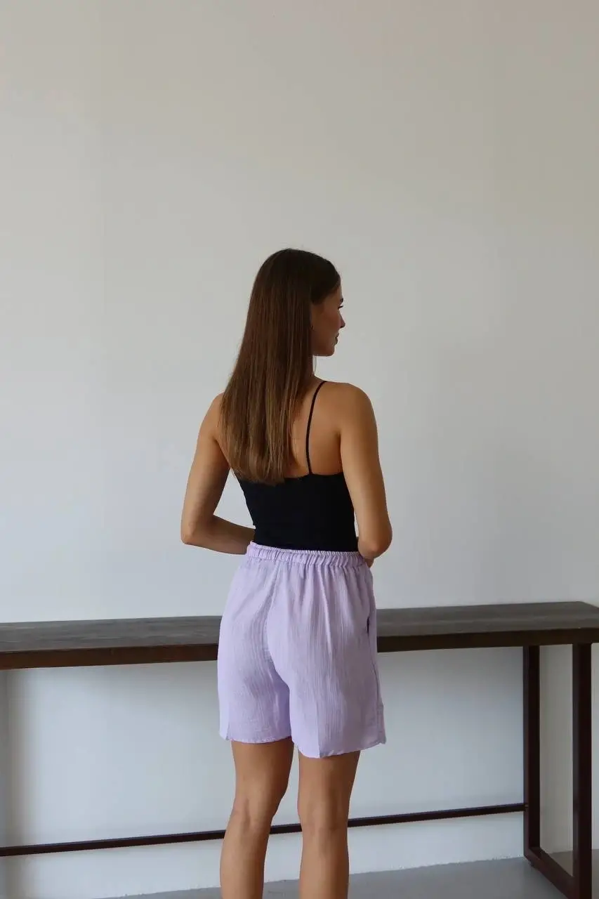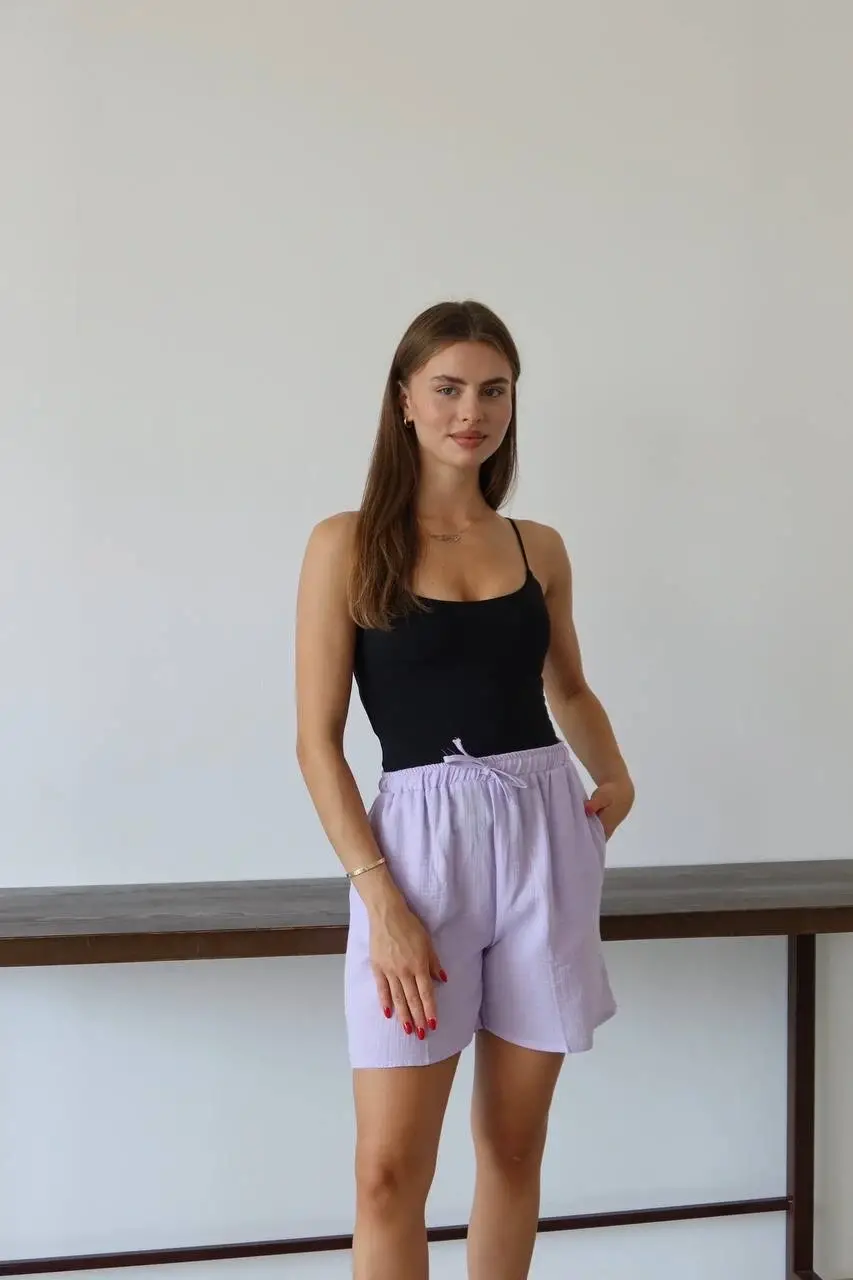 Müslin Kumaş Şort Bağcıklı Lila PT, gardırobunuzun vazgeçilmez parçası olmaya aday! Rahatlığı ve şıklığı bir arada sunan bu şort ile şıklığı yakalayacaksınız.