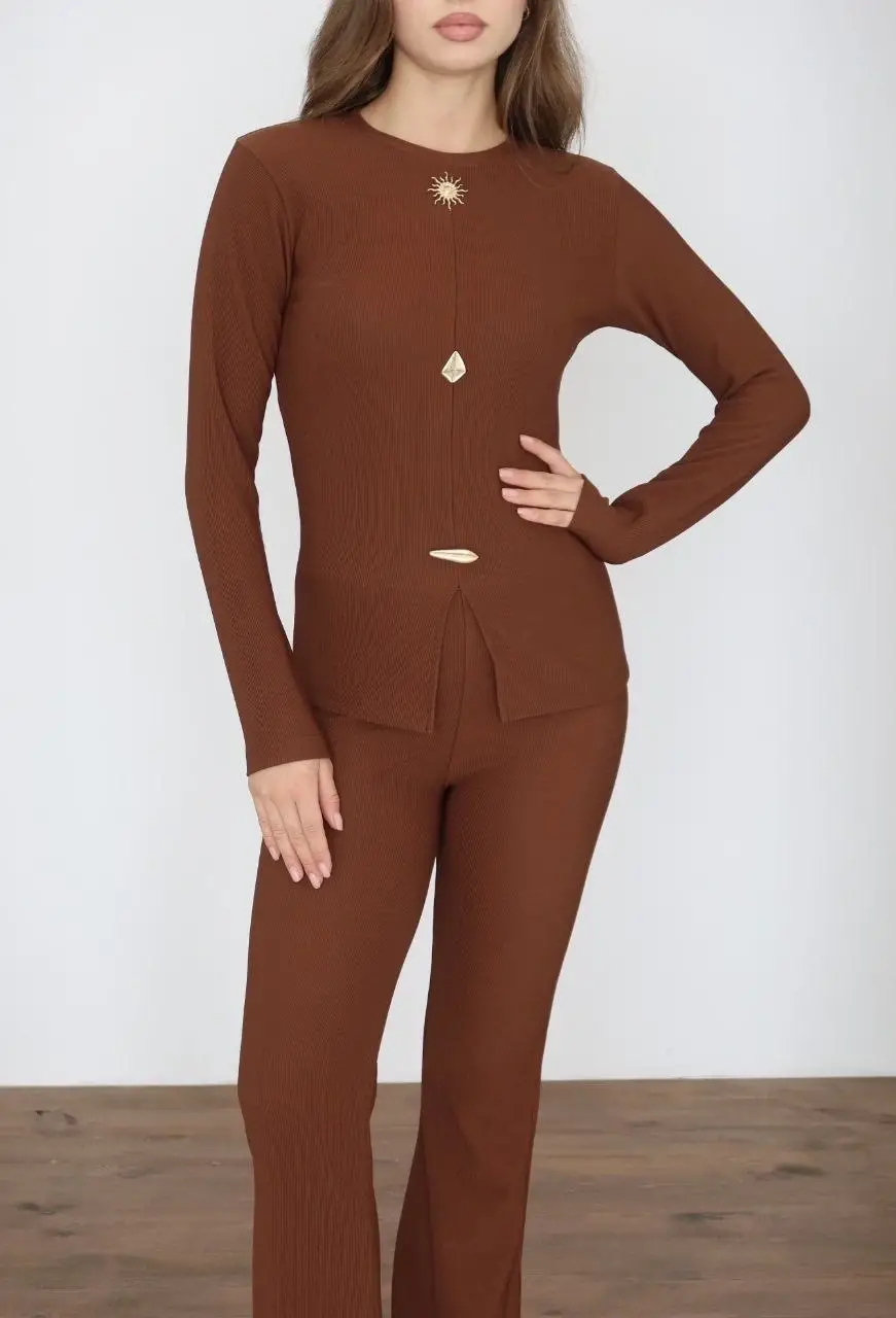Yeni sezonun trendlerini yansıtan Ottoman alt üst takım kahve PT510442, hem şık hem de şıklığıyla öne çıkan bir seçenektir.