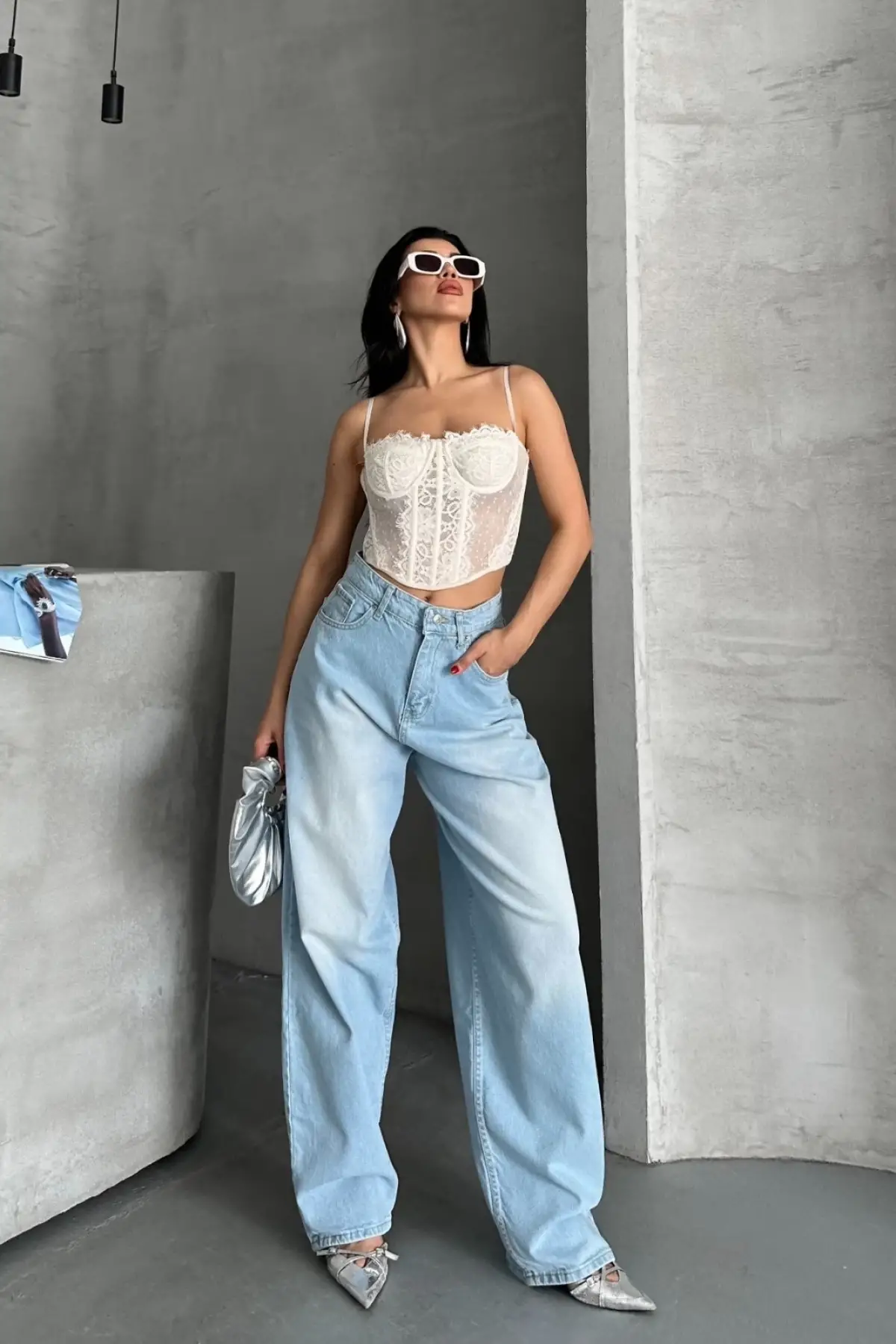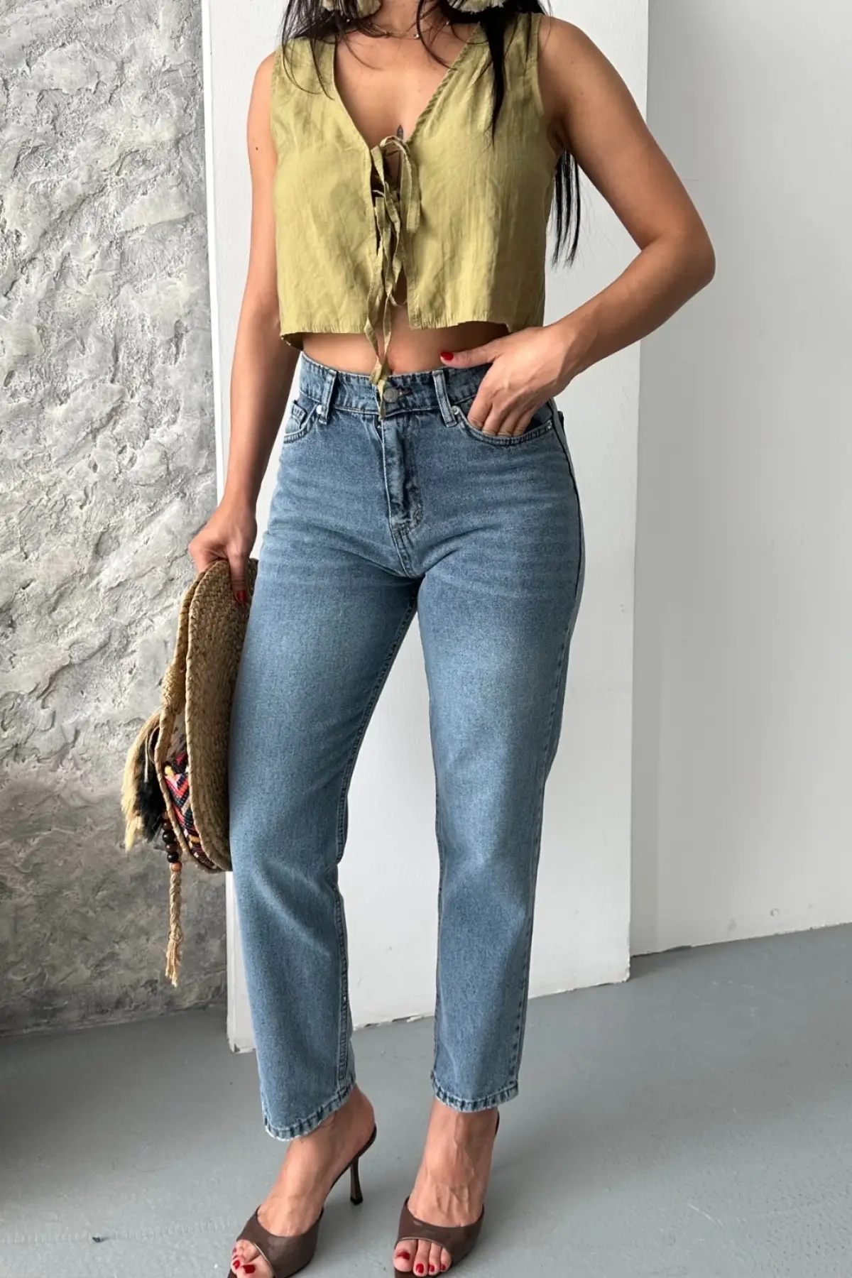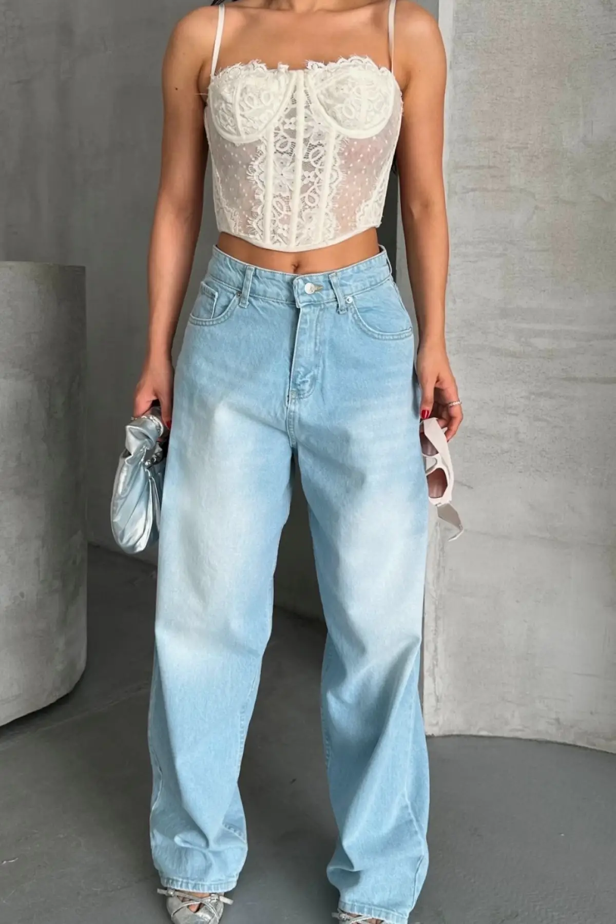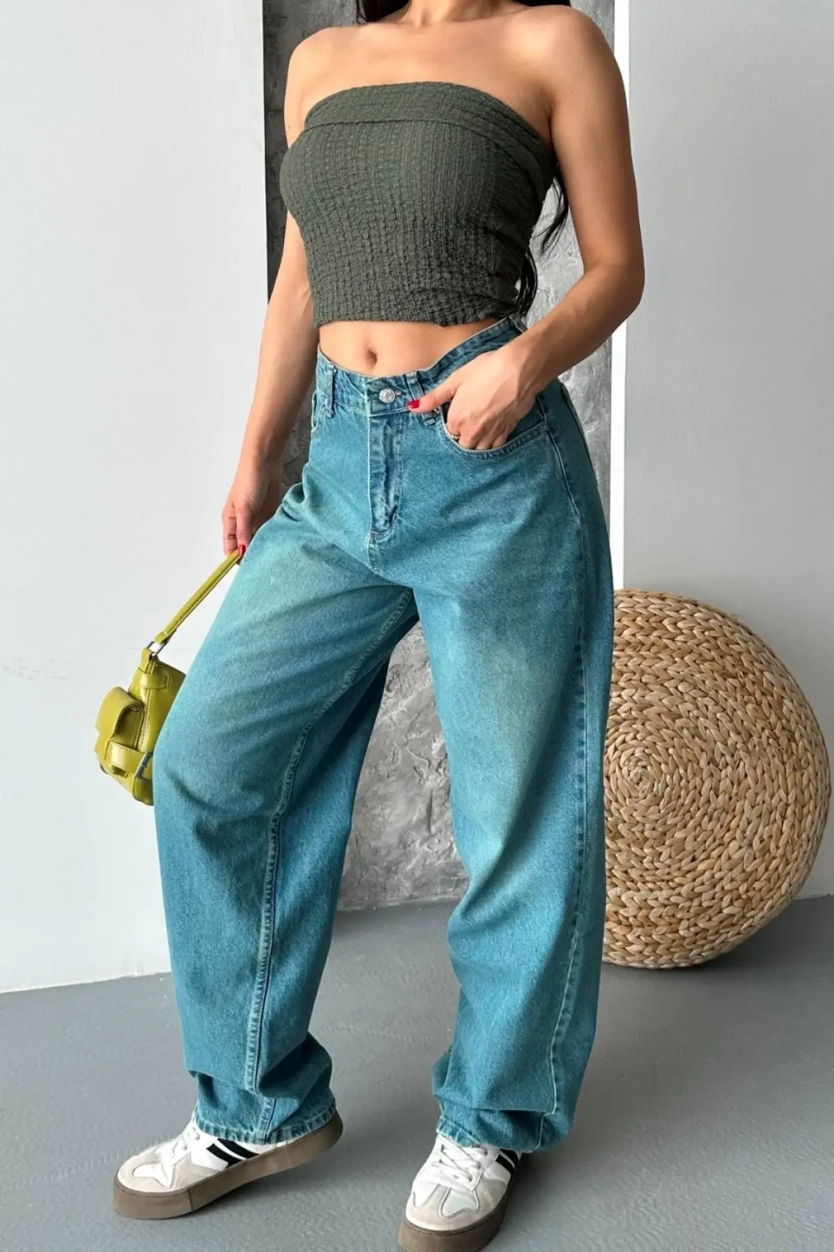 Palazzo markasının son trendleri yakalayan straight kesim kar yıkama jeans pantolonu mavi renk seçeneğiyle gardırobunuza şıklık katmaya hazır!