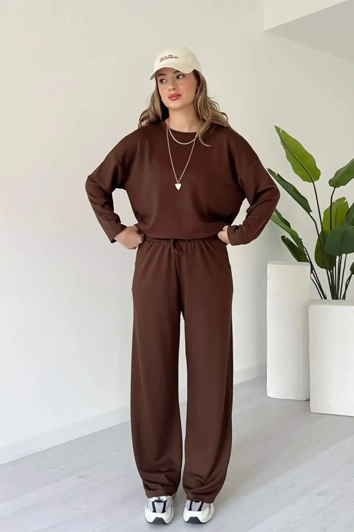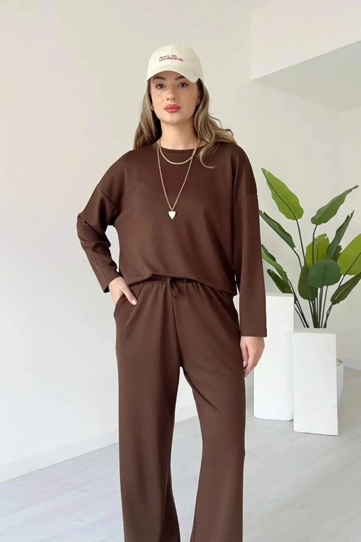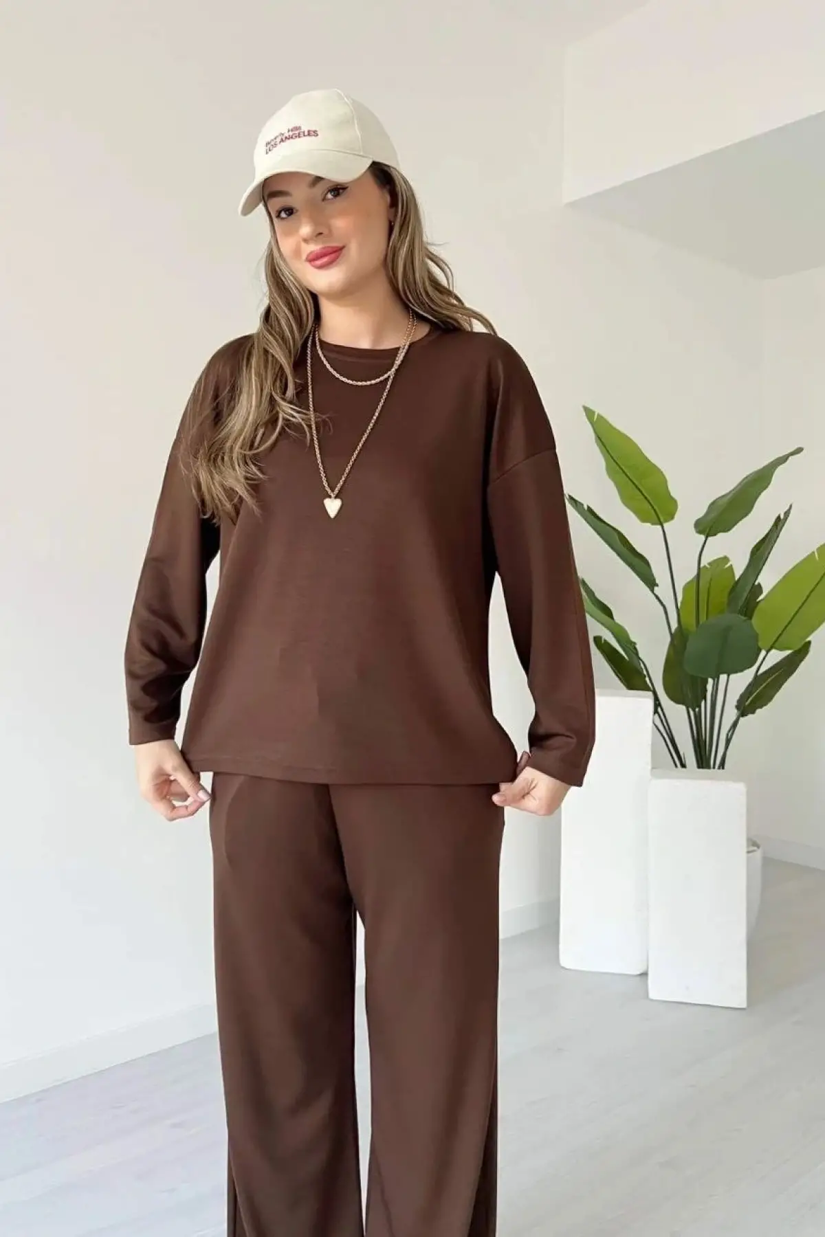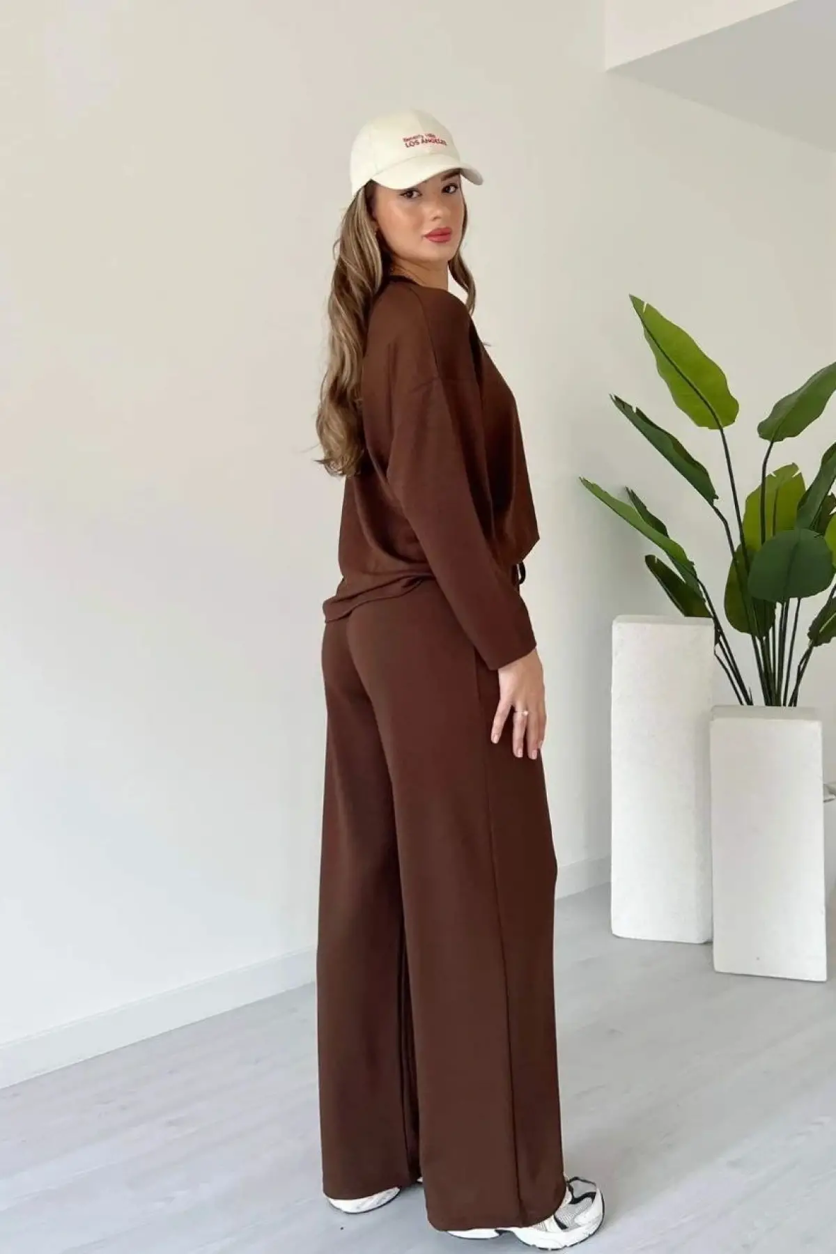 Şıklık ve konforun bir araya geldiği Kadın Polo Yaka Alt Üst Kollu Modal Takım Kahve PT, günlük giyimde ve özel günlerde şıklığınızı tamamlar.