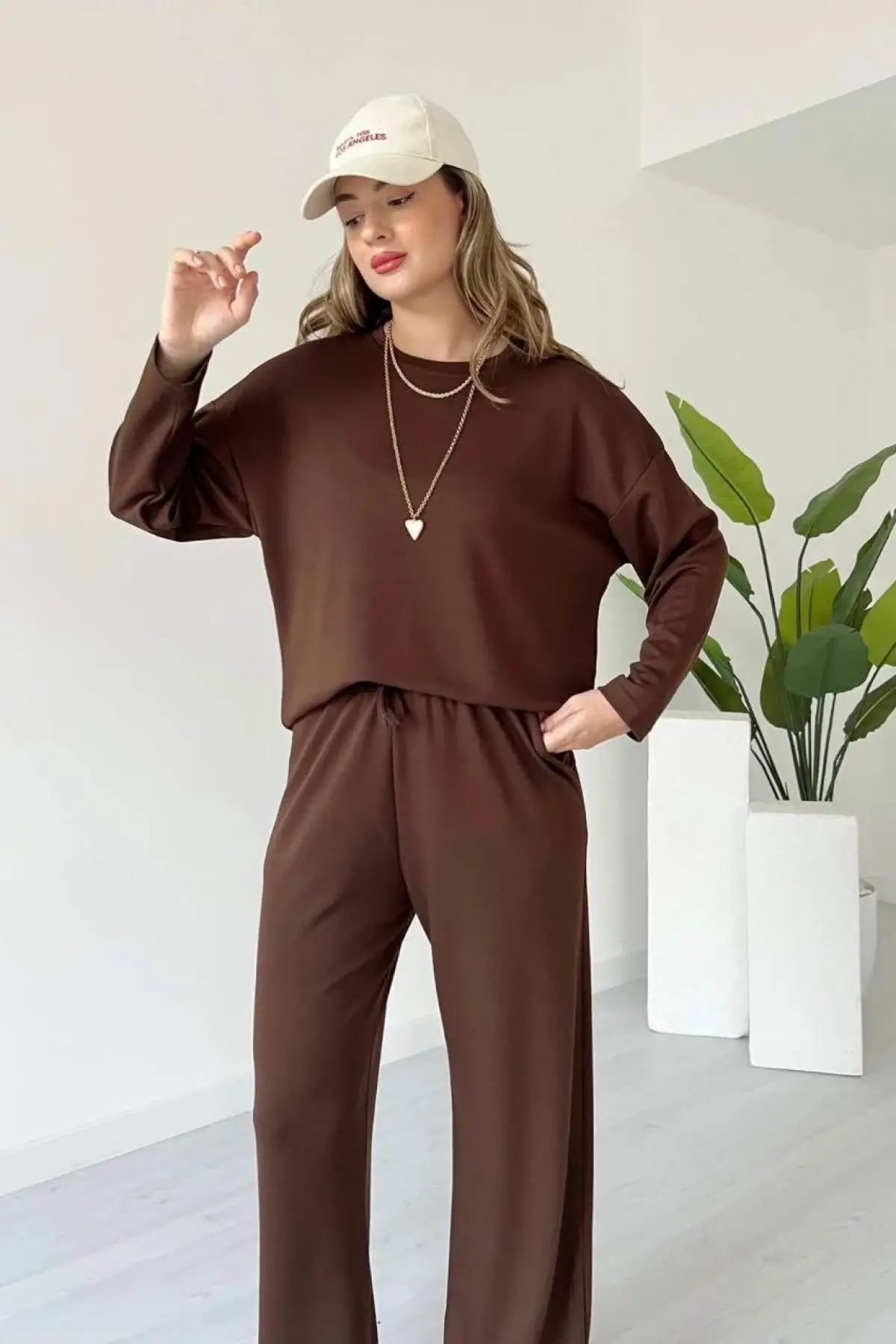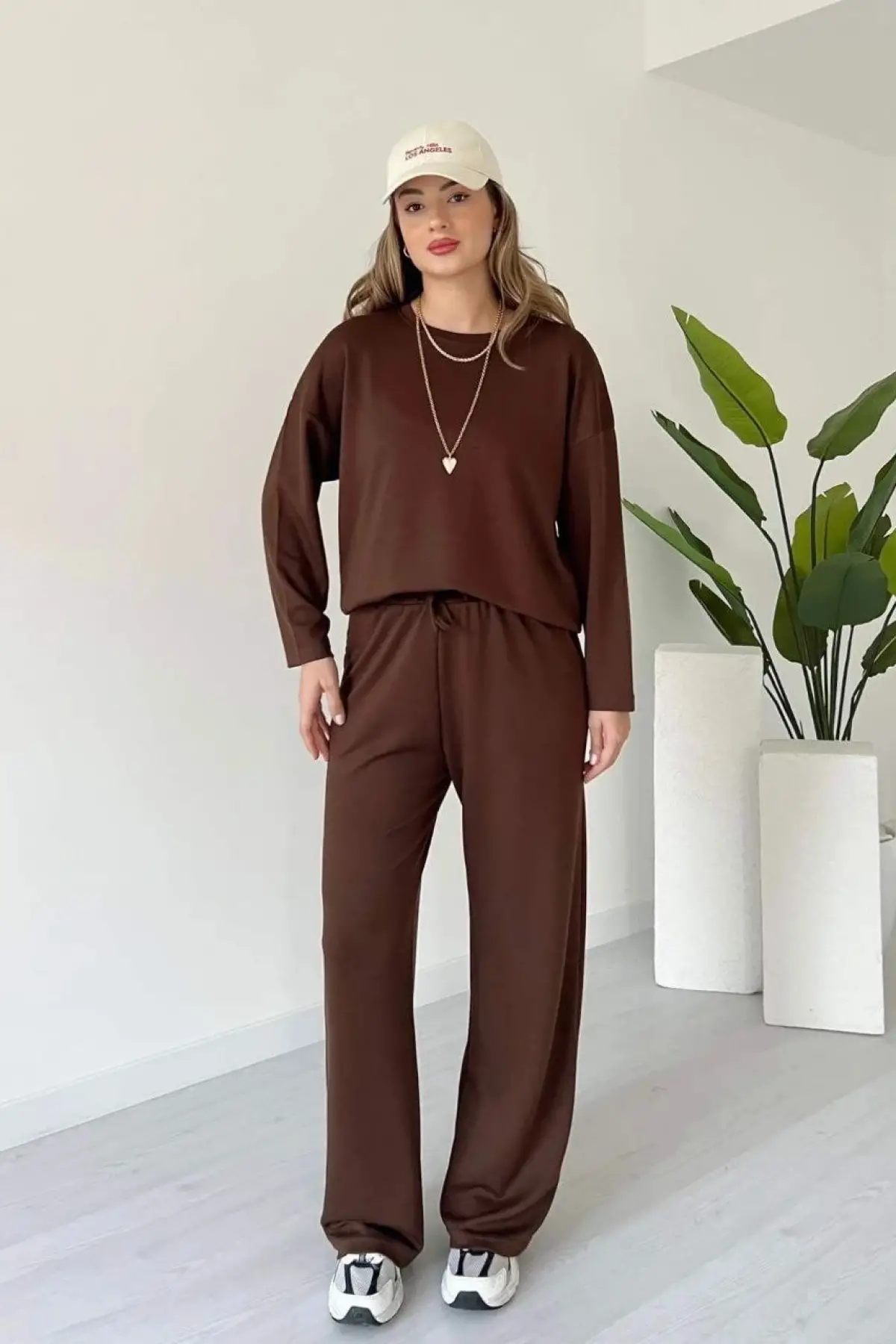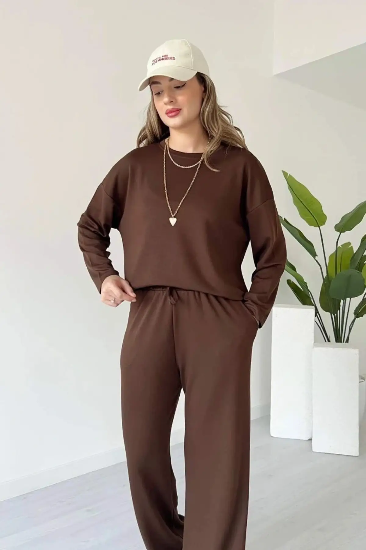 Şıklık ve konforun bir araya geldiği Kadın Polo Yaka Alt Üst Kollu Modal Takım Kahve PT, günlük giyimde ve özel günlerde şıklığınızı tamamlar.