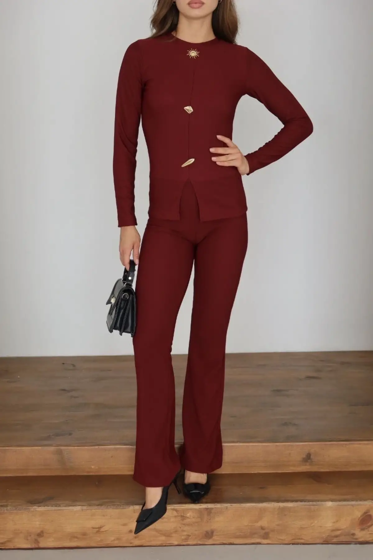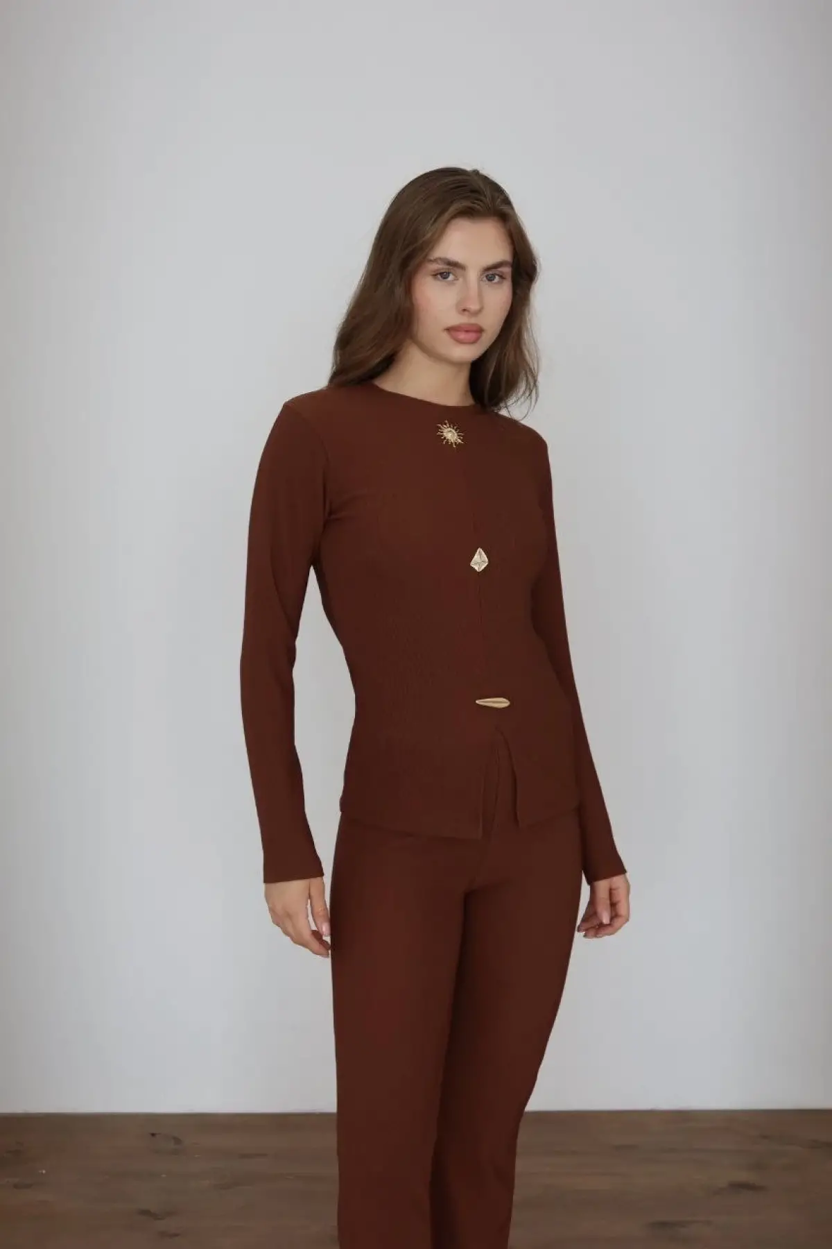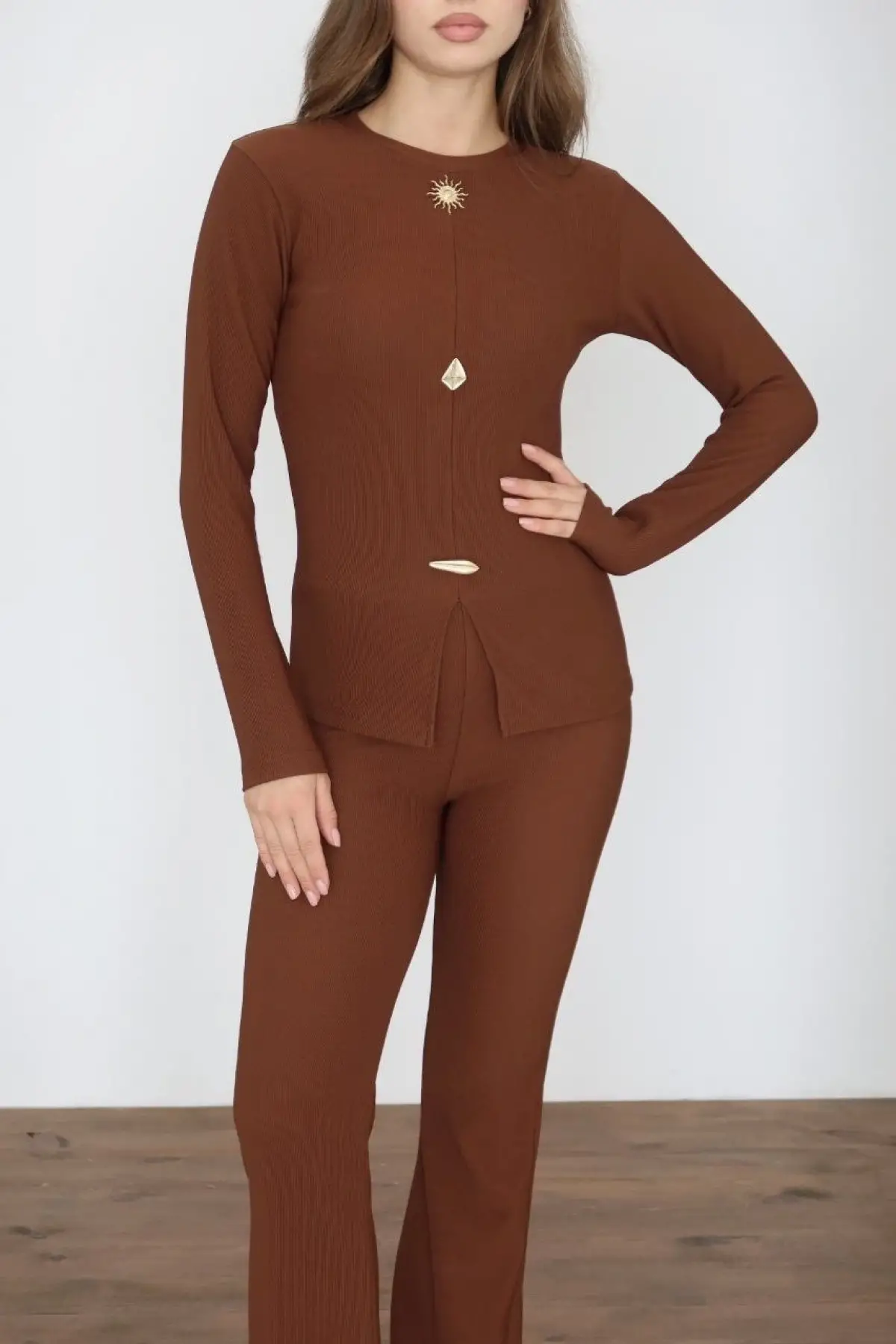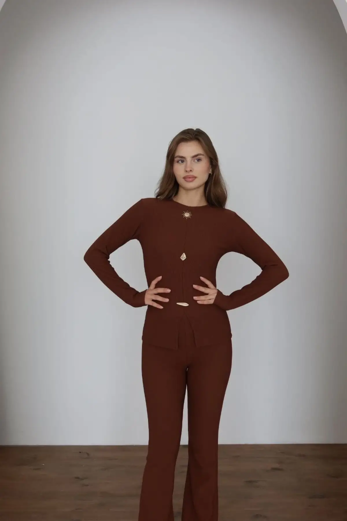 Şıklık ve konforun bir araya geldiği Kadın Polo Yaka Alt Üst Kollu Modal Takım Kahve PT, günlük giyimde ve özel günlerde şıklığınızı tamamlar.