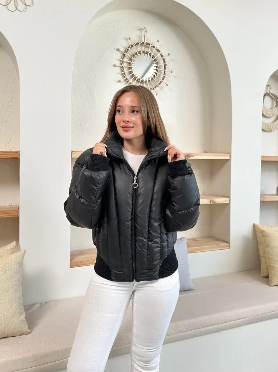 Şık ve modern tasarımıyla dikkat çeken Puffer kısa mont, şıklığı ve konforu bir arada sunuyor.