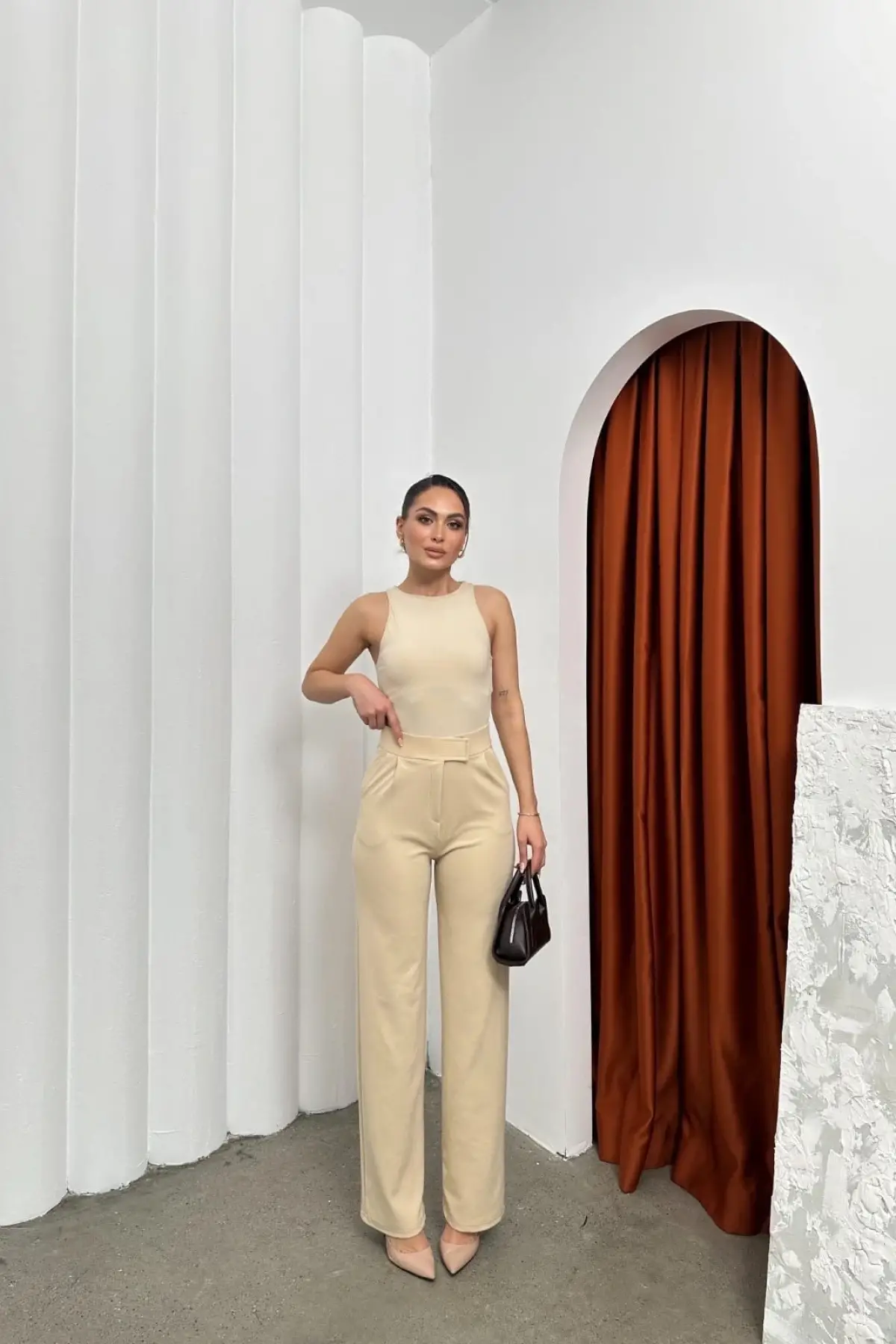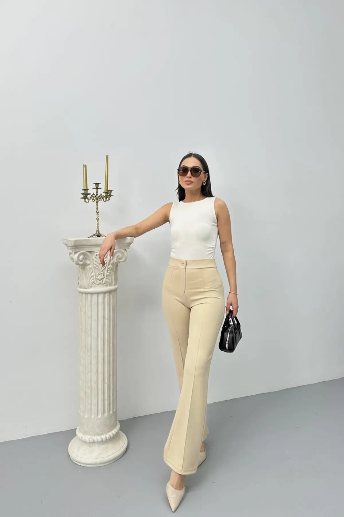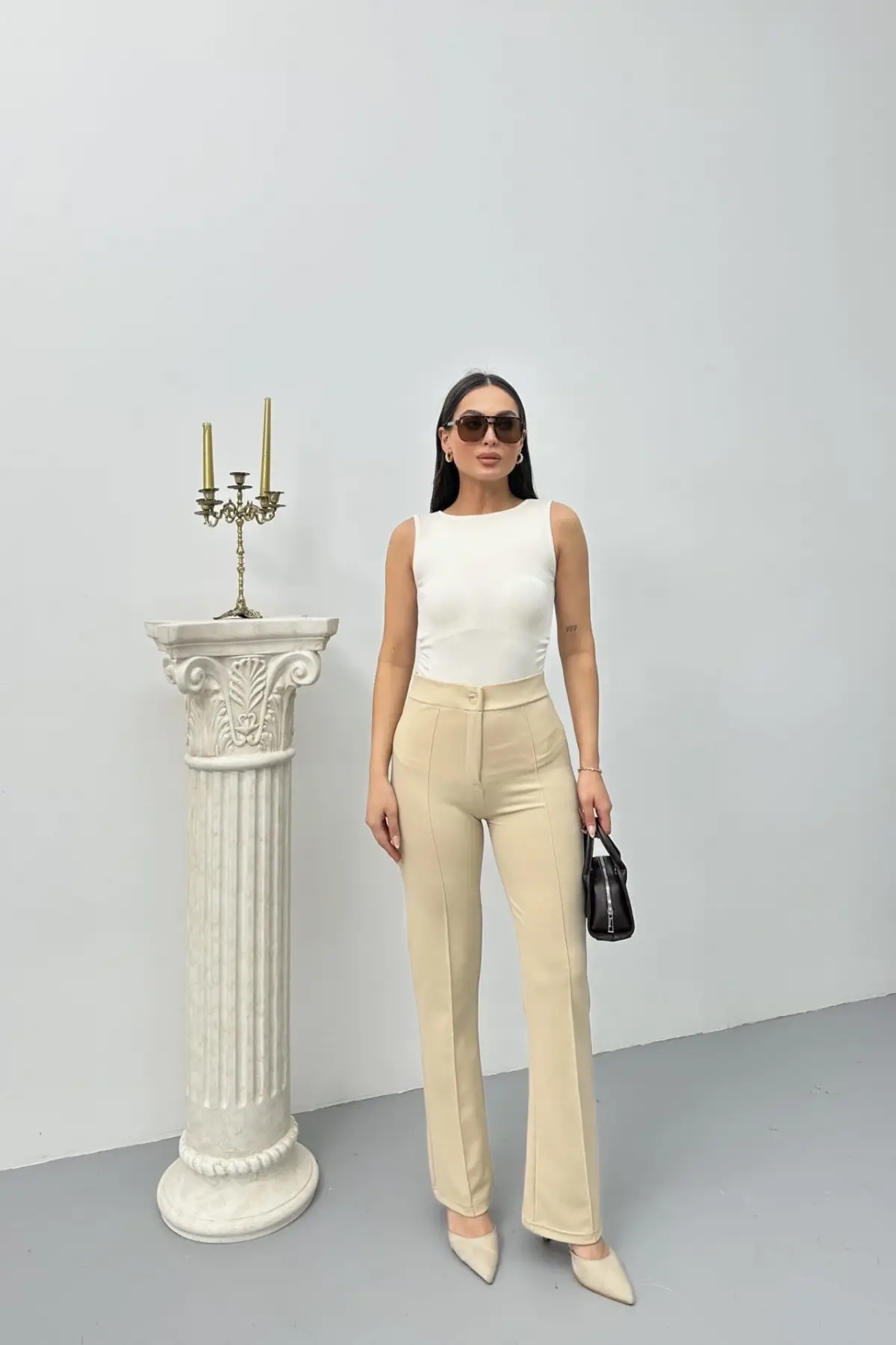 - Şerit detayları pantolonun şıklığını ön plana çıkarır.