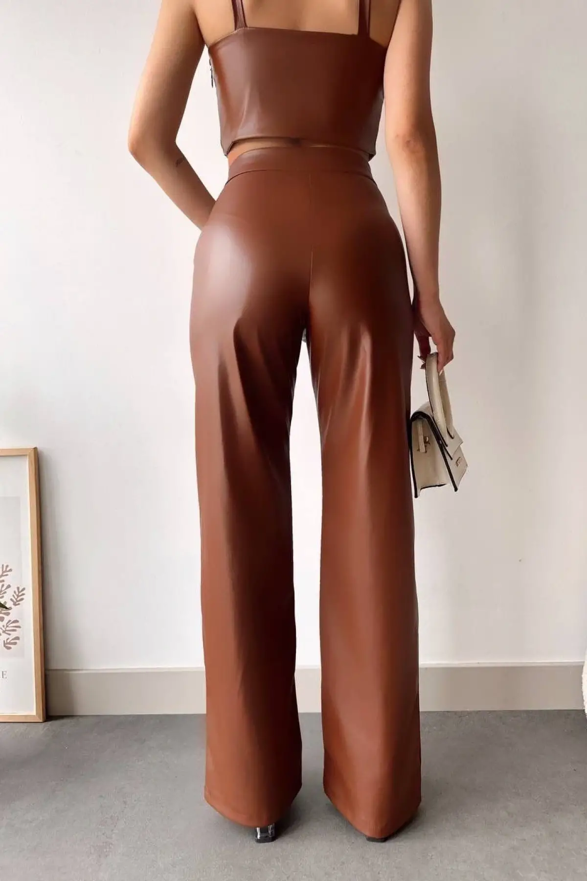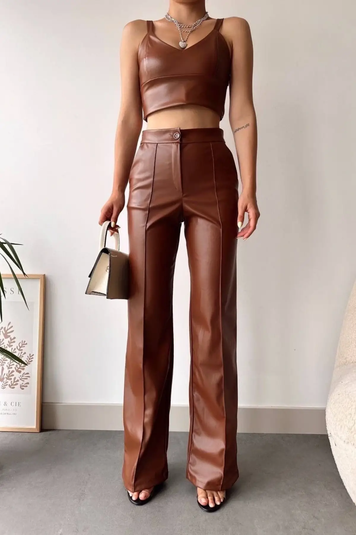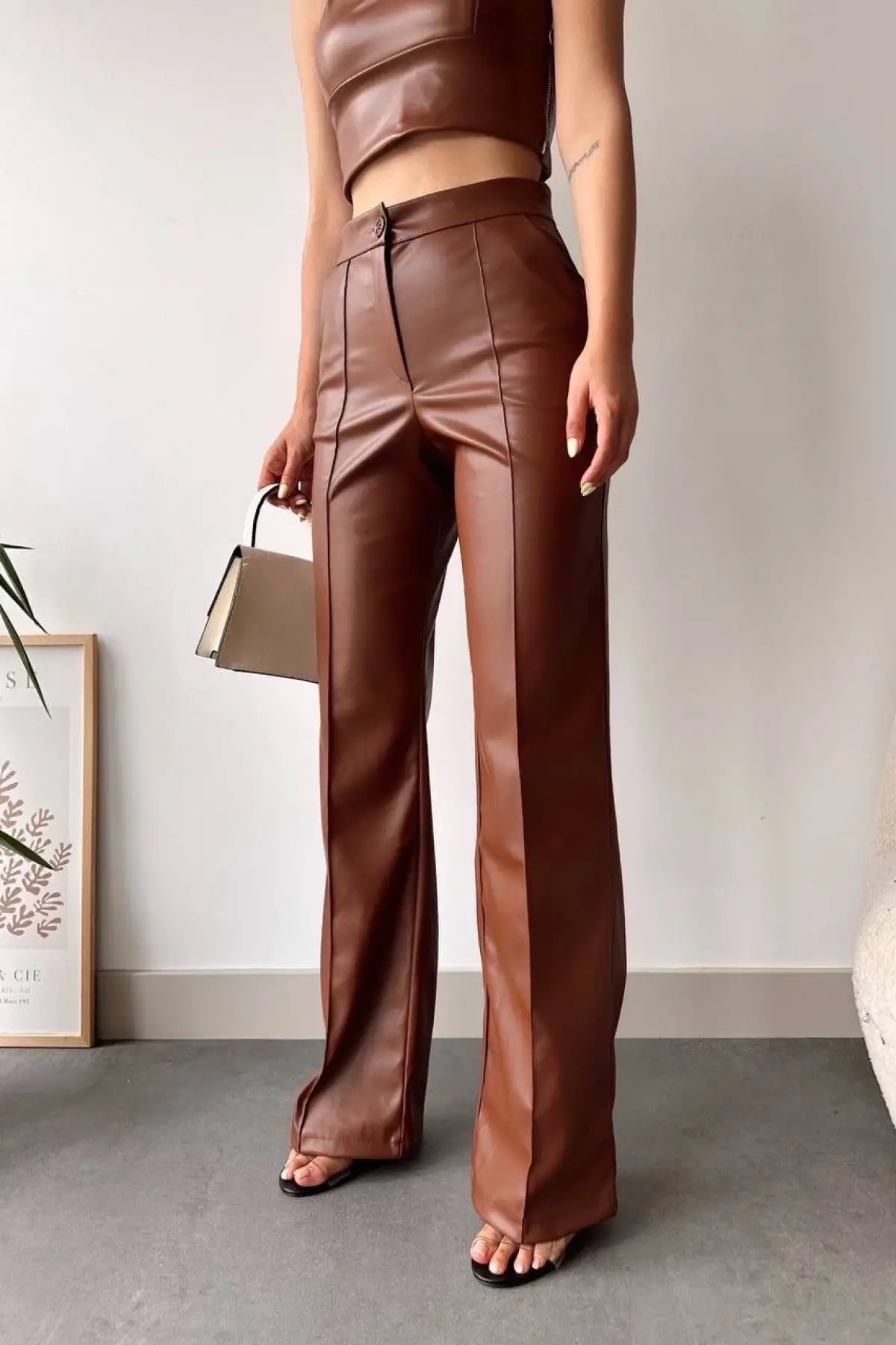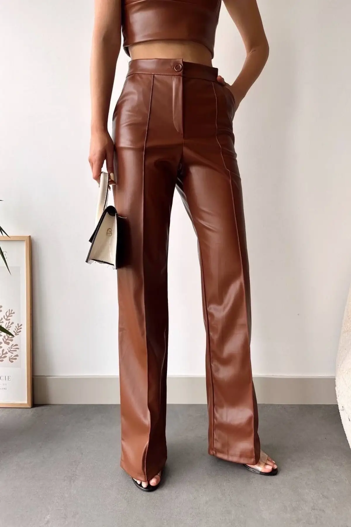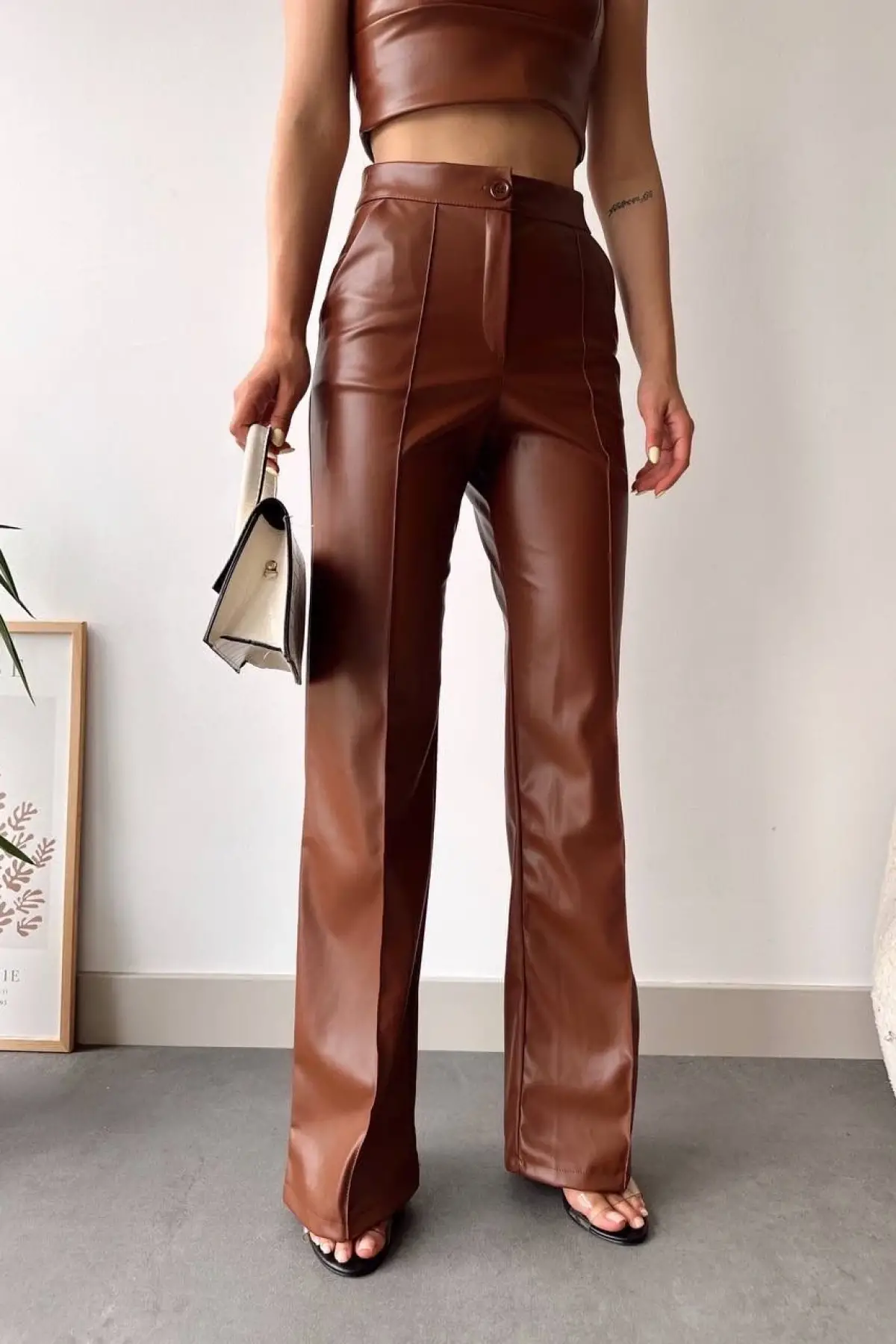 Şıklığı ve rahatlığı bir arada sunan yeşil şeritli deri pantolon h26430, gardırobunuzun favori parçası olmaya aday.