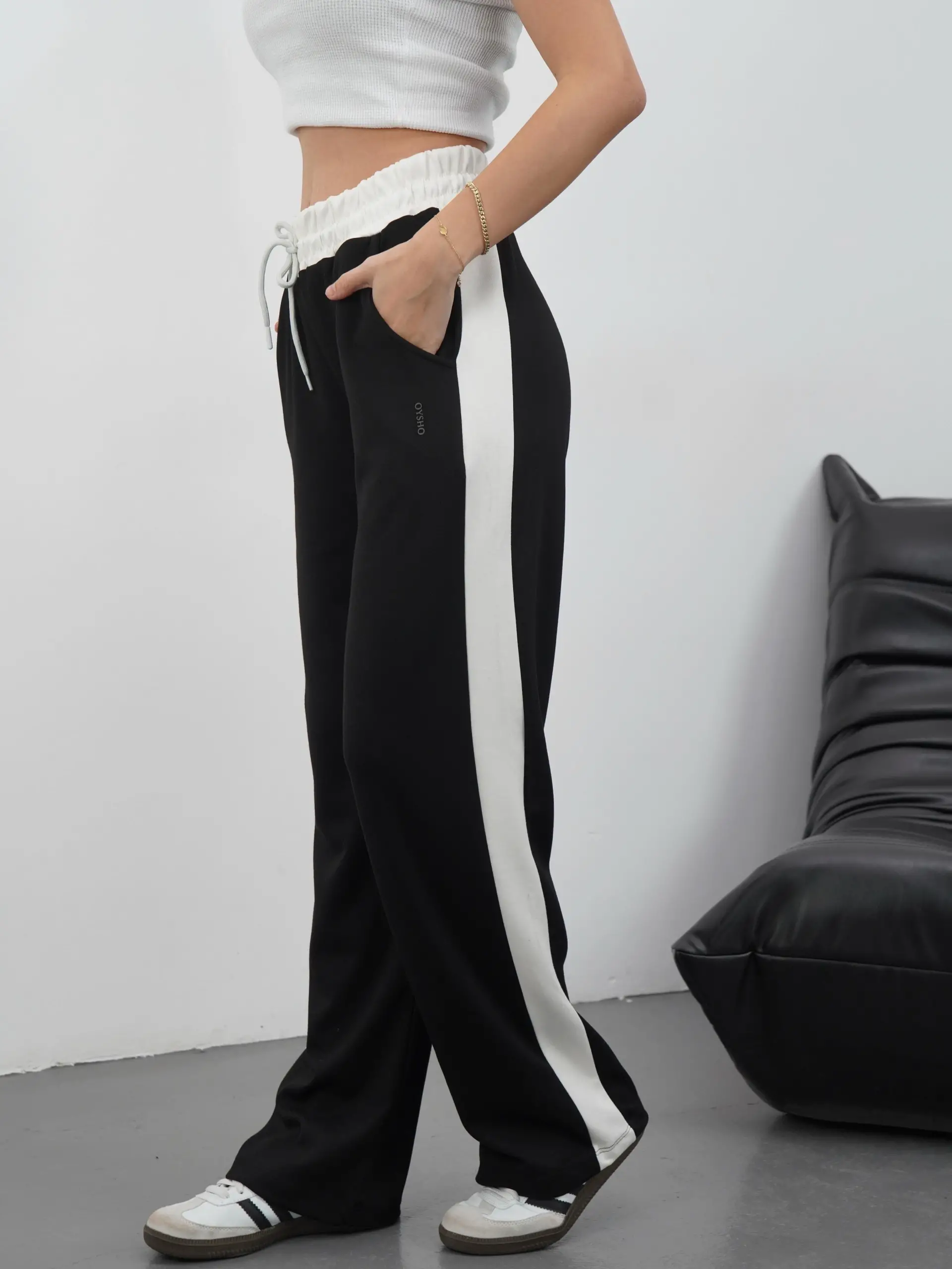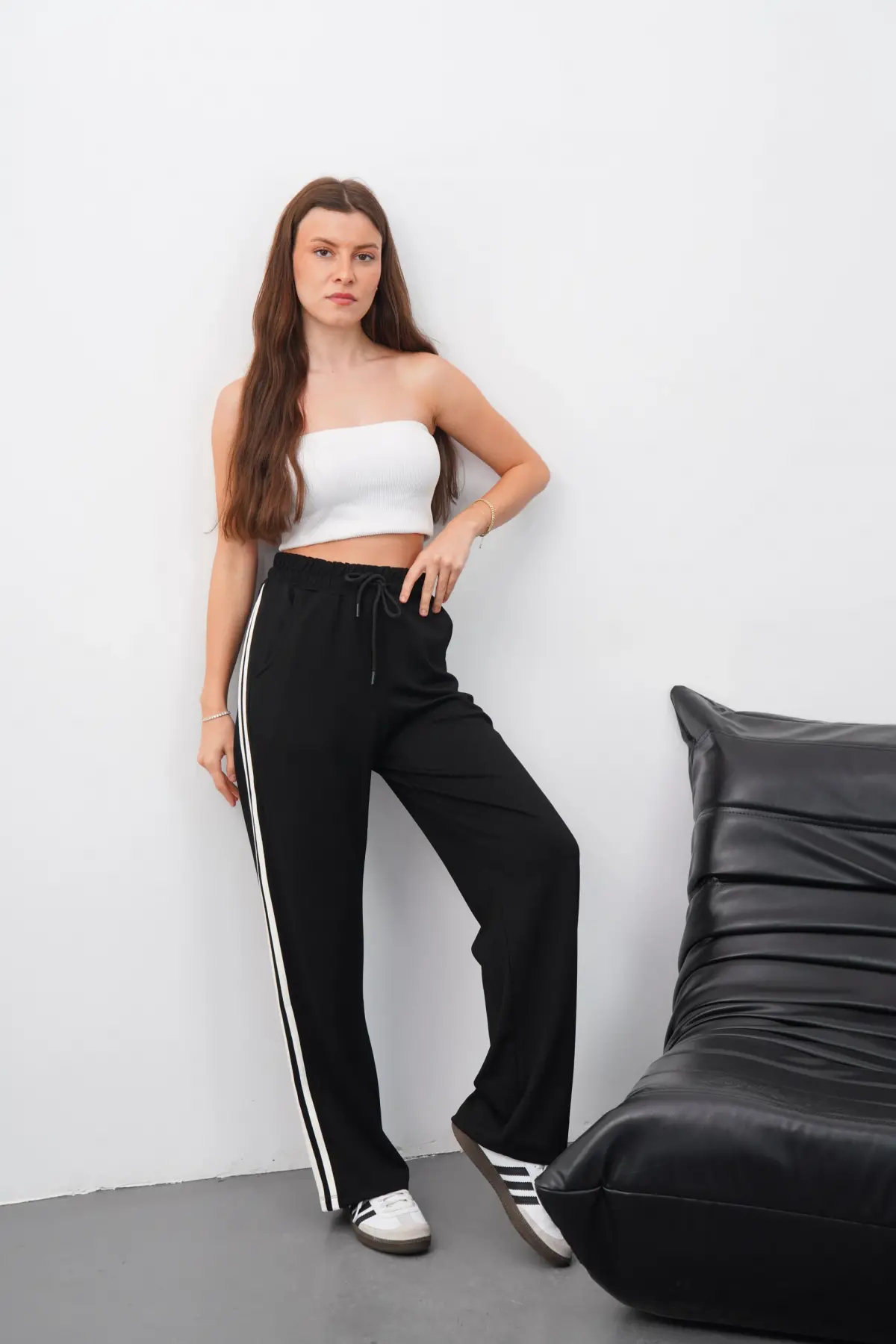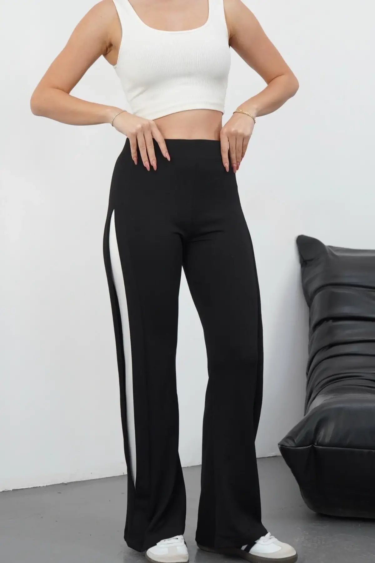 Bedeninize uygun olan Şeritli Garnili Pantolon Siyah ile şıklığı ve konforu bir arada yaşayın!