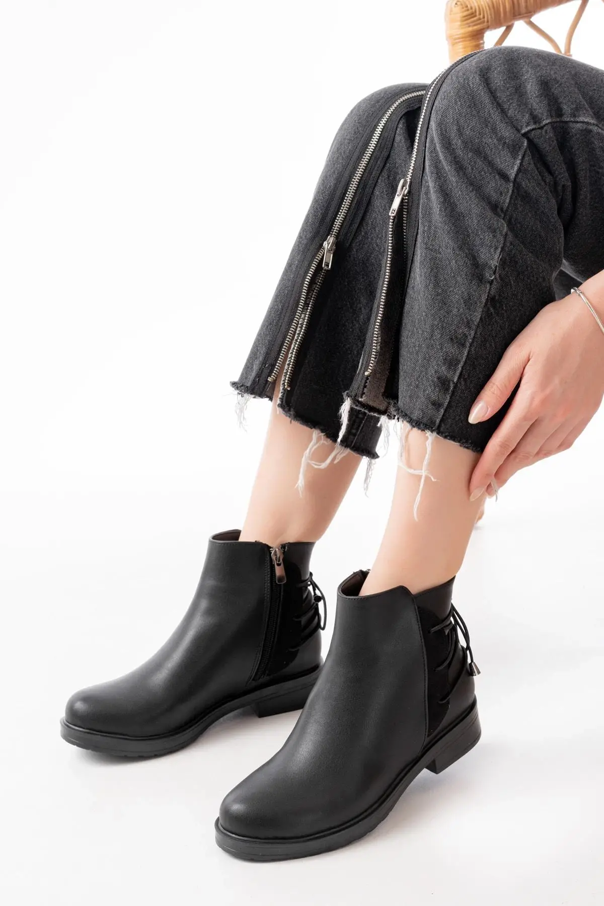 Siyah Arka Bağcık Aksesuarlı Fermuarlı Günlük Kadın Bot ile tarzınıza zarif ve şık bir dokunuş katabilirsiniz. Günün her anında rahatlıkla kullanabileceğiniz bu özel tasarımı hemen şimdi keşfedin ve kombinlerinizi mükemmelleştirin.