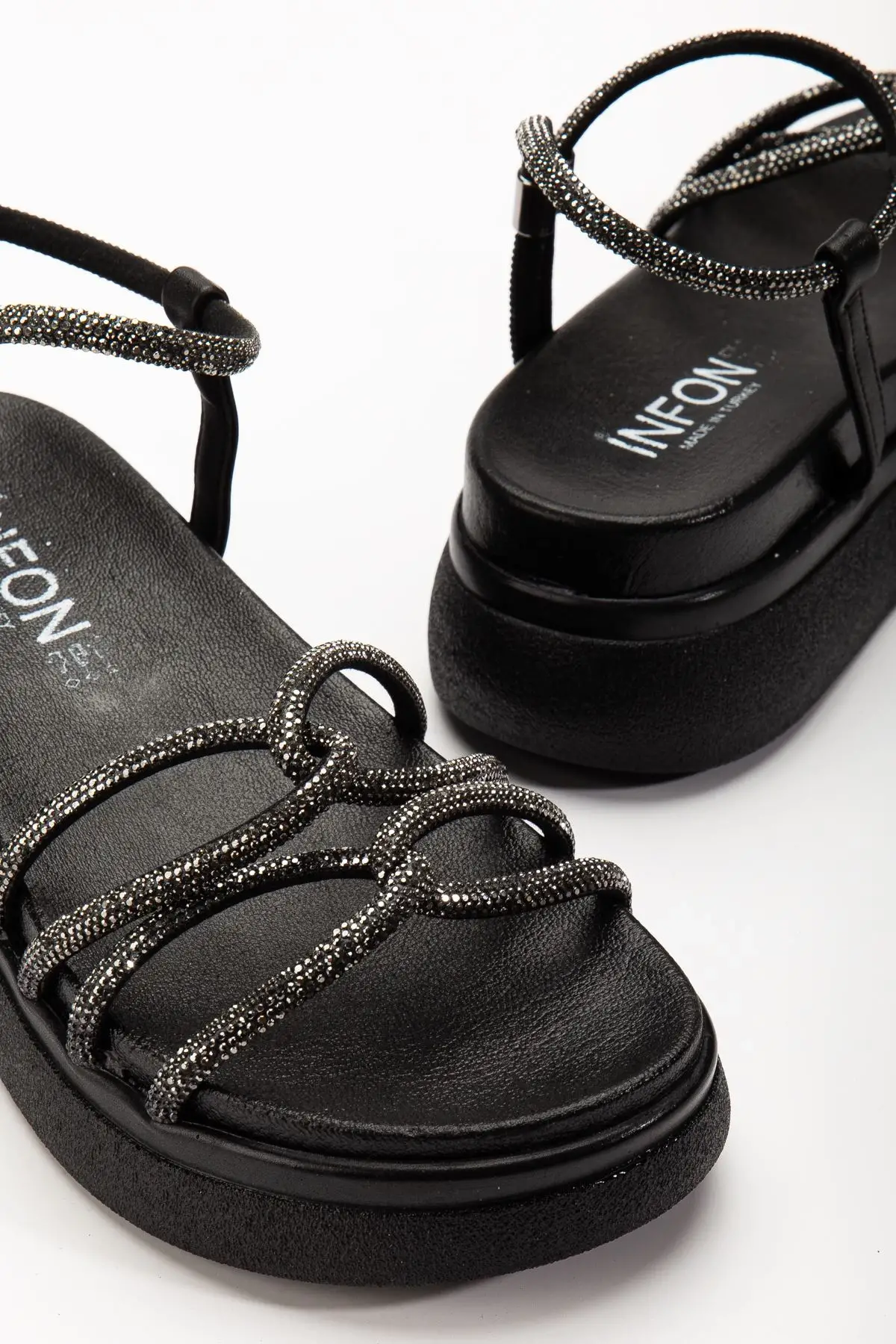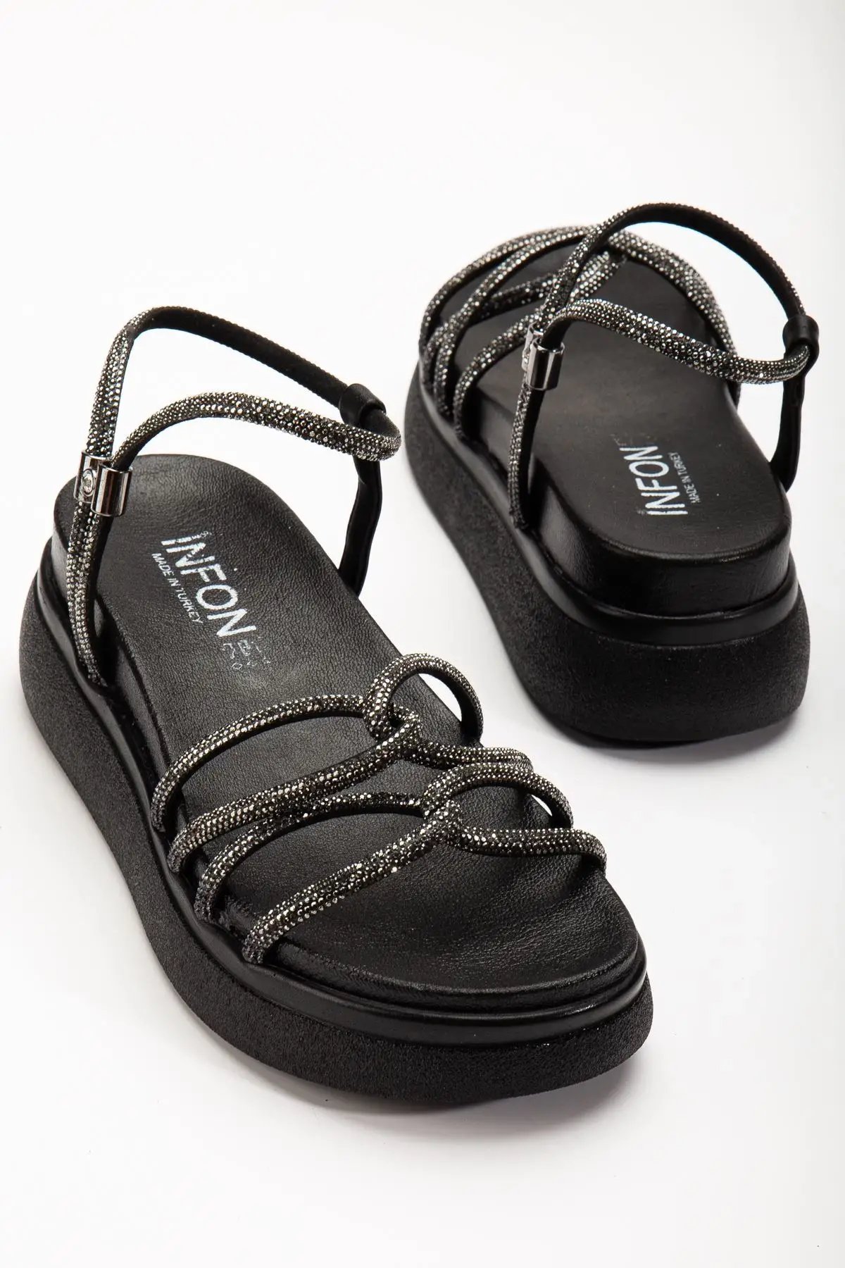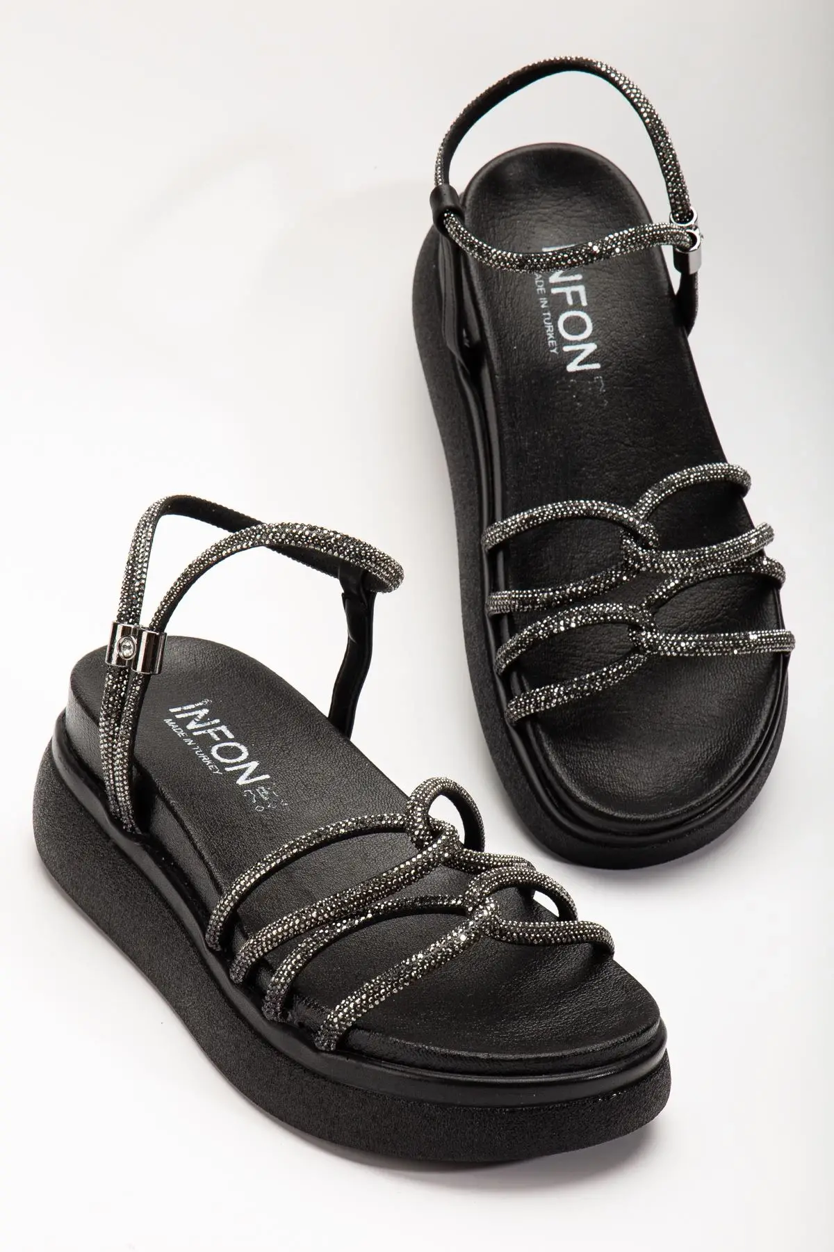 Siyah Dolgu Topuk Kadın Sandalet, modern tasarımı ve üstün konforu bir araya getiren eşsiz bir üründür. Günlük kullanıma uygun yapısı, kaliteli malzeme seçimi ve şık görünümü ile kadınların gardırobunun vazgeçilmez parçalarından biri olmaya adaydır.
