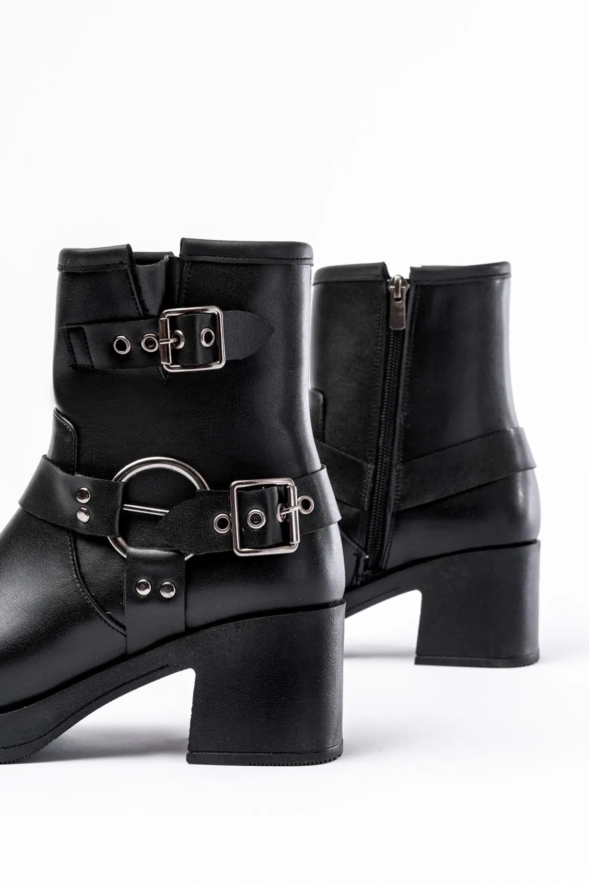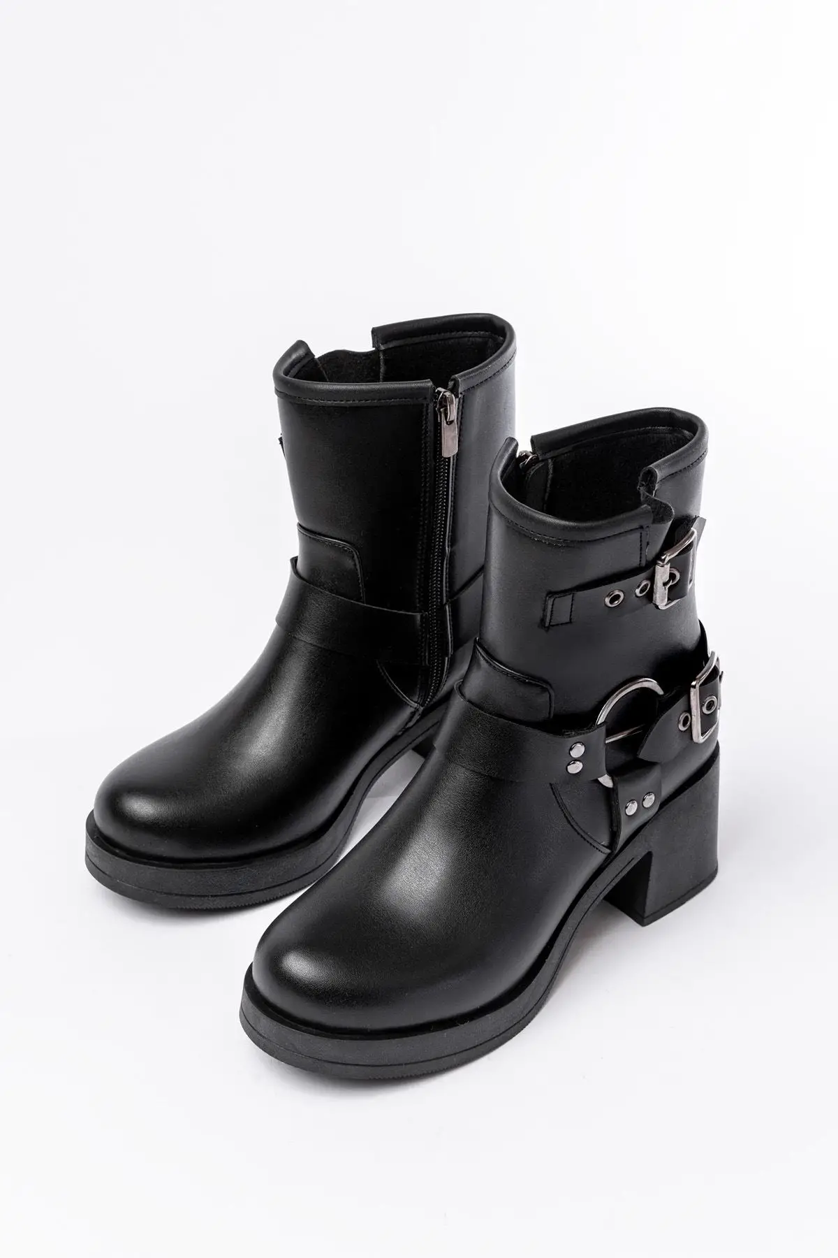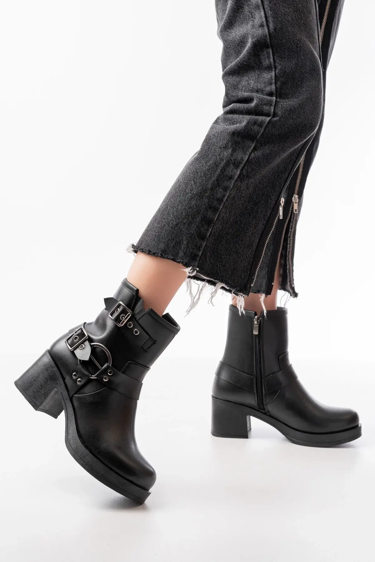 Siyah Toka Aksesuarlı Fermuarlı Topuklu Günlük Kadın Bot, modern tasarımı ve üstün konforu bir araya getiren eşsiz bir üründür. Günlük kullanıma uygun yapısı, kaliteli malzeme seçimi ve şık görünümü ile kadınların gardırobunun vazgeçilmez parçalarından biri olmaya adaydır.