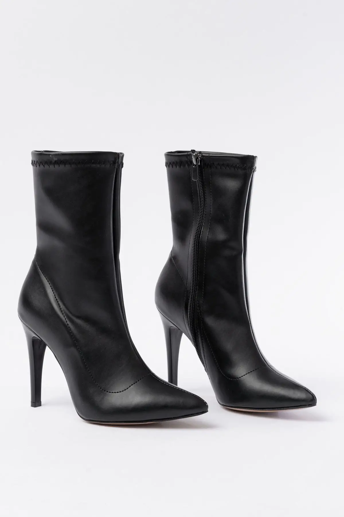 Siyah Yüksek İnce Topuklu Fermuarlı Kadın Bot, modern tasarımı ve üstün konforu bir araya getiren eşsiz bir üründür. Günlük kullanıma uygun yapısı, kaliteli malzeme seçimi ve şık görünümü ile kadınların gardırobunun vazgeçilmez parçalarından biri olmaya adaydır.