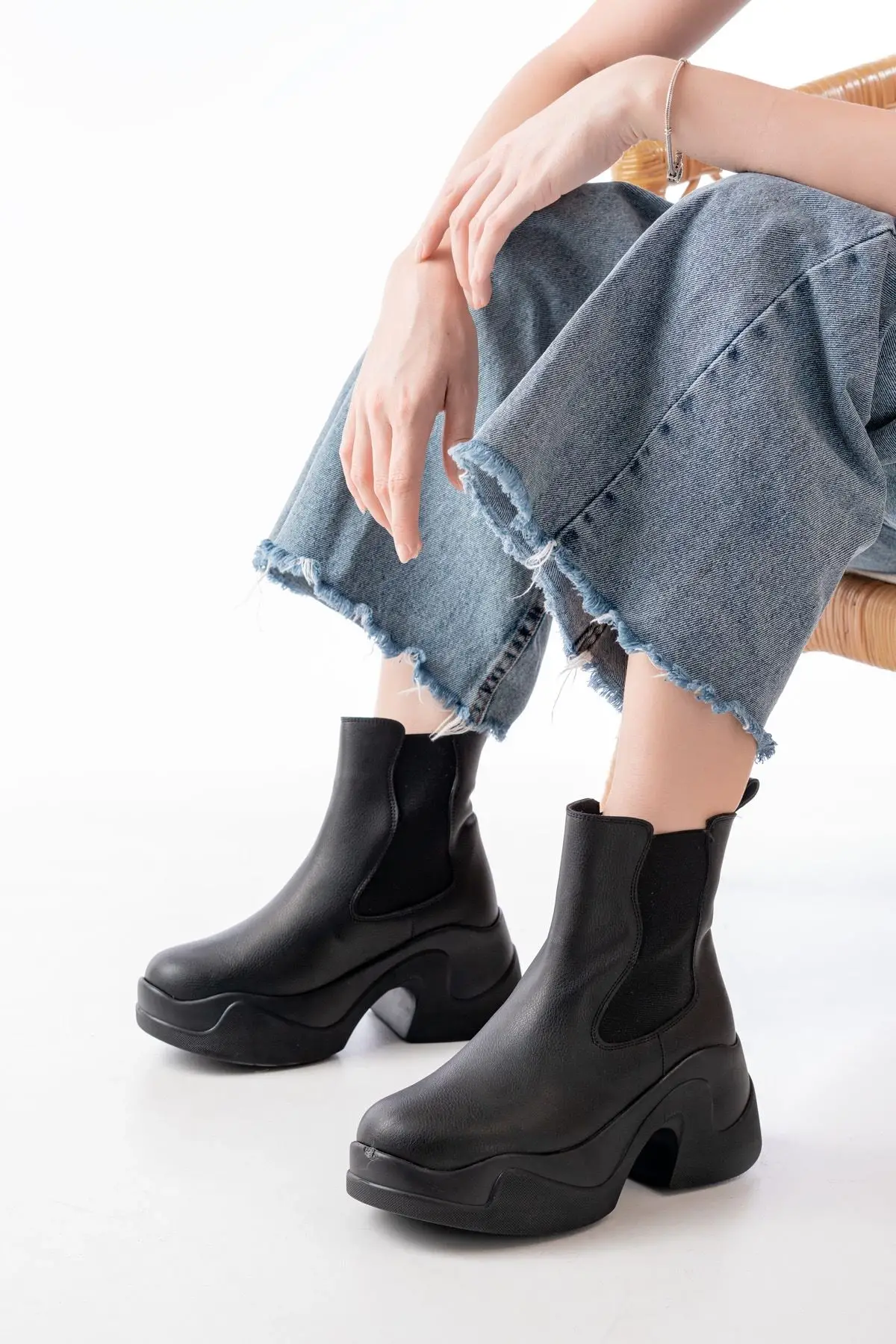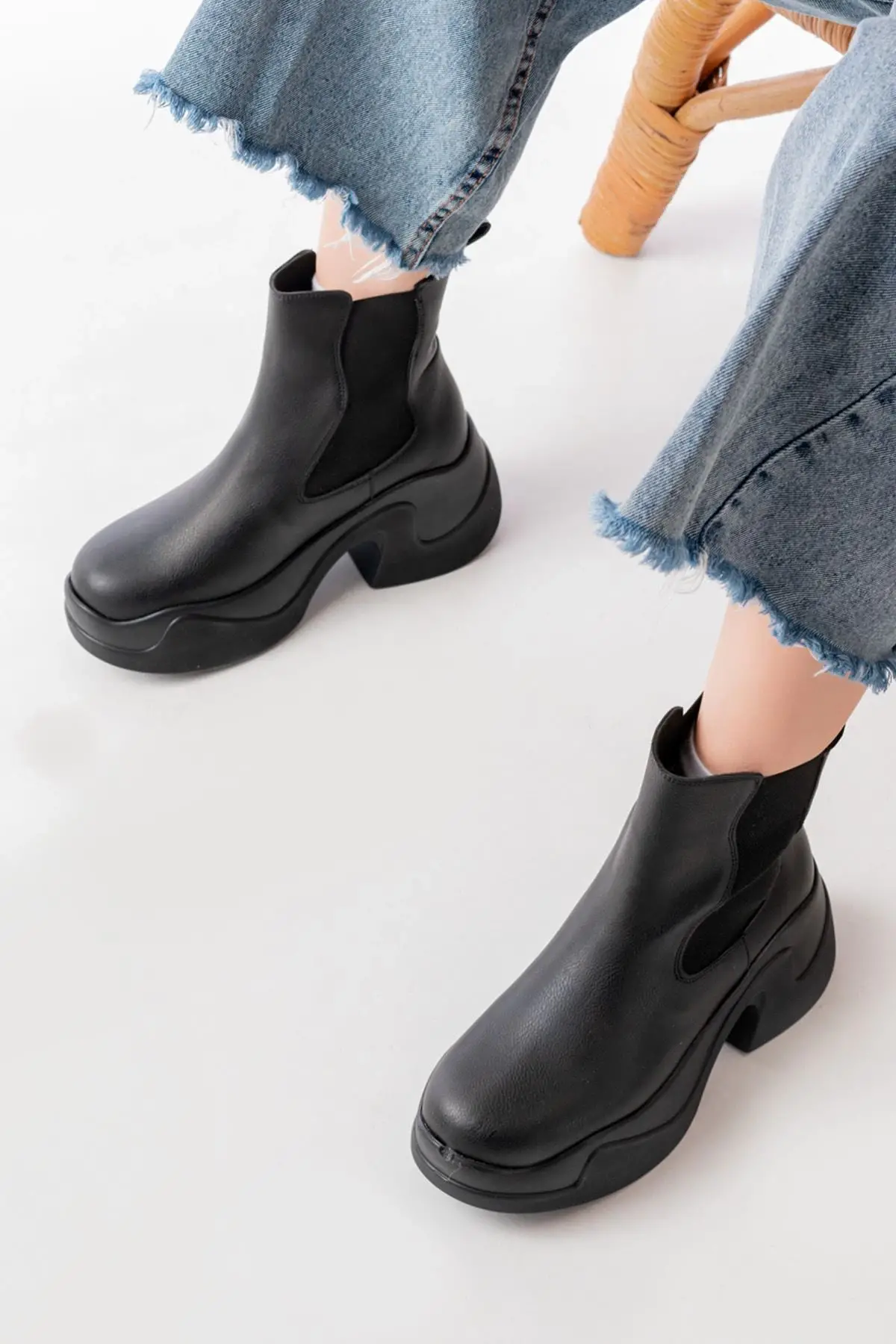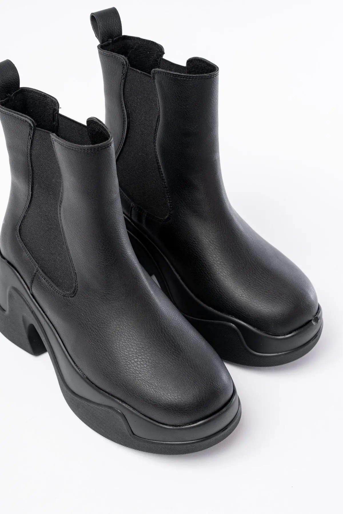 Konfor ve şıklığı bir arada sunan bu siyah yüksek tabanlı lastikli kadın botunu hemen sipariş edin ve günlük stilinizi tamamlayın!