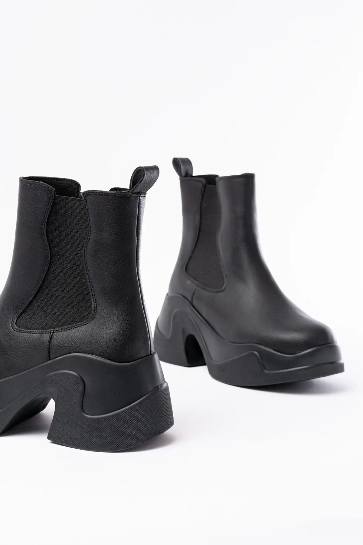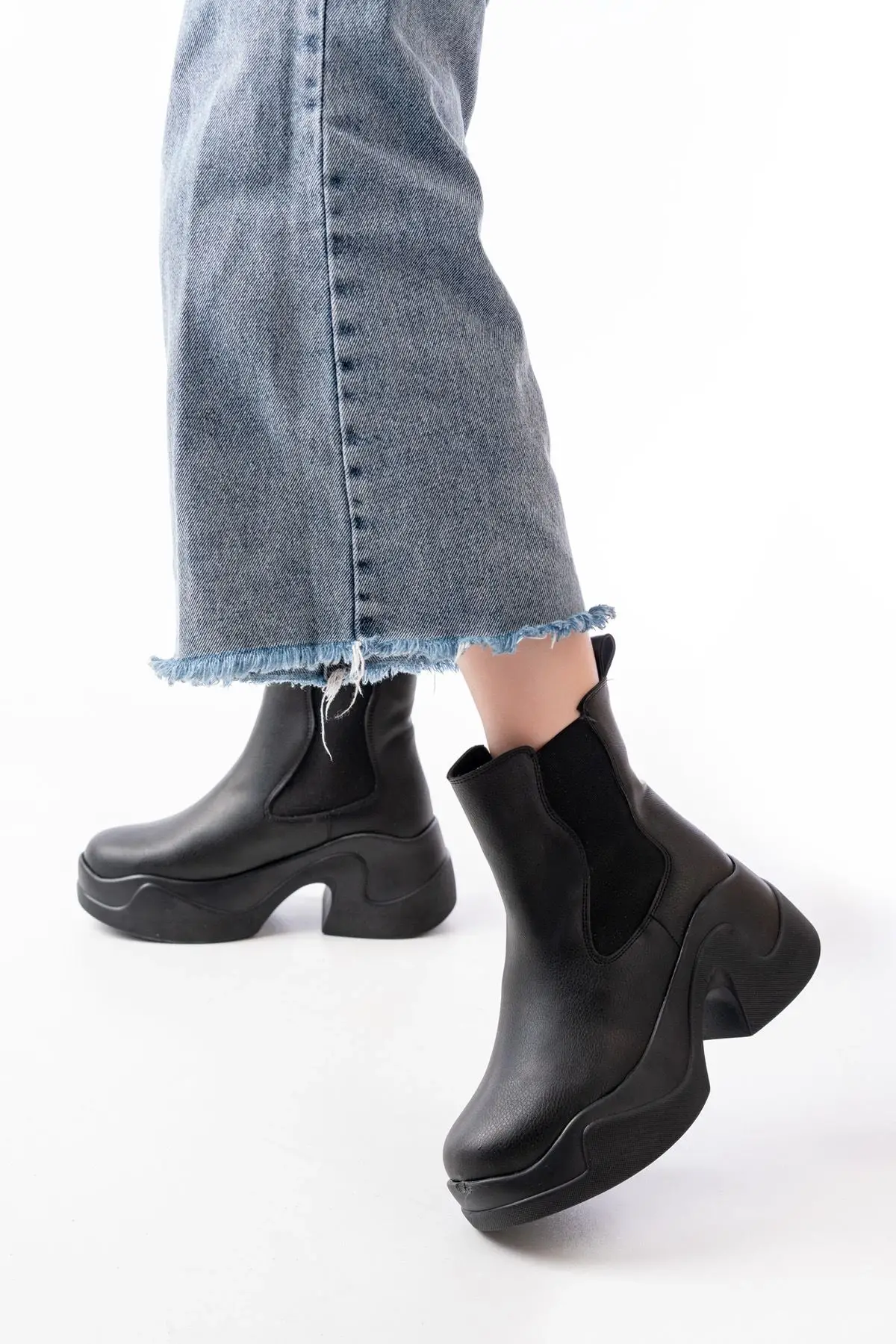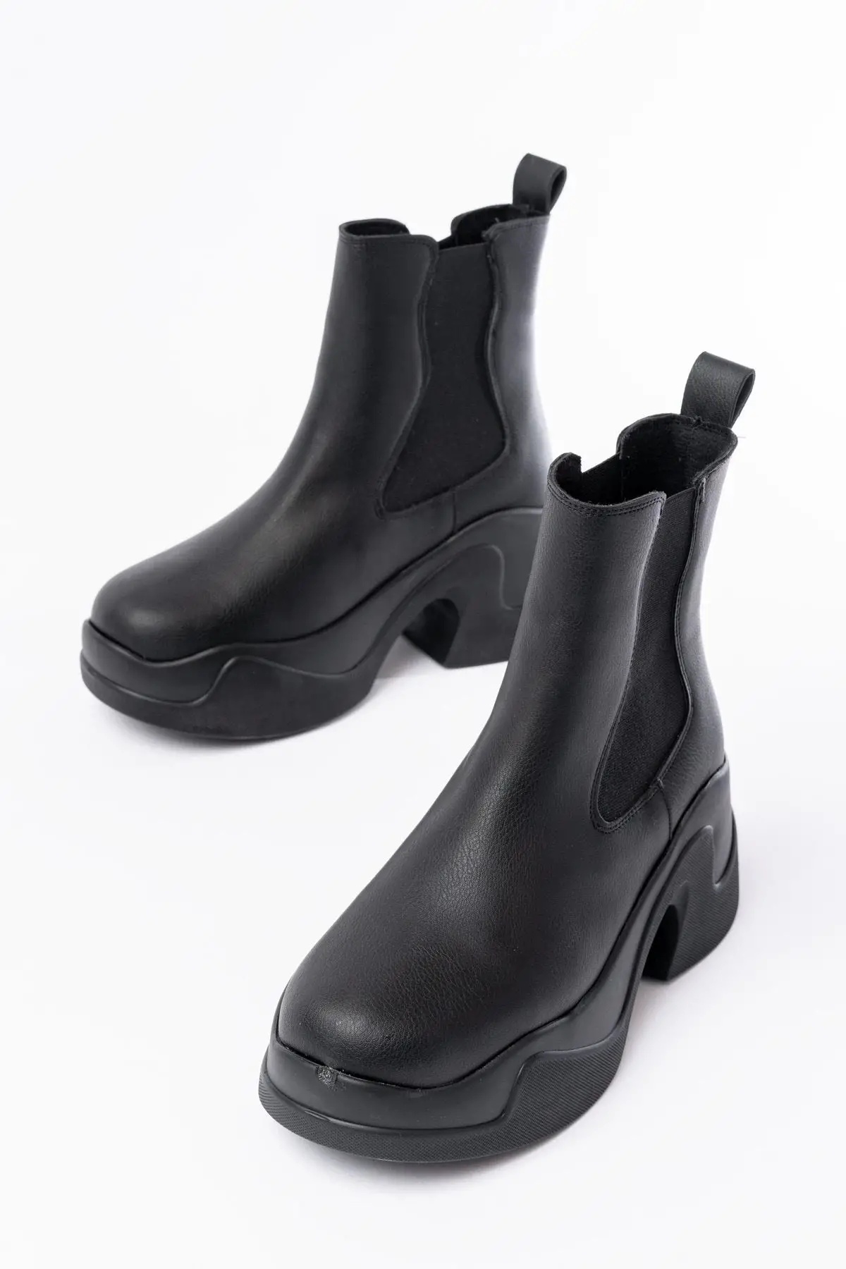 Konfor ve şıklığı bir arada sunan bu siyah yüksek tabanlı lastikli kadın botunu hemen sipariş edin ve günlük stilinizi tamamlayın!