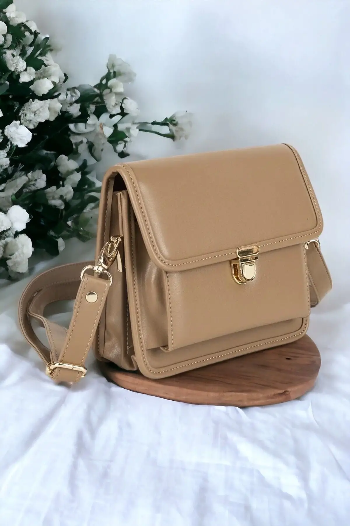 "Suni Deri Lüks Kadın Omuz Çantası - Çok Bölmeli, Ayarlanabilir ve Şık"