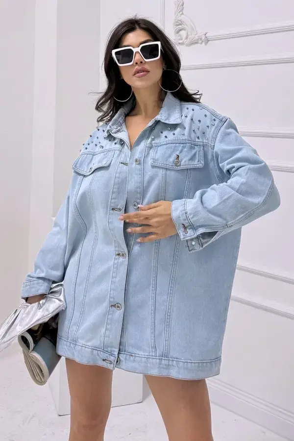 Bu sezonun trend renklerinden antrasit rengiyle kombinlerinizi tamamlayacak, şıklığınızı ön plana çıkaracak bu taşlı kot ceketi hemen sepetinize ekleyin!