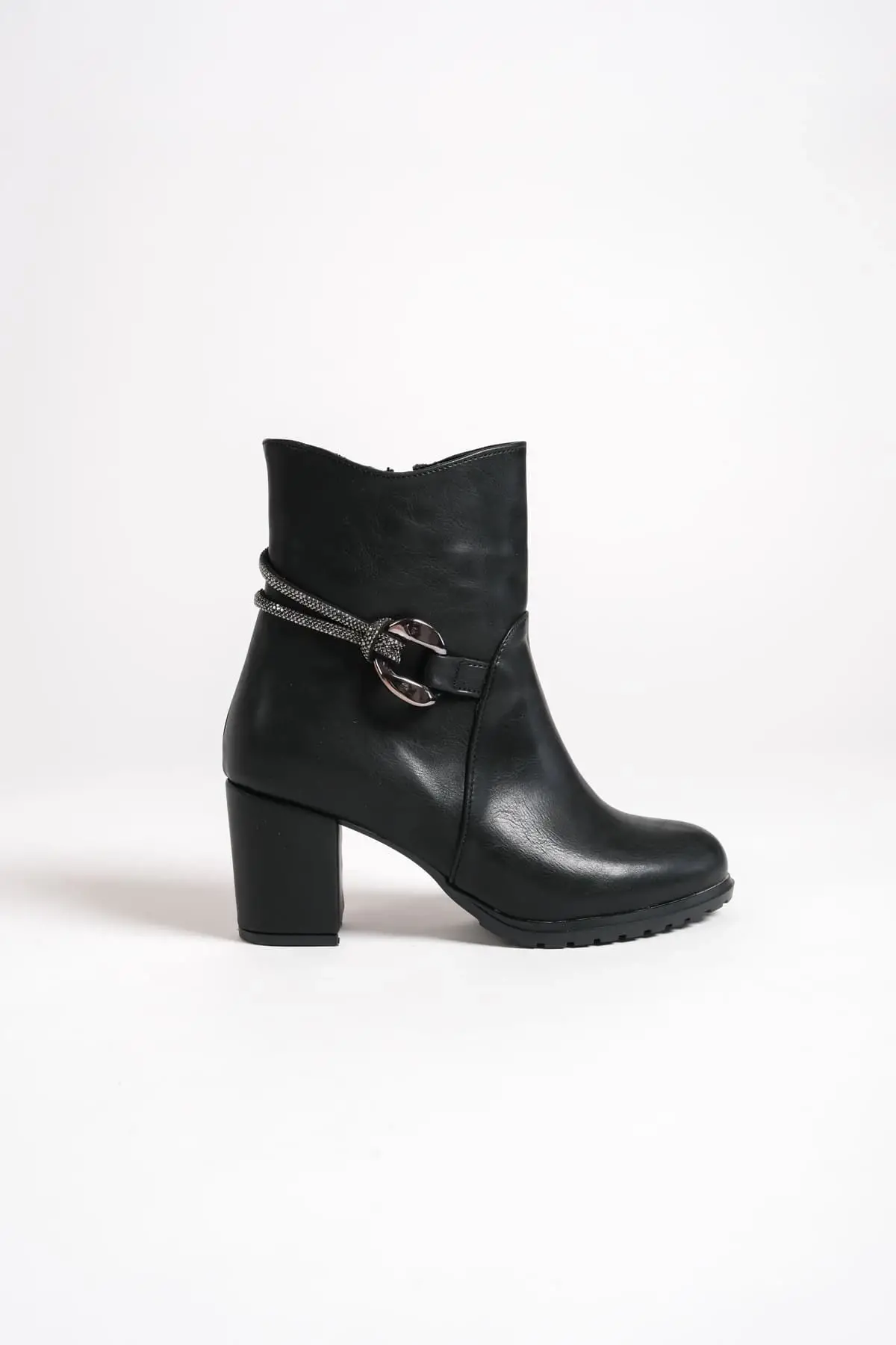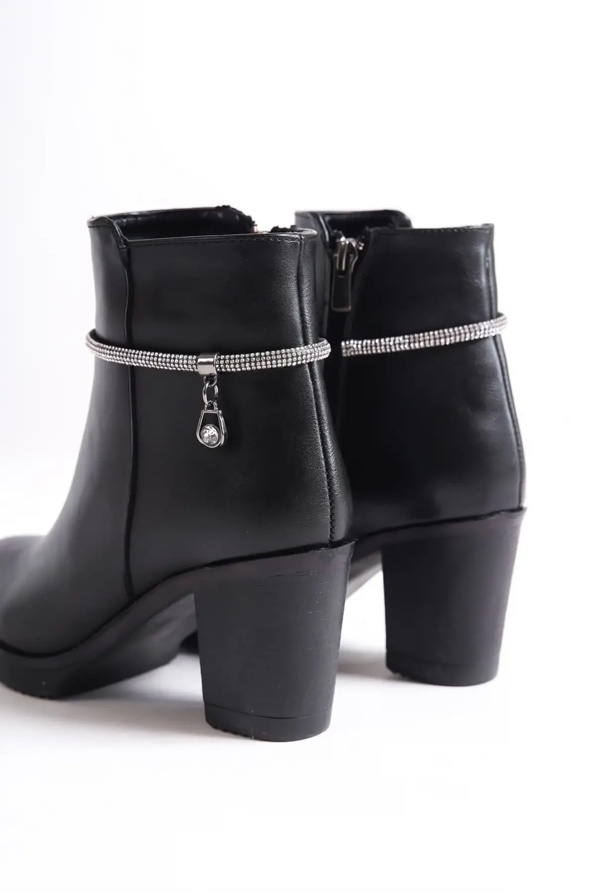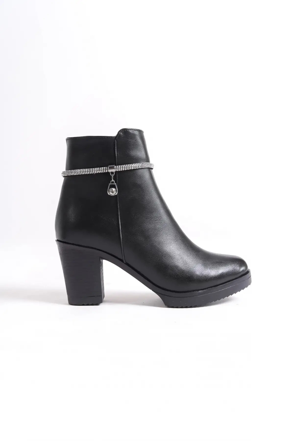 Edna Fermuarlı Ortopedik Taban Taşlı Topuklu Kadın Bot St - Siyah