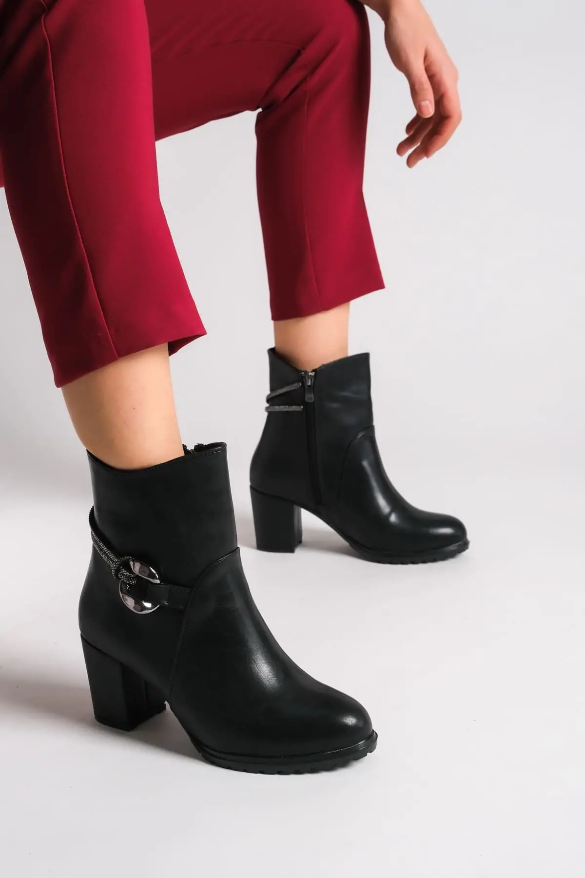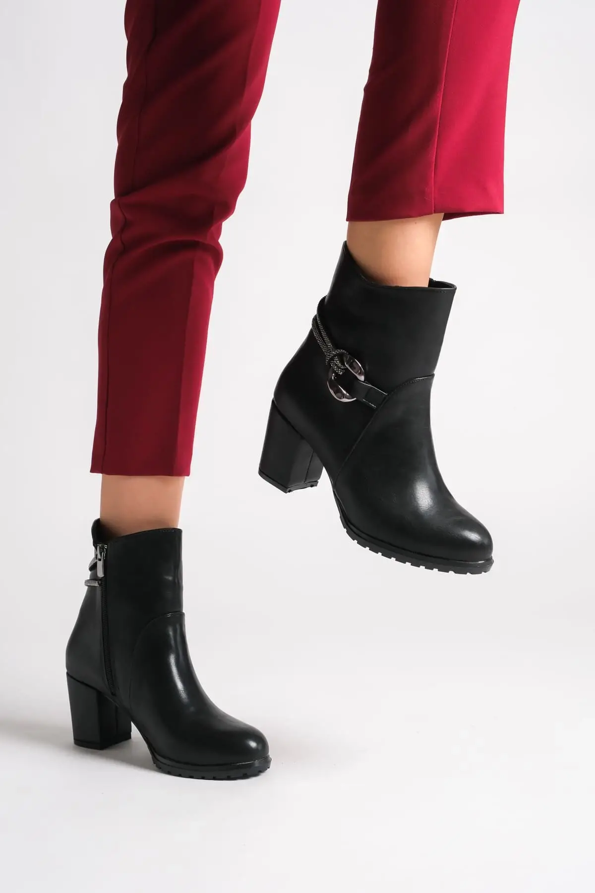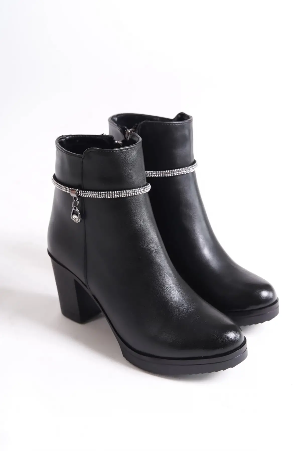 Edna Fermuarlı Ortopedik Taban Taşlı Topuklu Kadın Bot St - Siyah