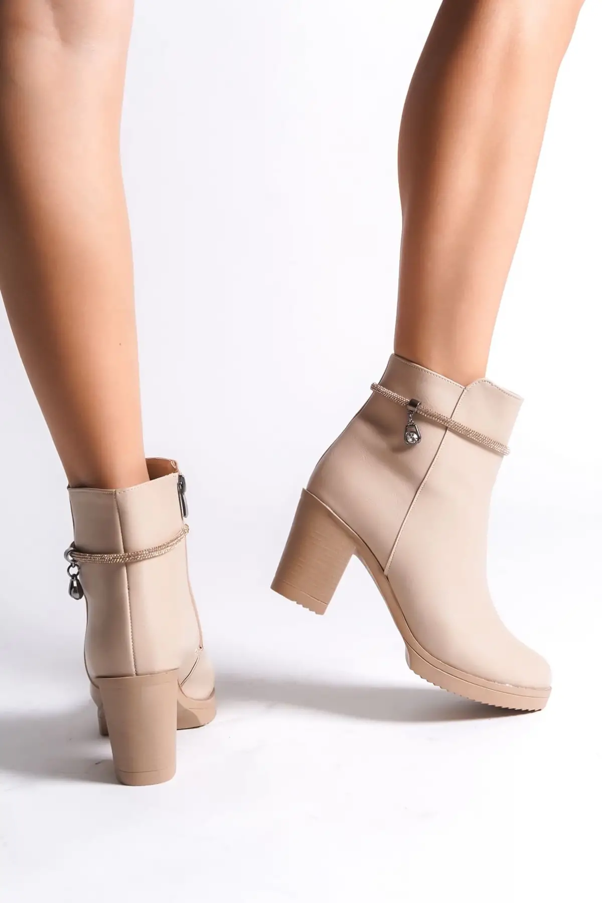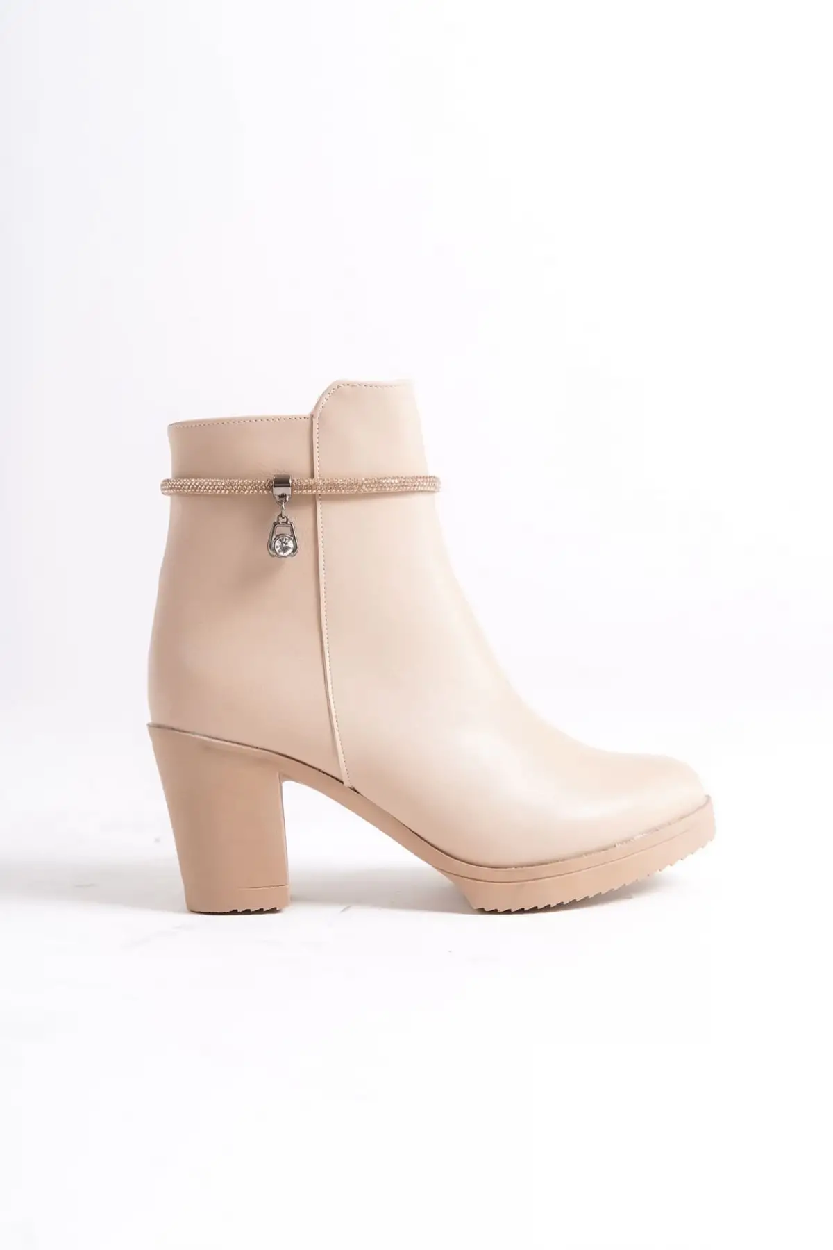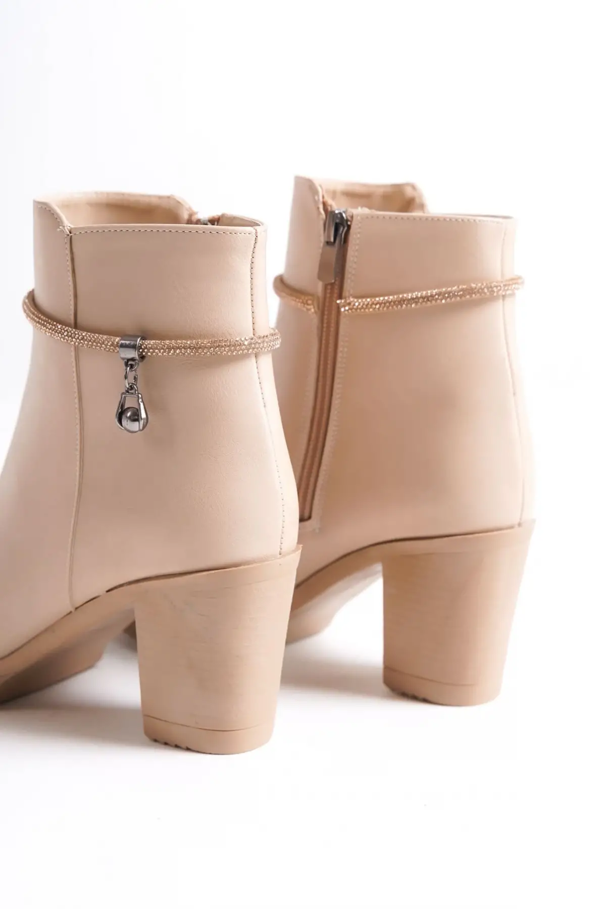 Arıa Fermuarlı Ortopedik Taban Taşlı Topuklu Kadın Bot Tt - Ten