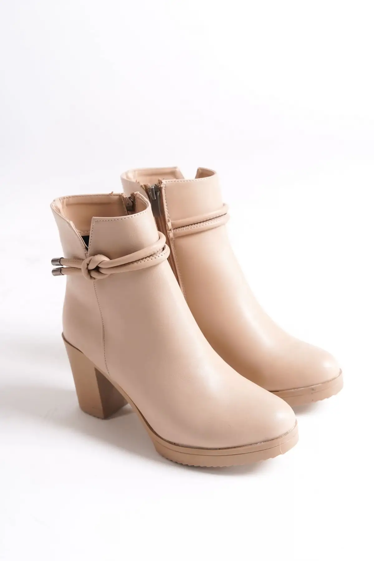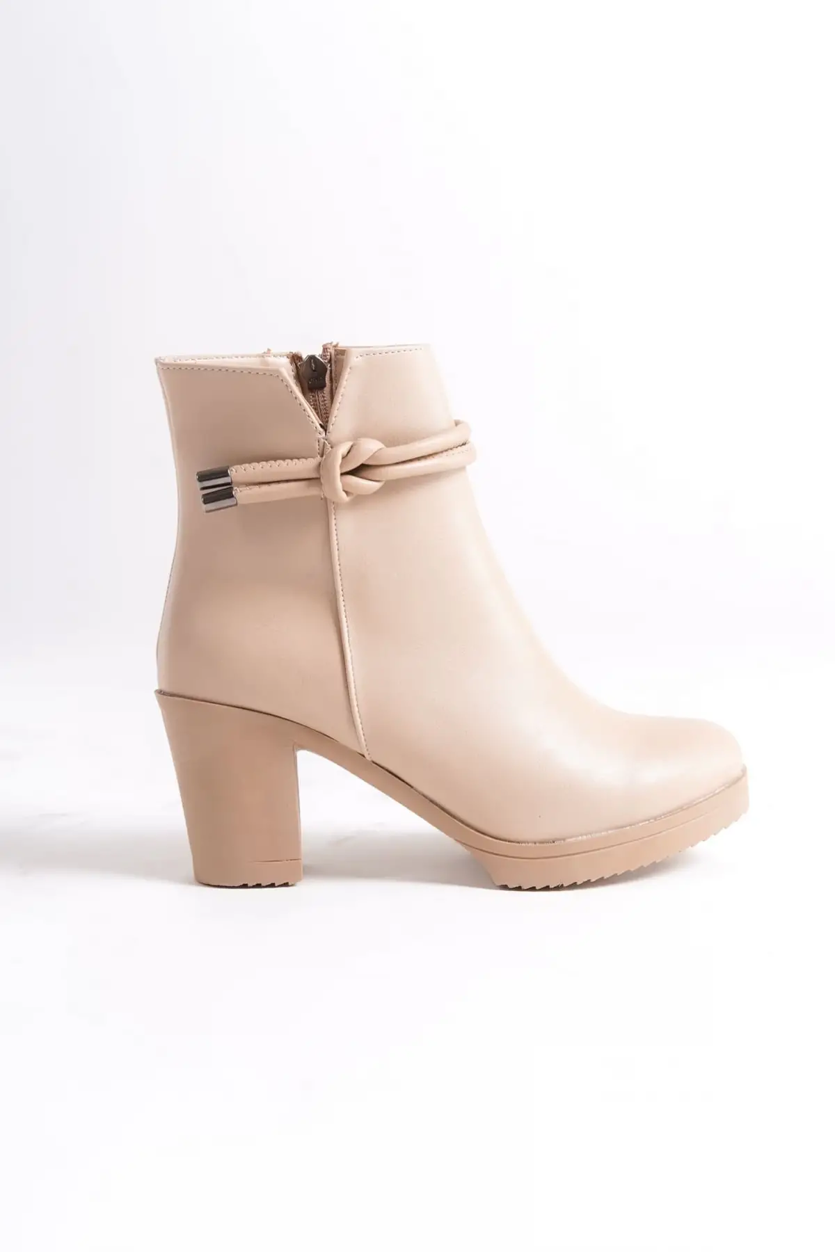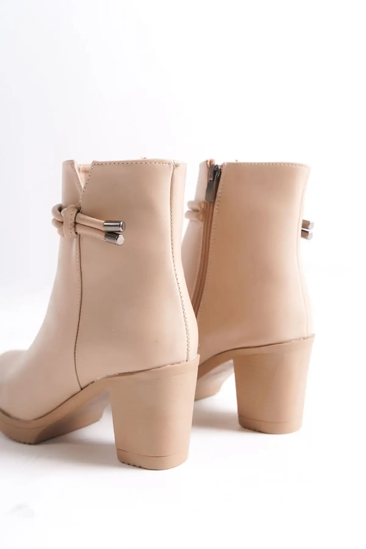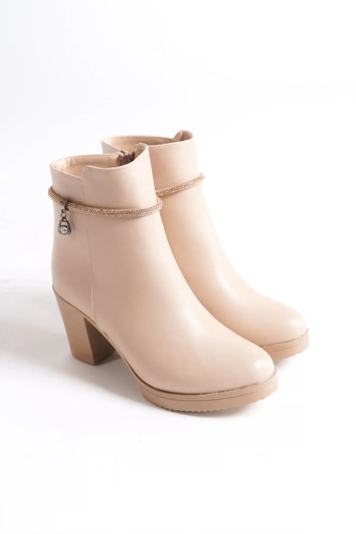 Arıa Fermuarlı Ortopedik Taban Taşlı Topuklu Kadın Bot Tt - Ten