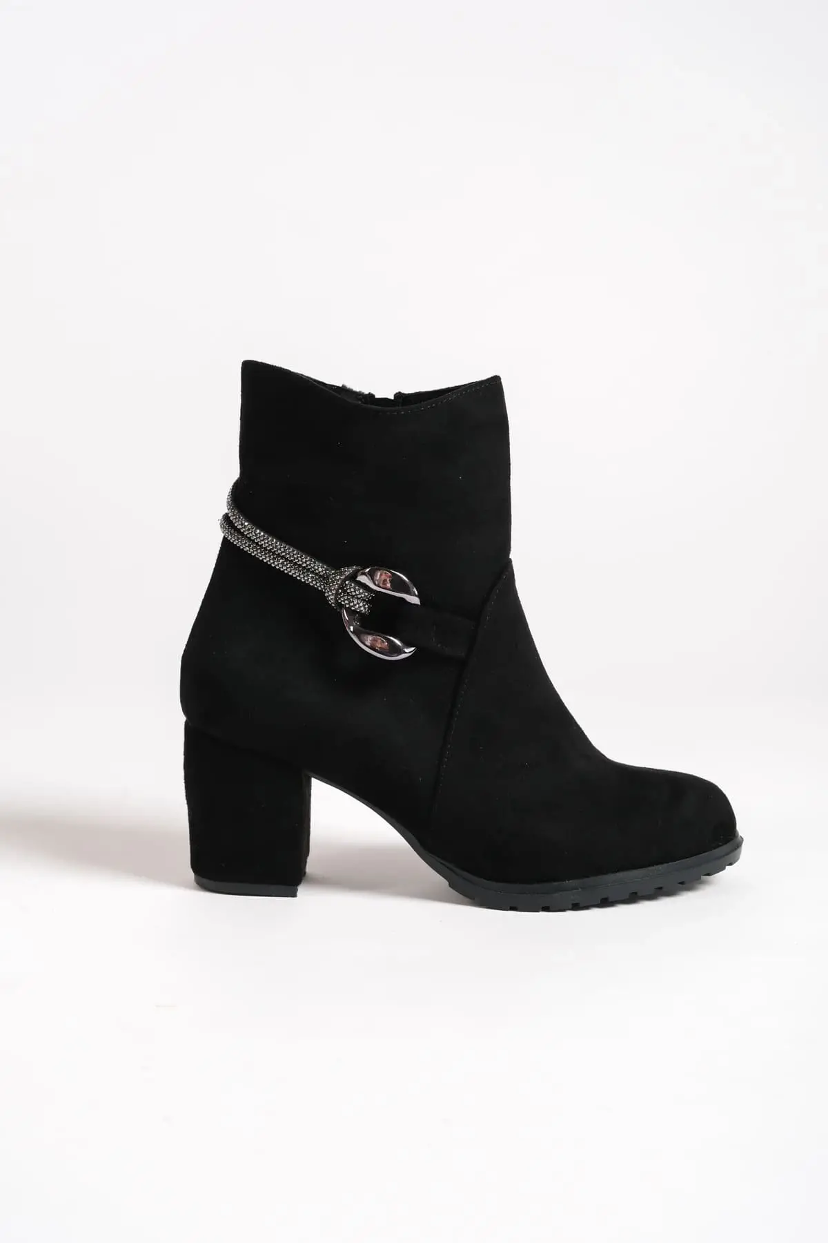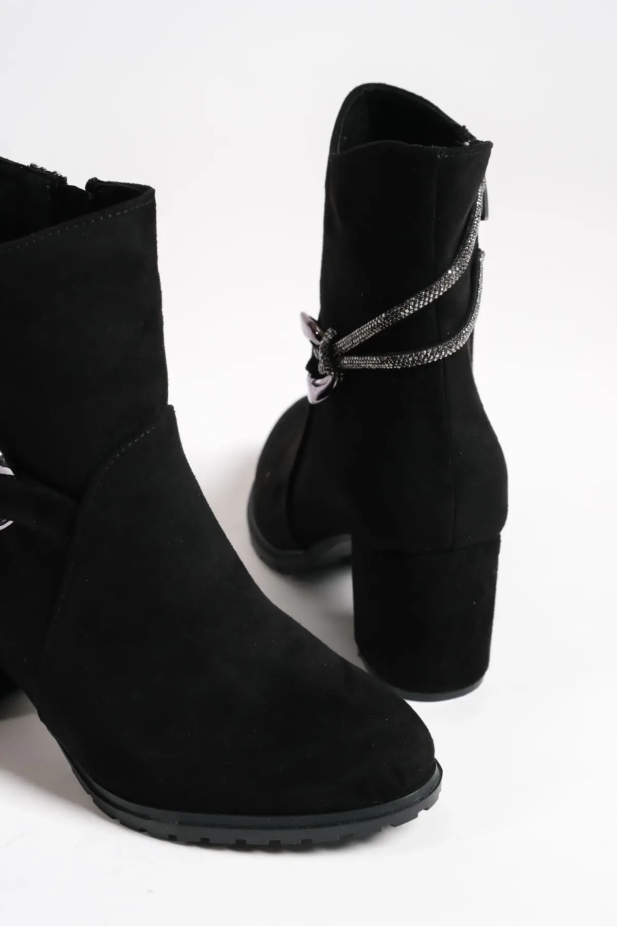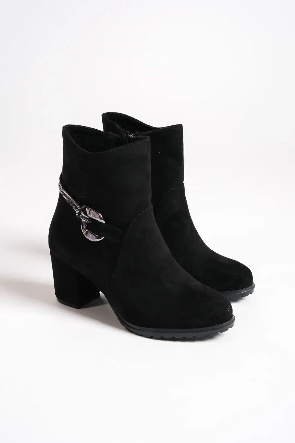 Edna Fermuarlı Ortopedik Taban Taşlı Topuklu Süet Kadın Bot St - Siyah