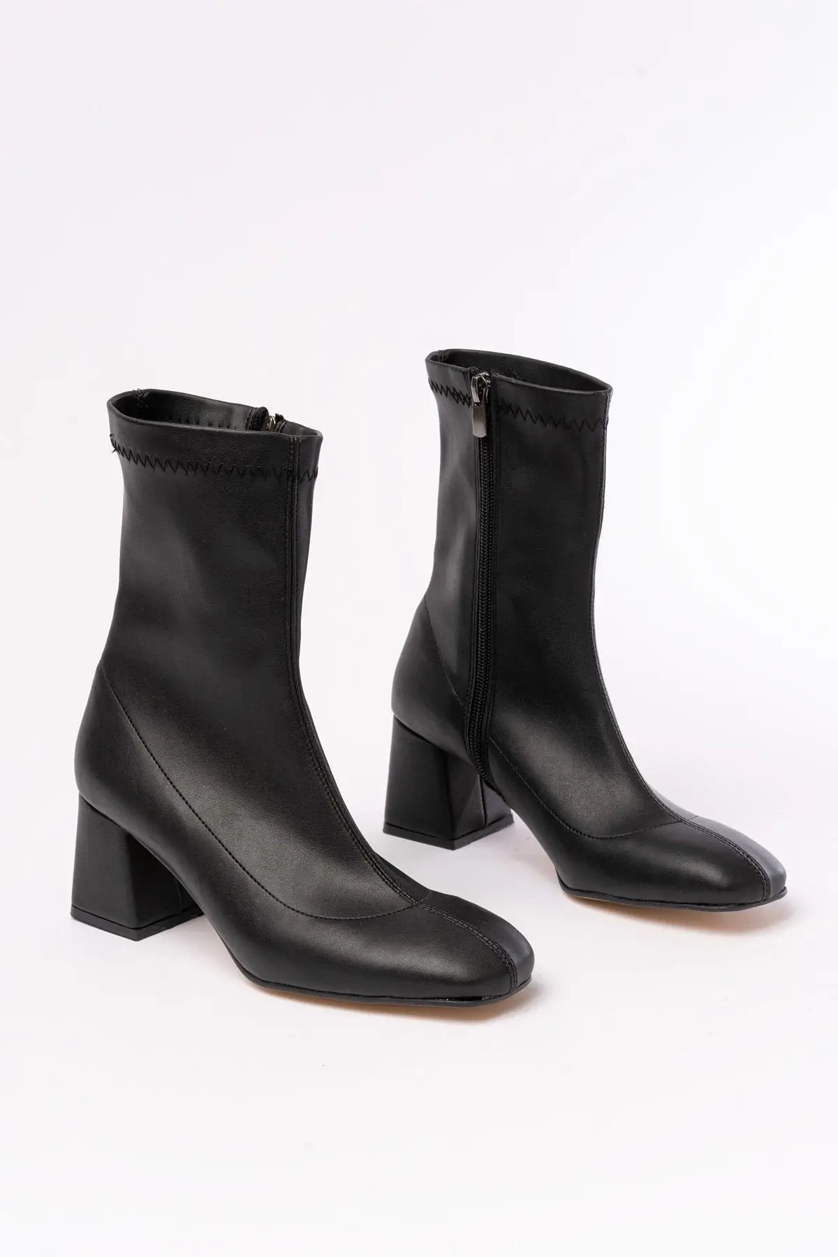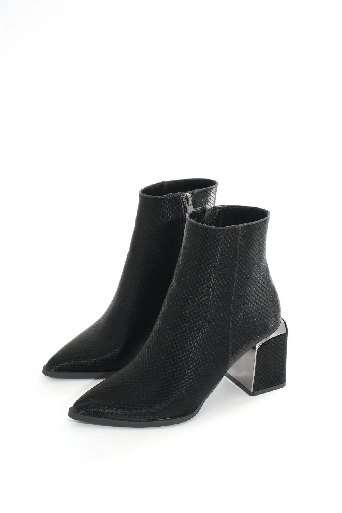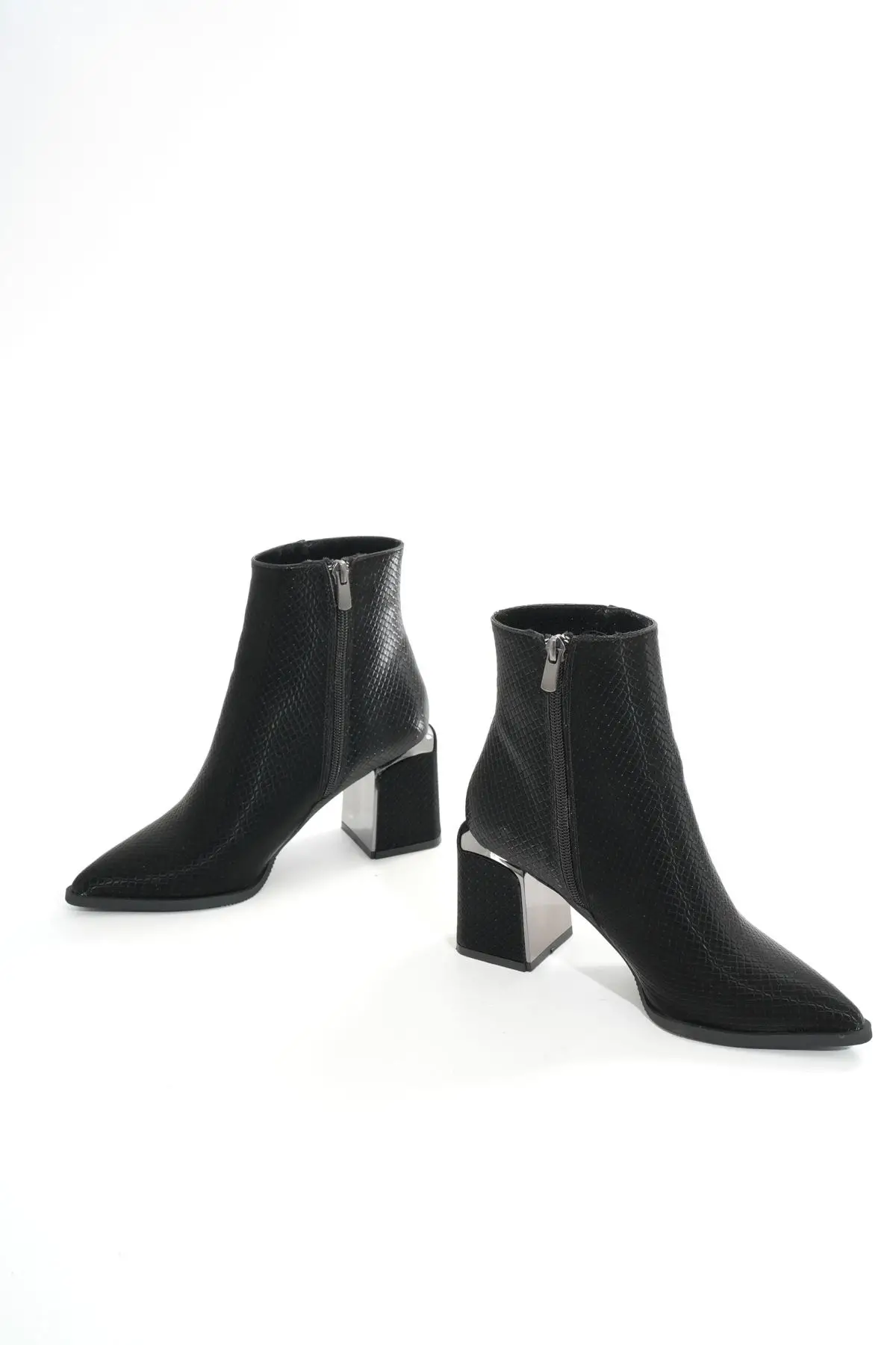 Siyah Topuklu Fermuarlı Günlük Kadın Bot