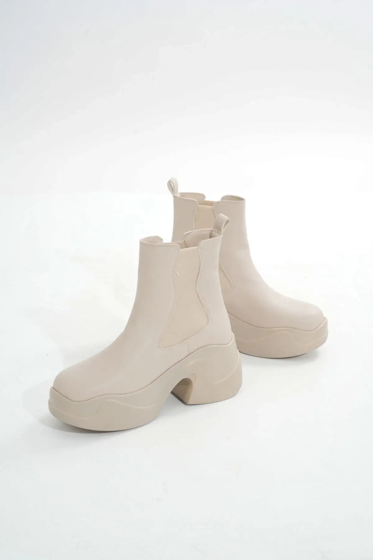Bej Yüksek Tabanlı Lastikli Günlük Kadın Bot
