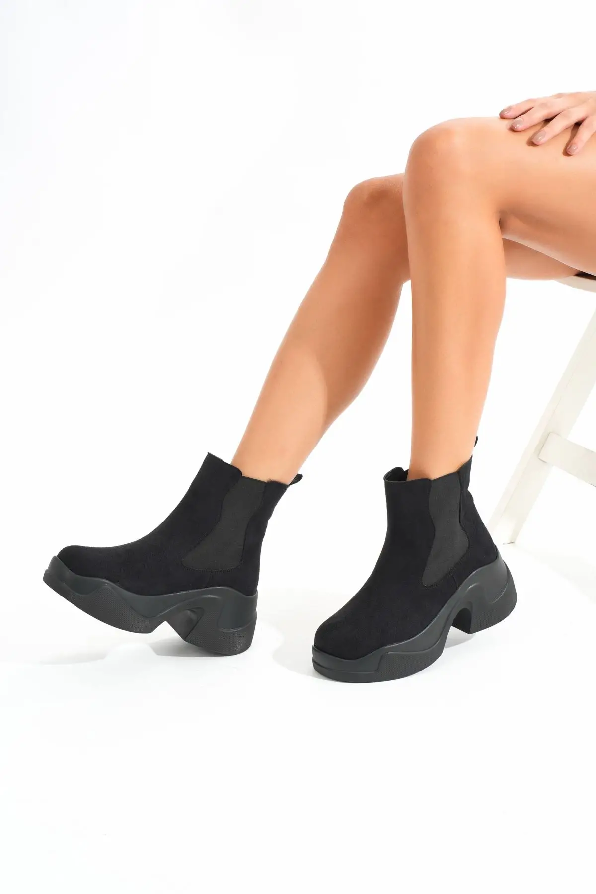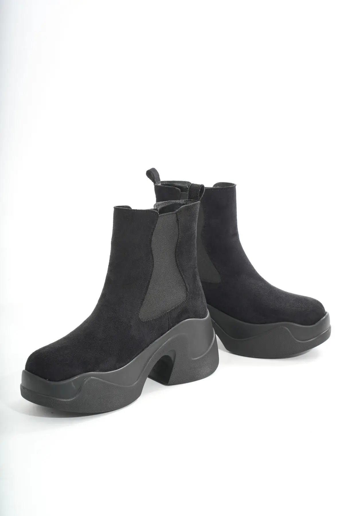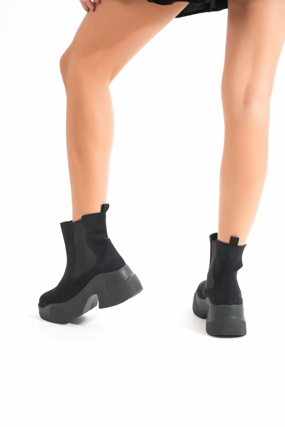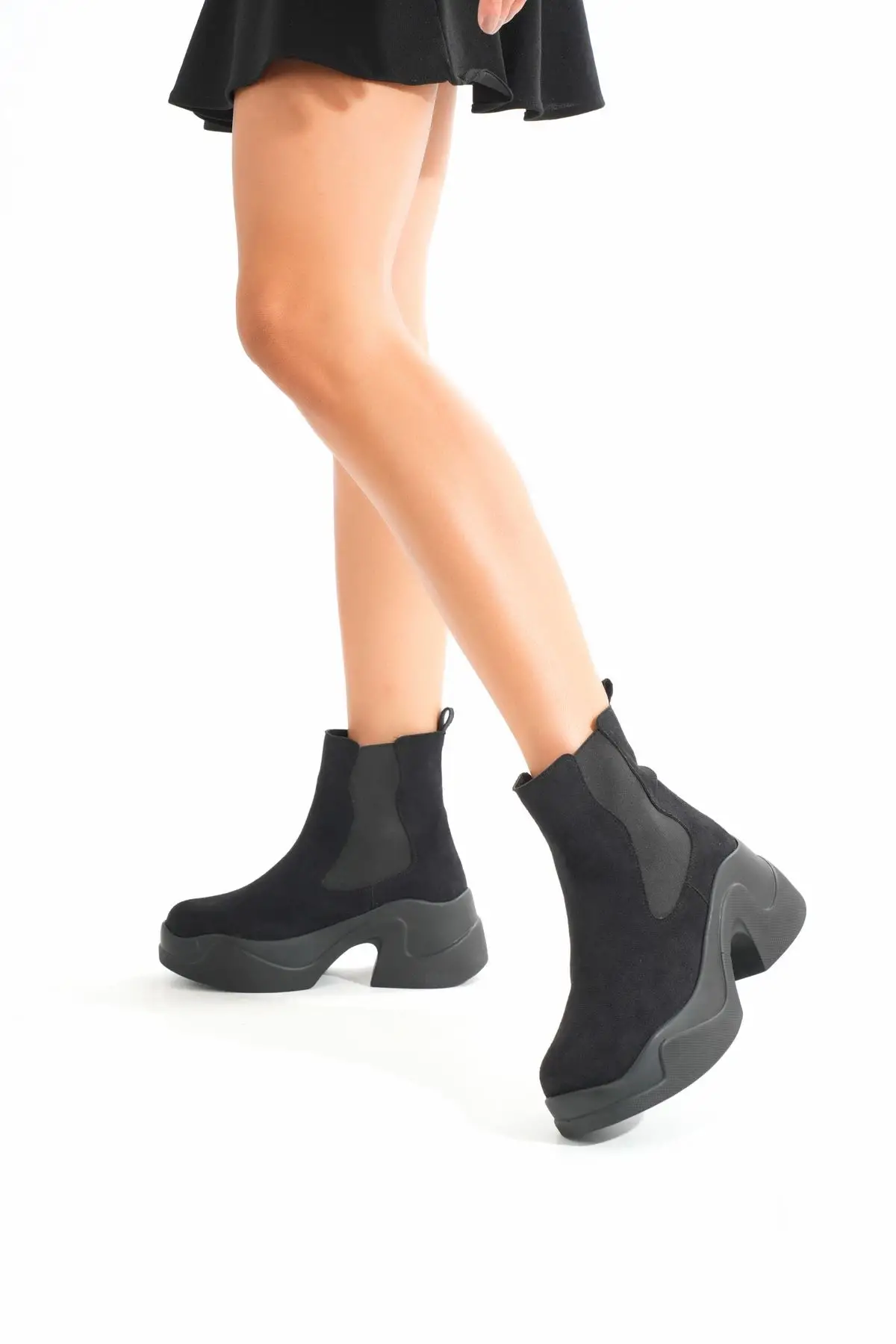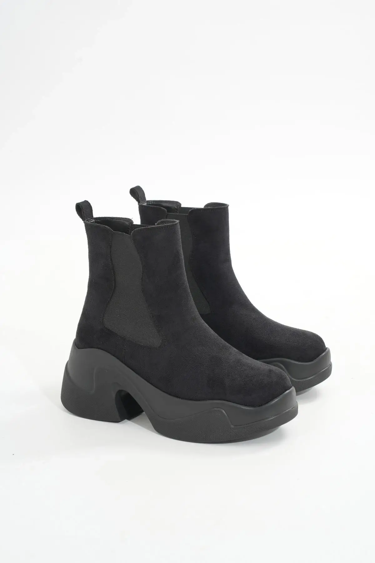 Siyah Süet Yüksek Tabanlı Lastikli Günlük Kadın Bot