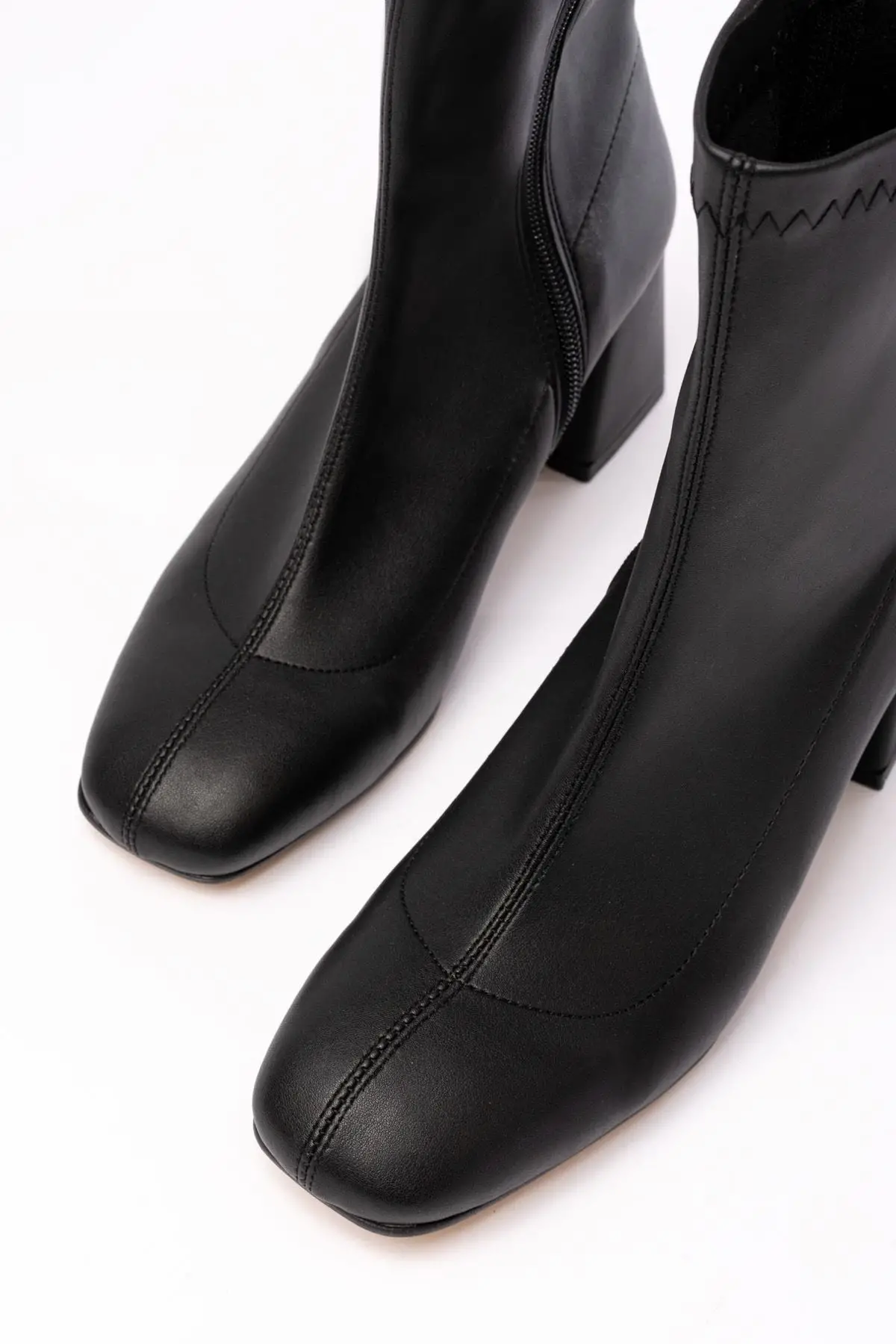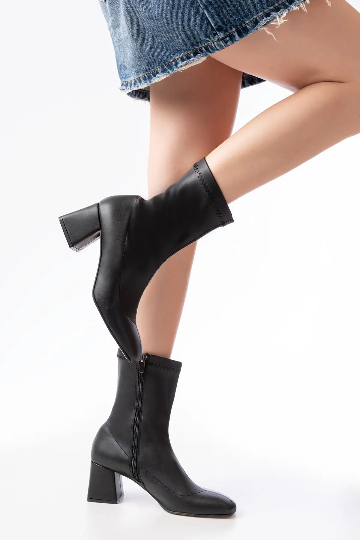 Siyah Streç Topuklu Fermuarlı Günlük Kadın Bot