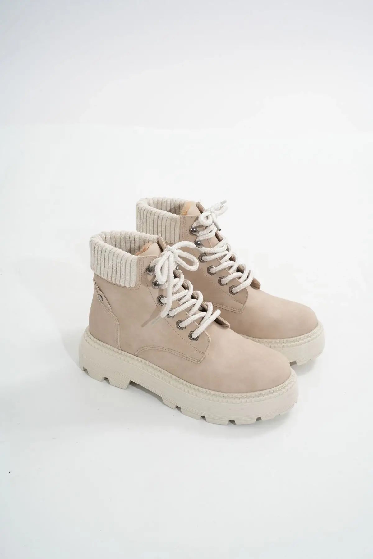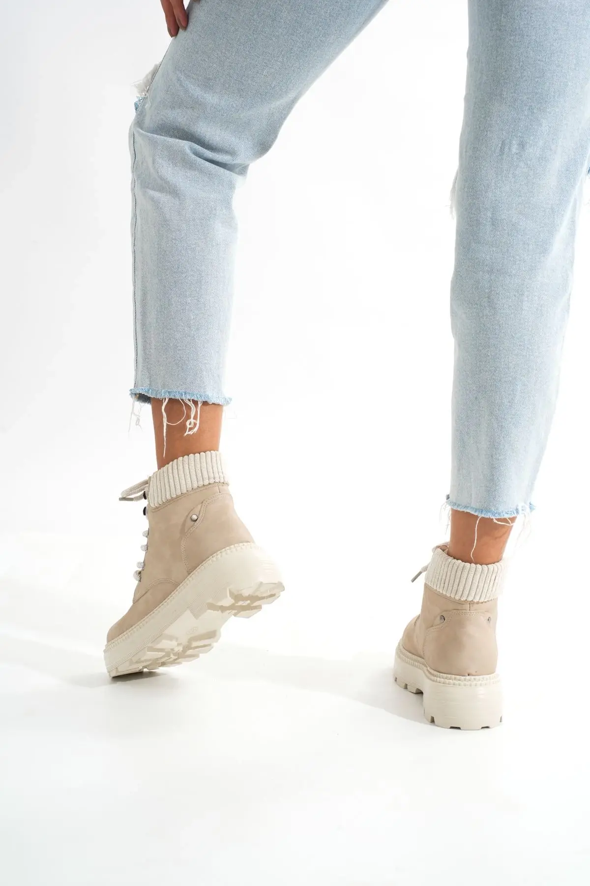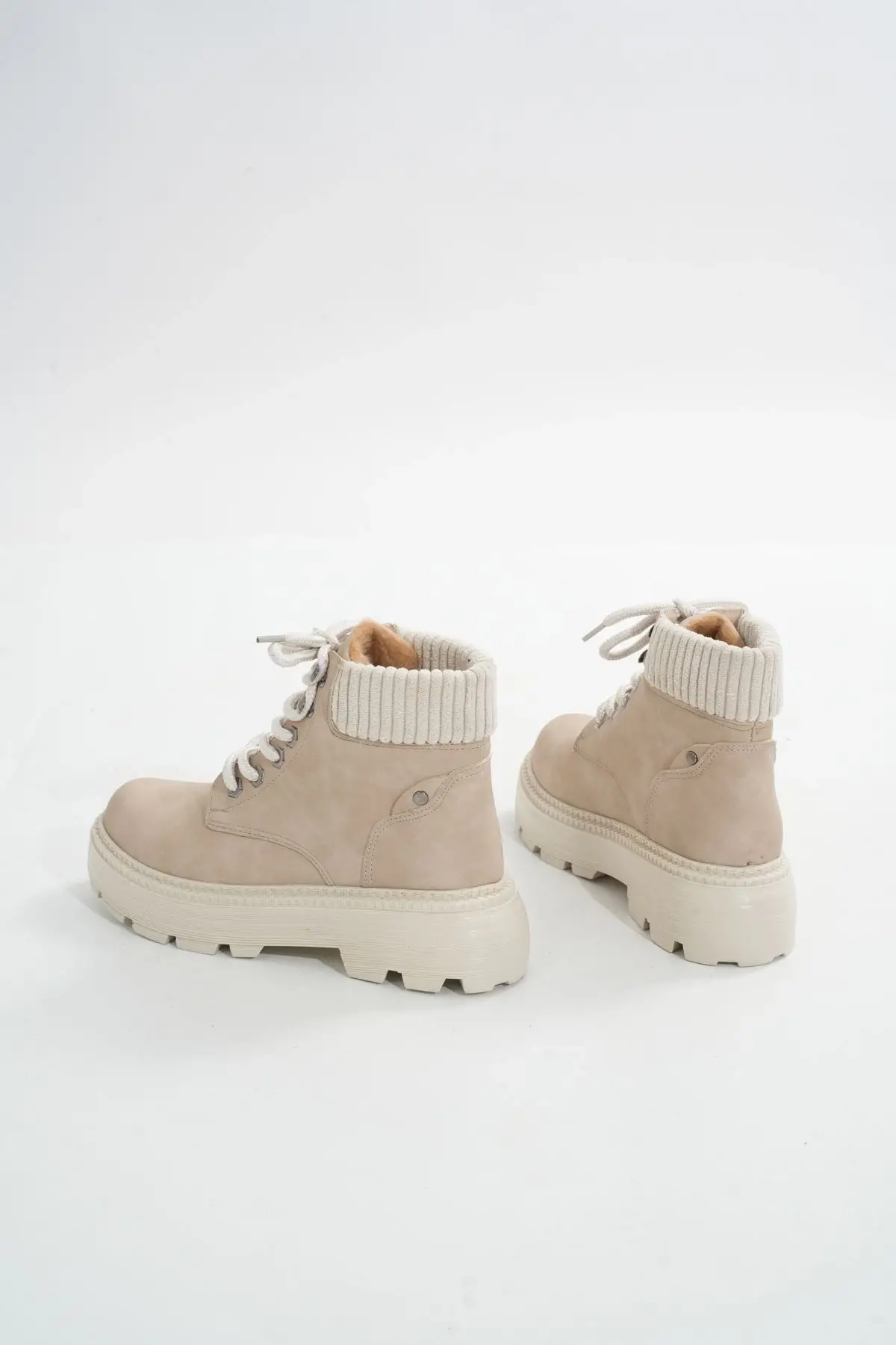 Bej Süet Bağcıklı Kalın Taban Kadın Günlük Bot