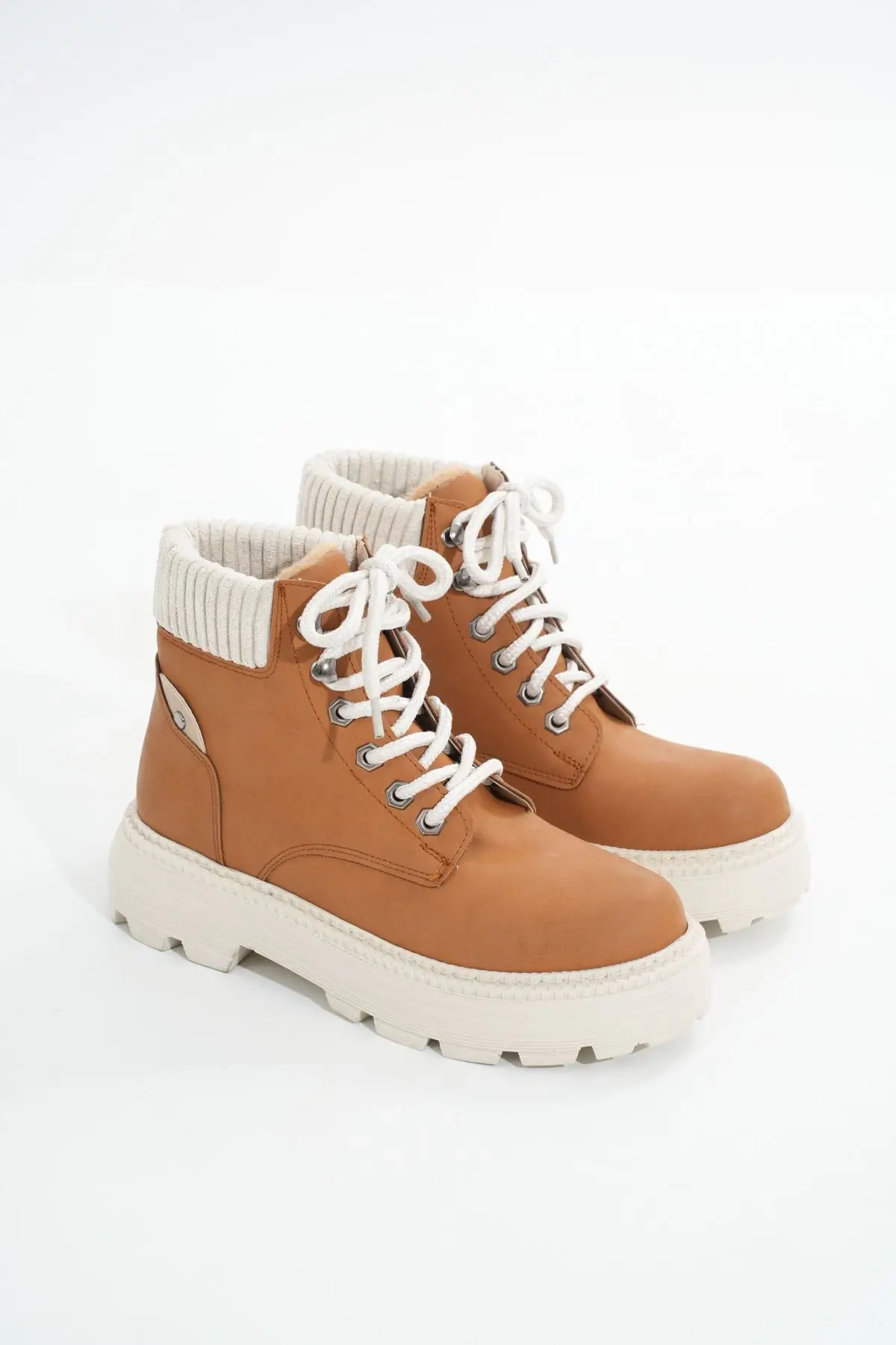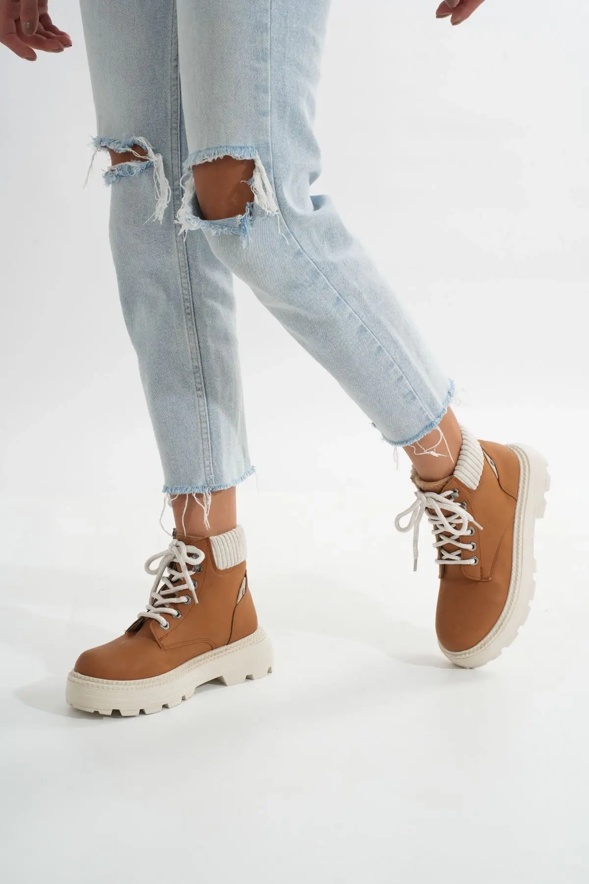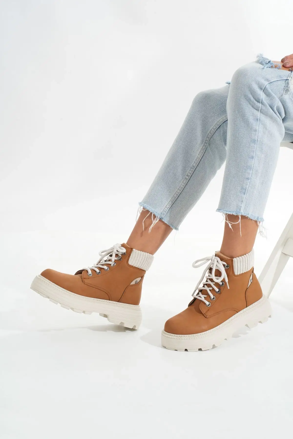 Bej Süet Bağcıklı Kalın Taban Kadın Günlük Bot