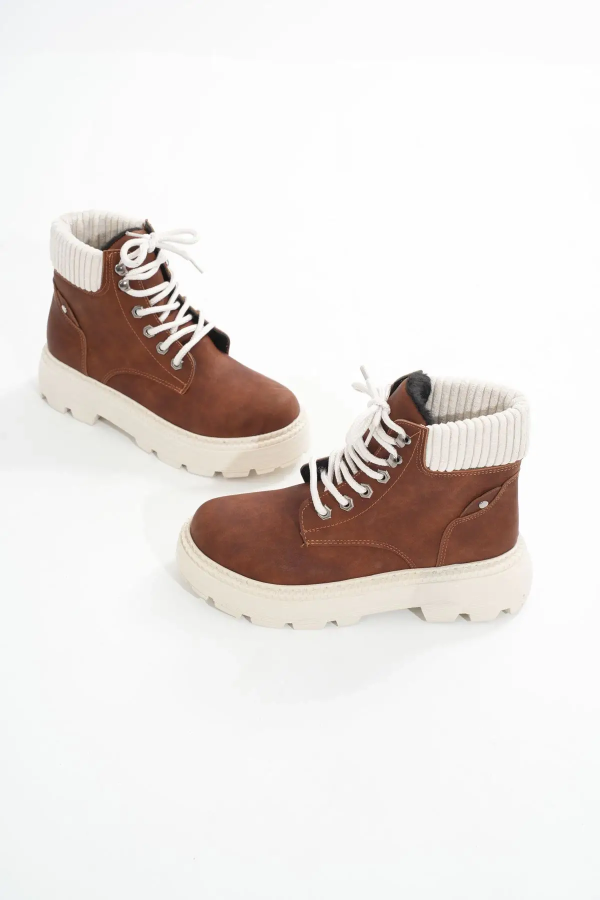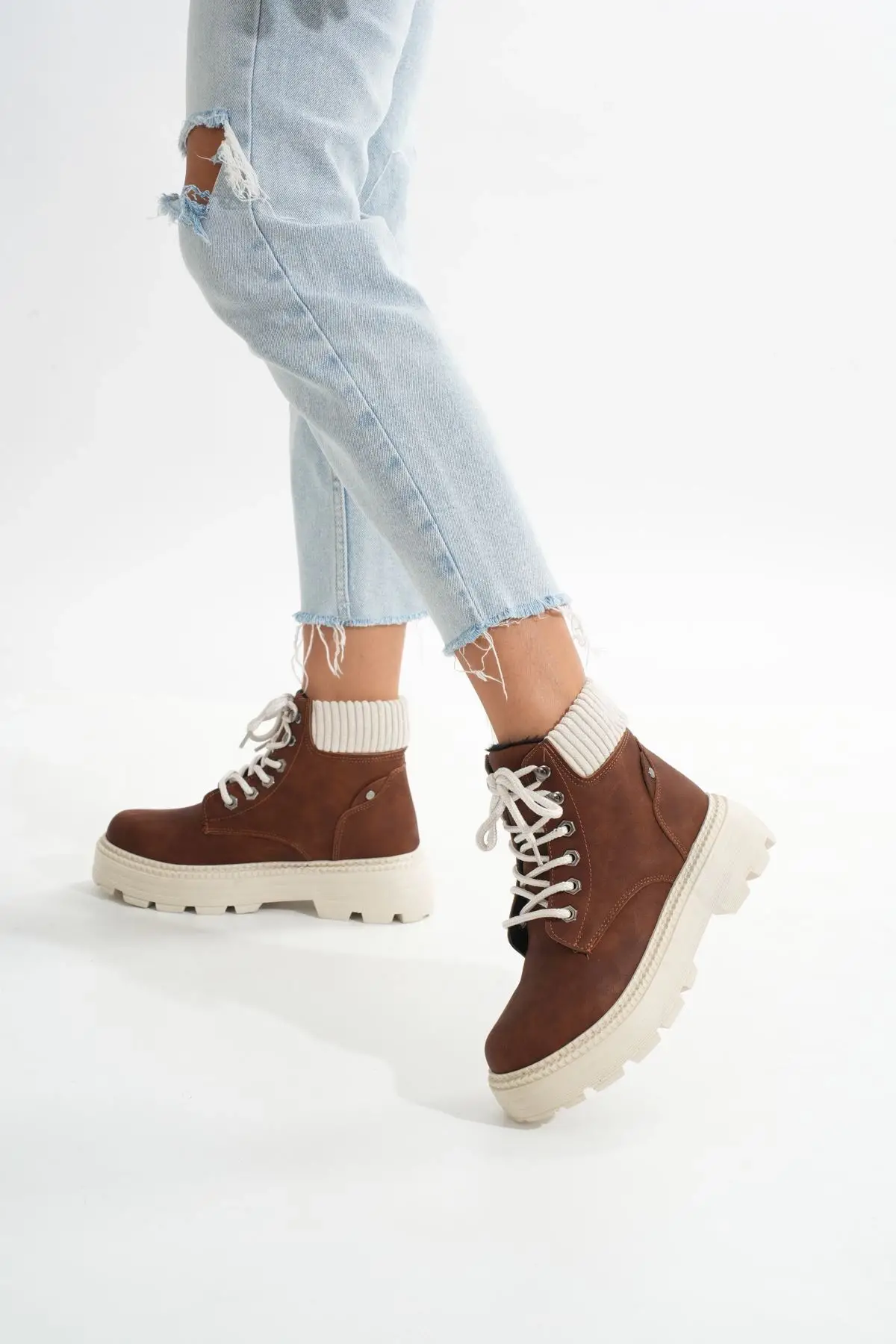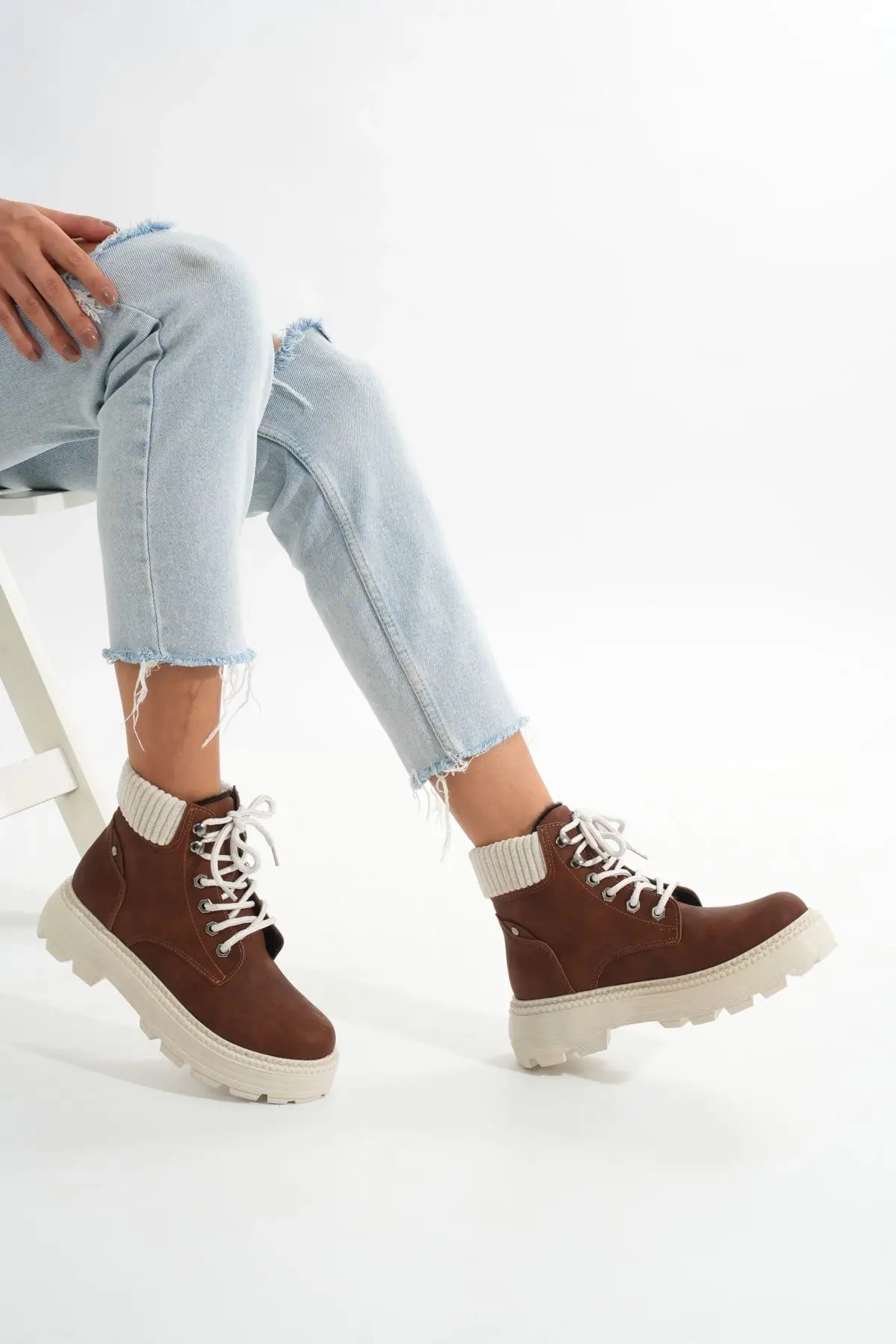 Kahverengi Yüksek Tabanlı Lastikli Günlük Kadın Bot