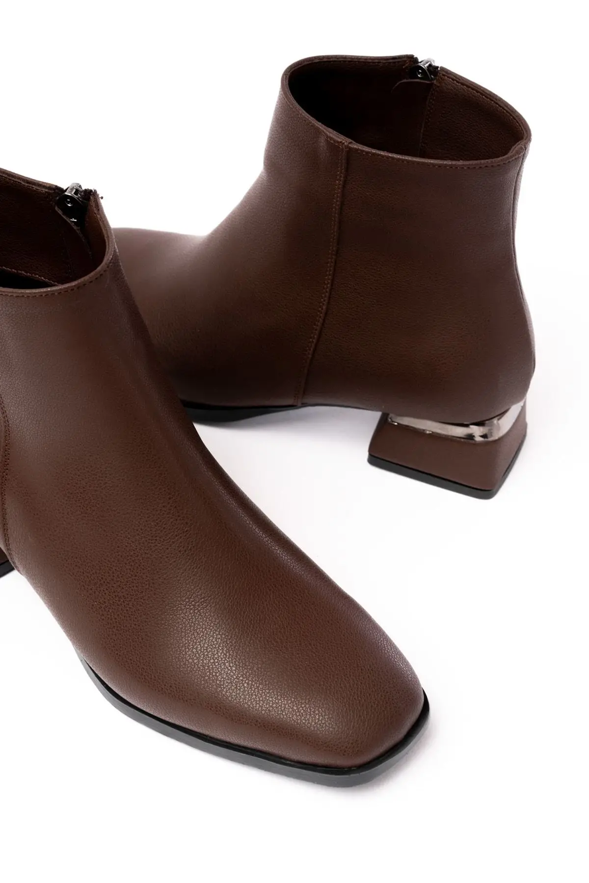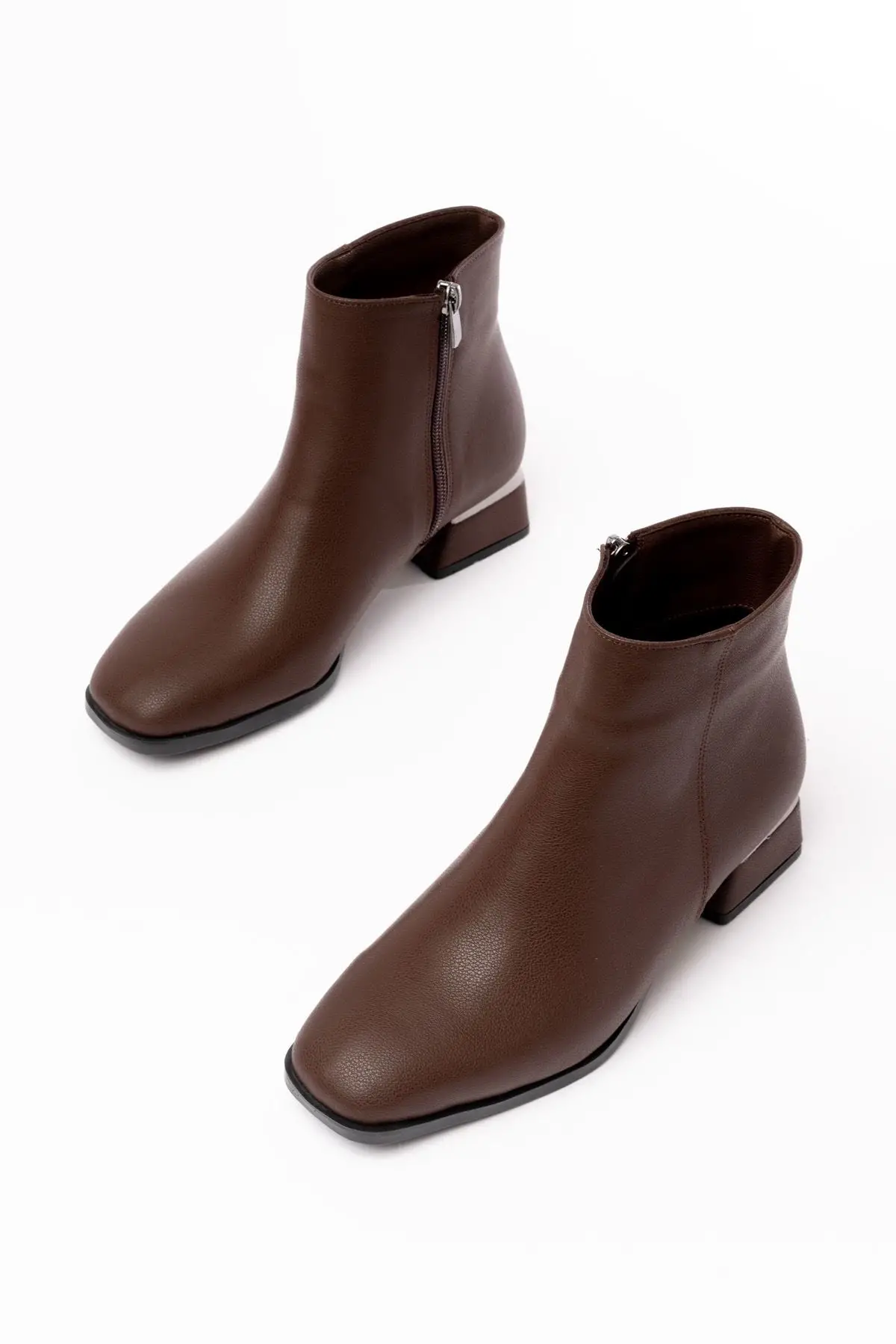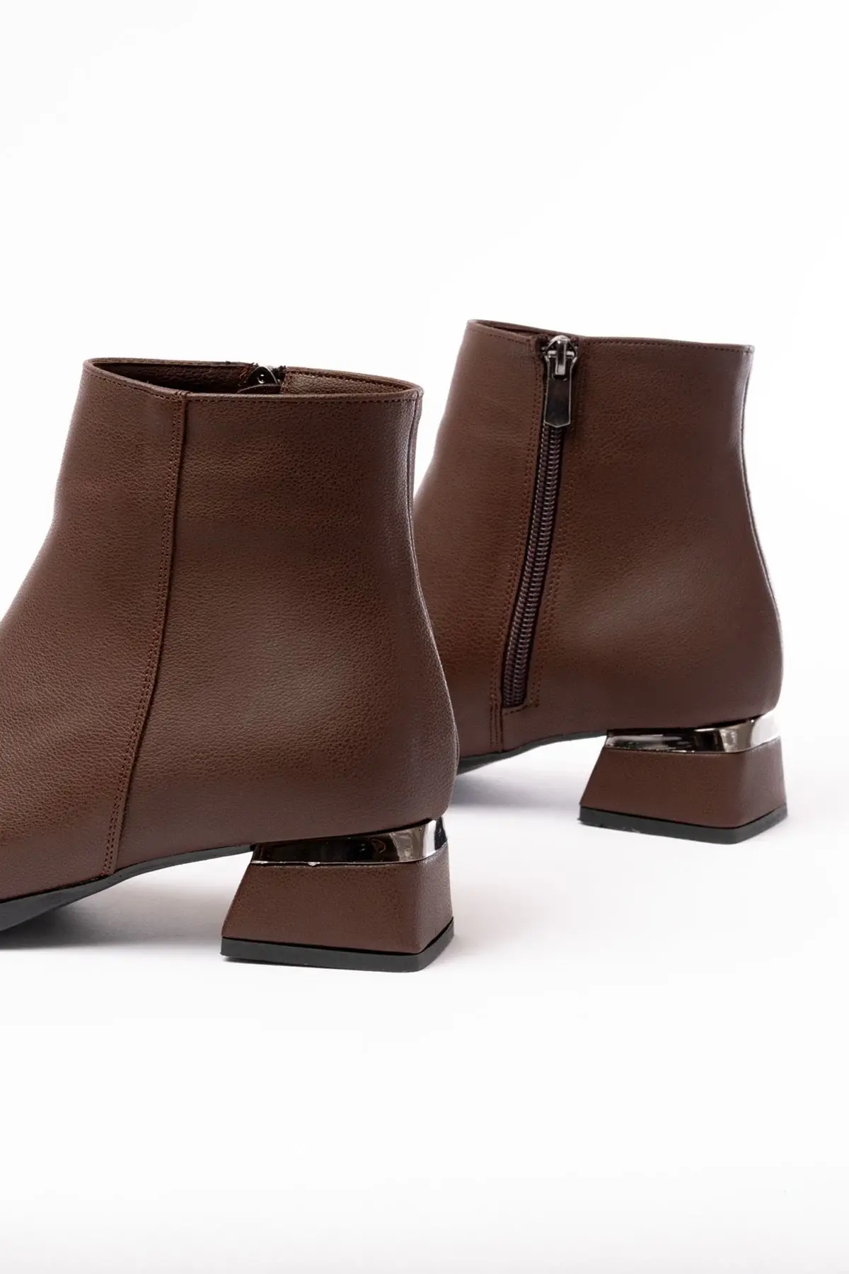 Kahverengi Topuklu Fermuarlı Günlük Kadın Bot