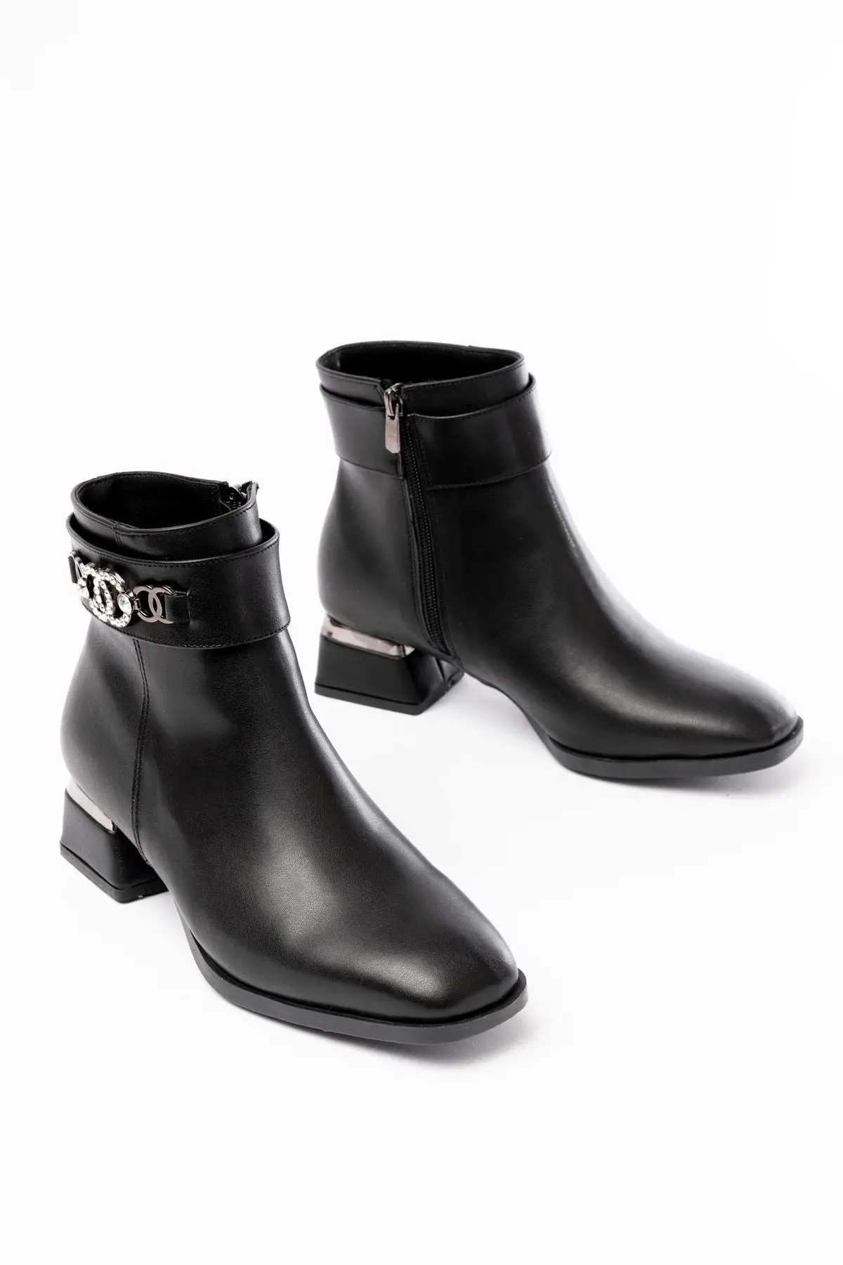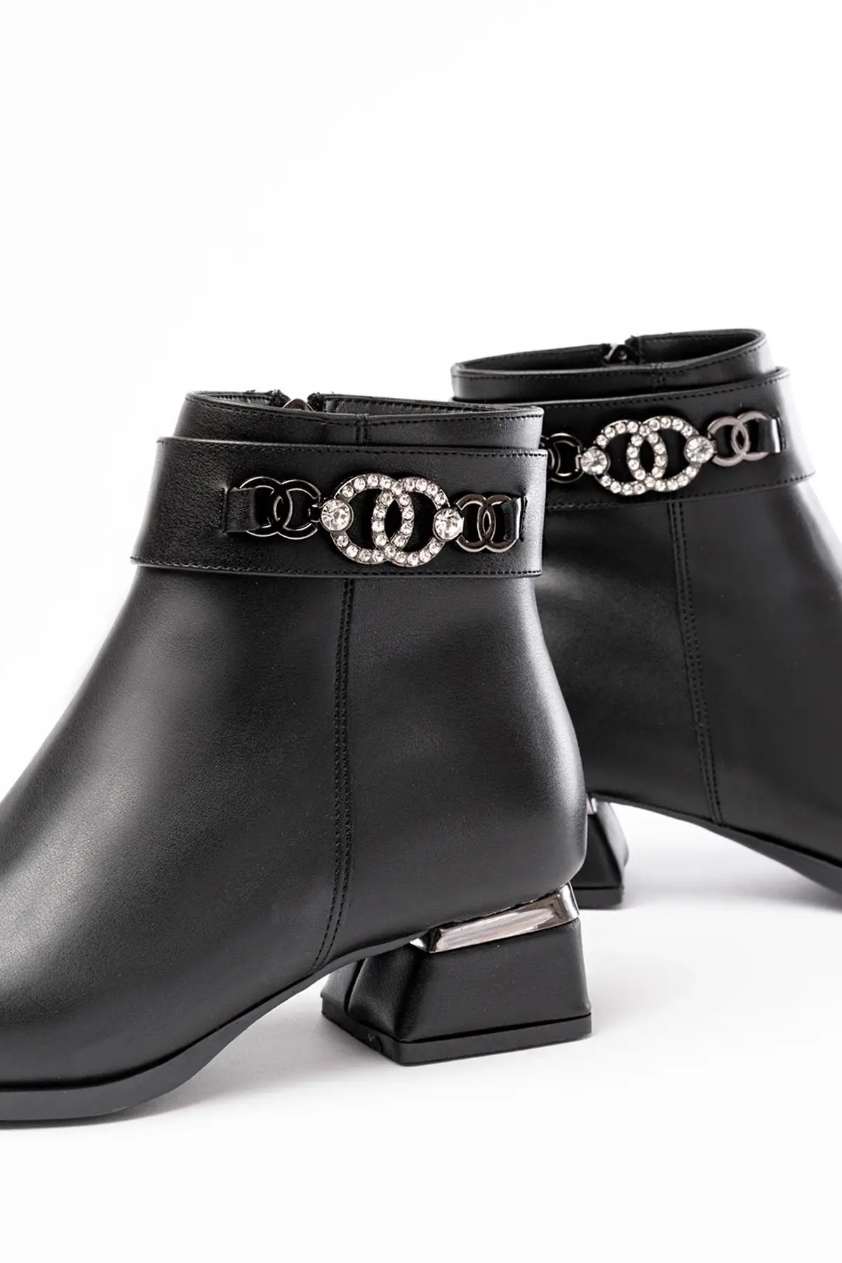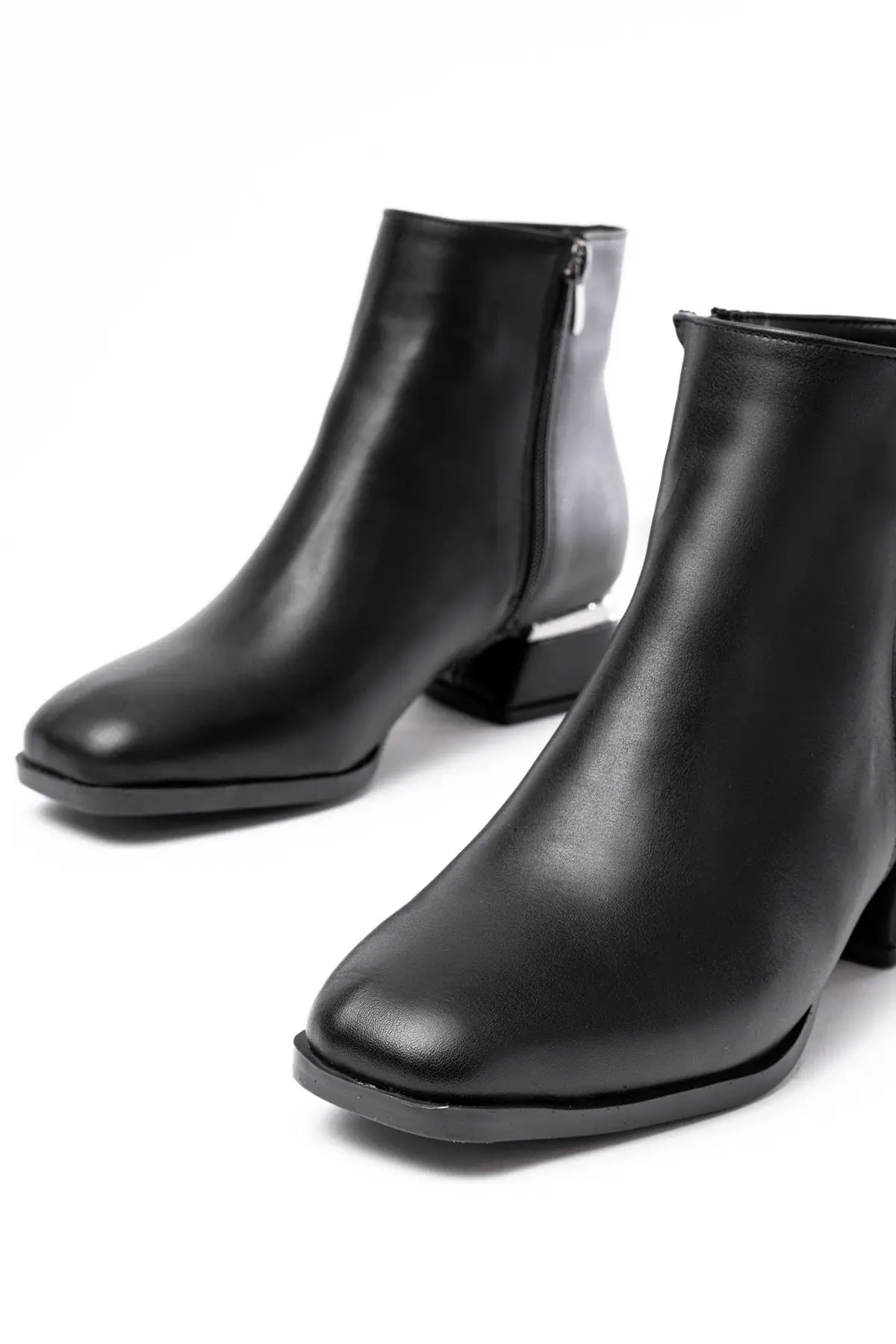 Siyah Toka Aksesuarlı Topuklu Fermuarlı Günlük Kadın Bot