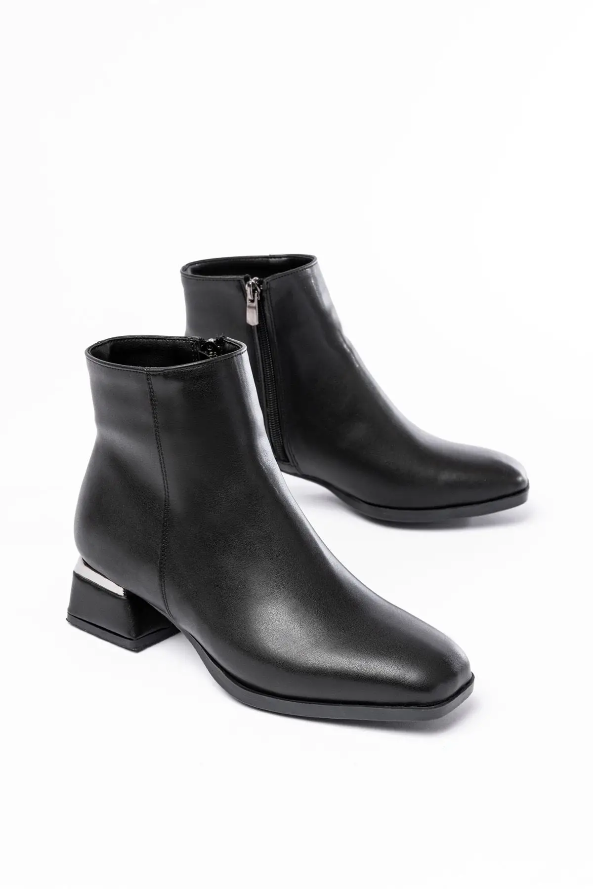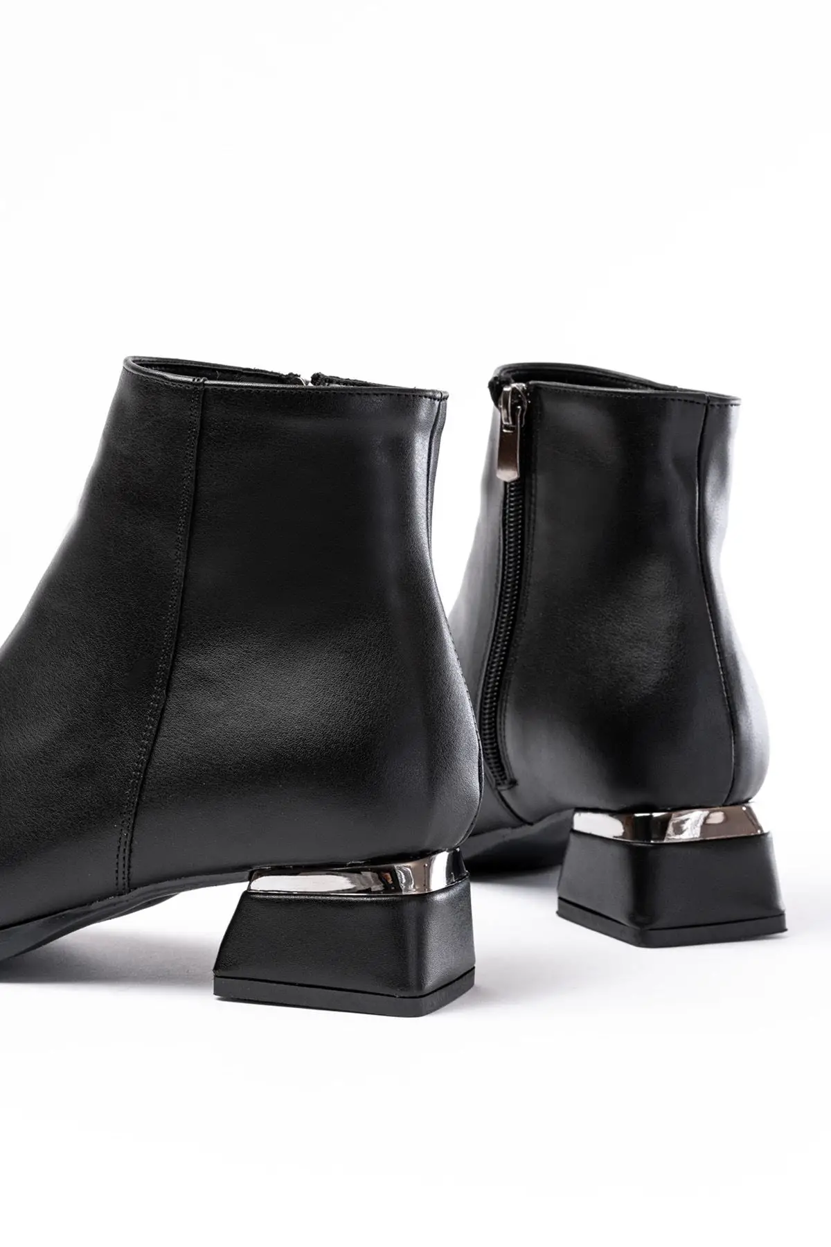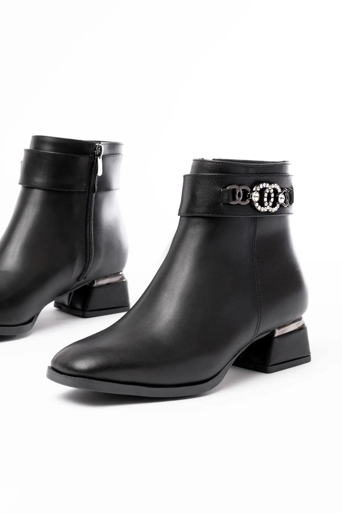 Siyah Toka Aksesuarlı Topuklu Fermuarlı Günlük Kadın Bot
