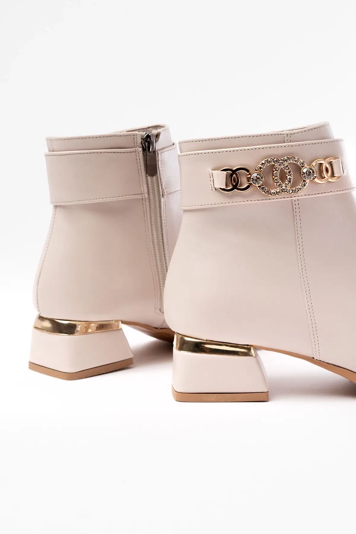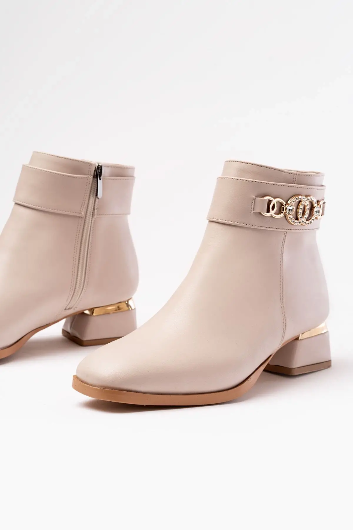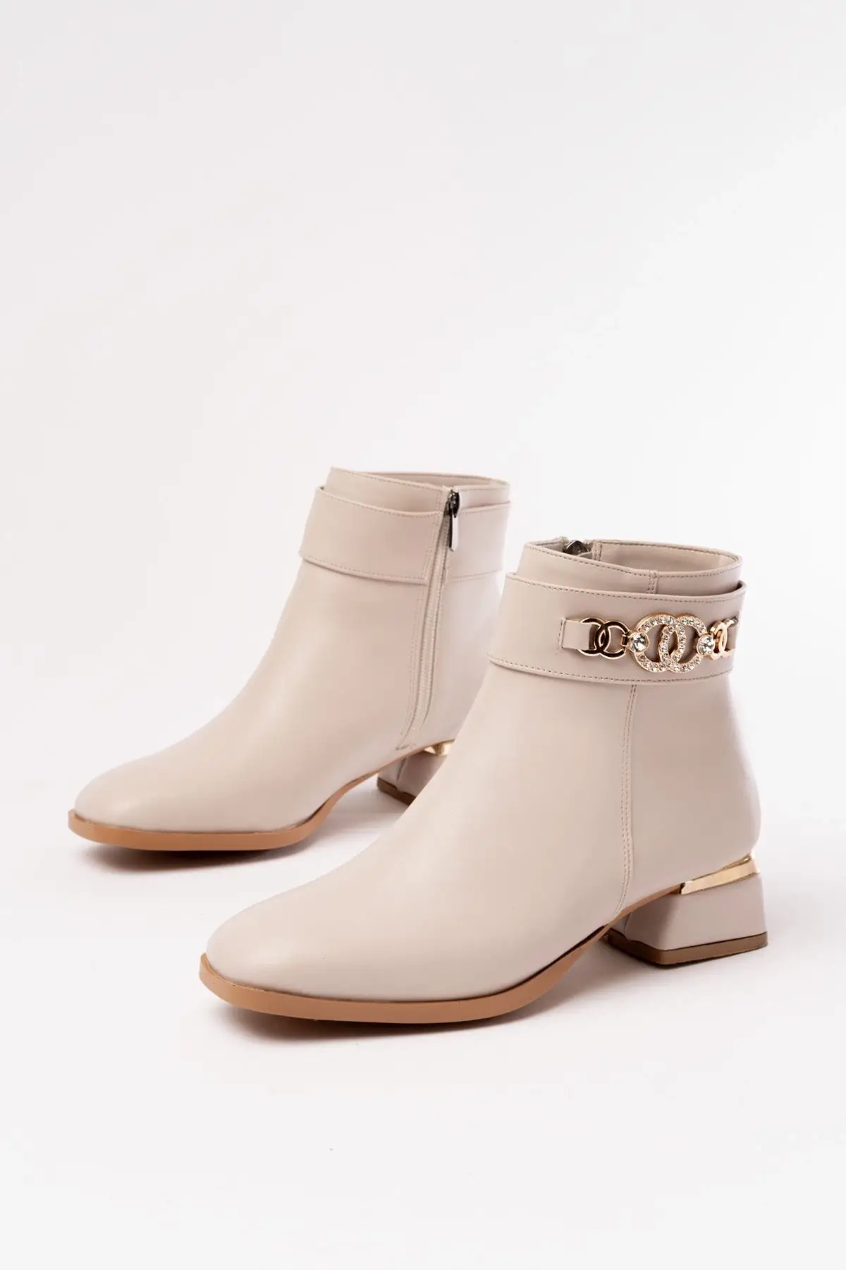 Bej Toka Aksesuarlı Topuklu Fermuarlı Günlük Kadın Bot
