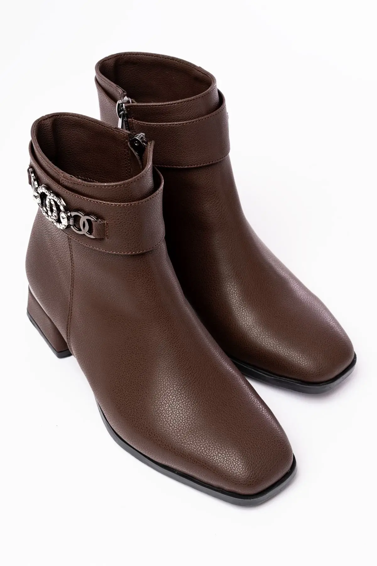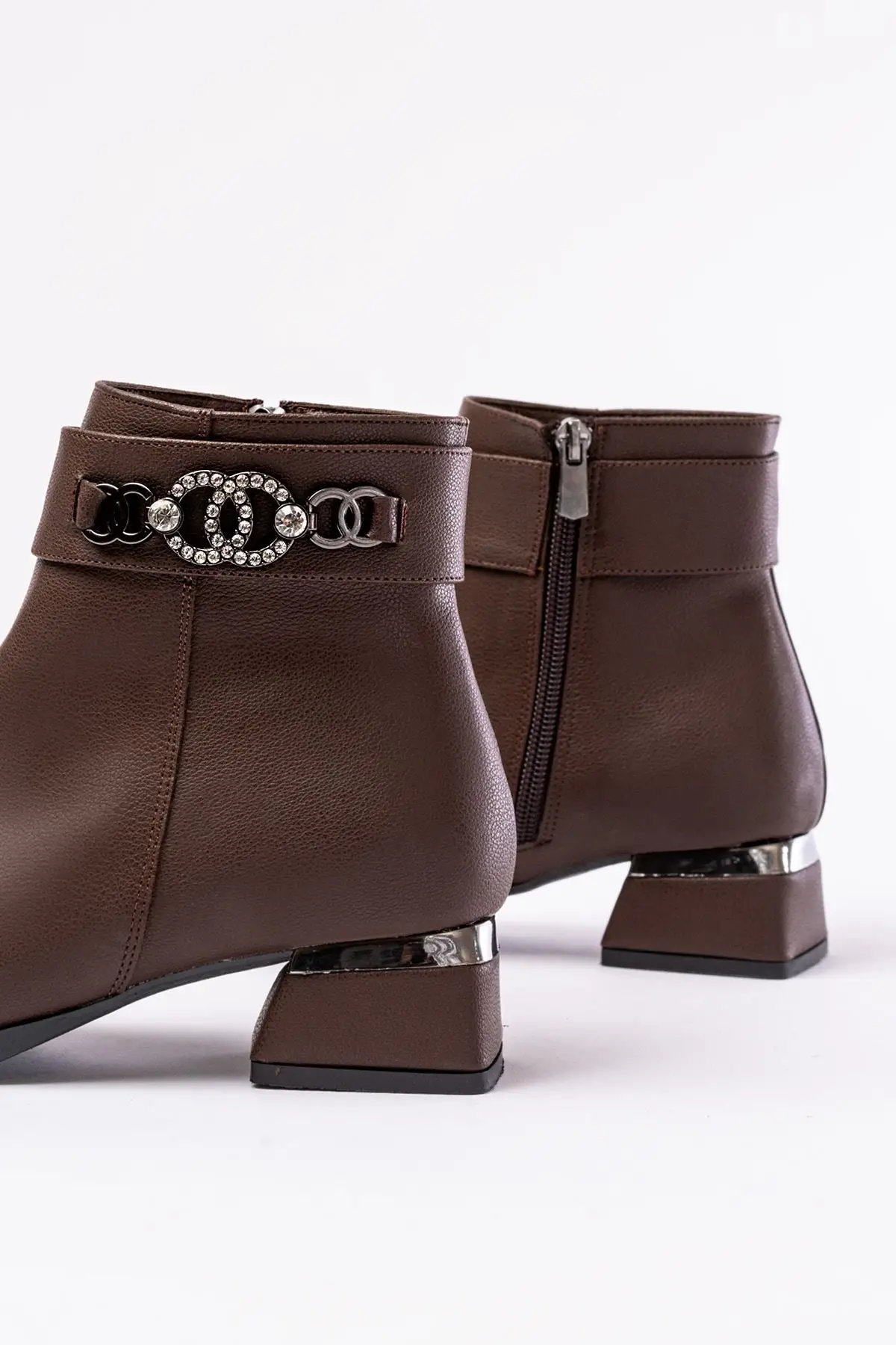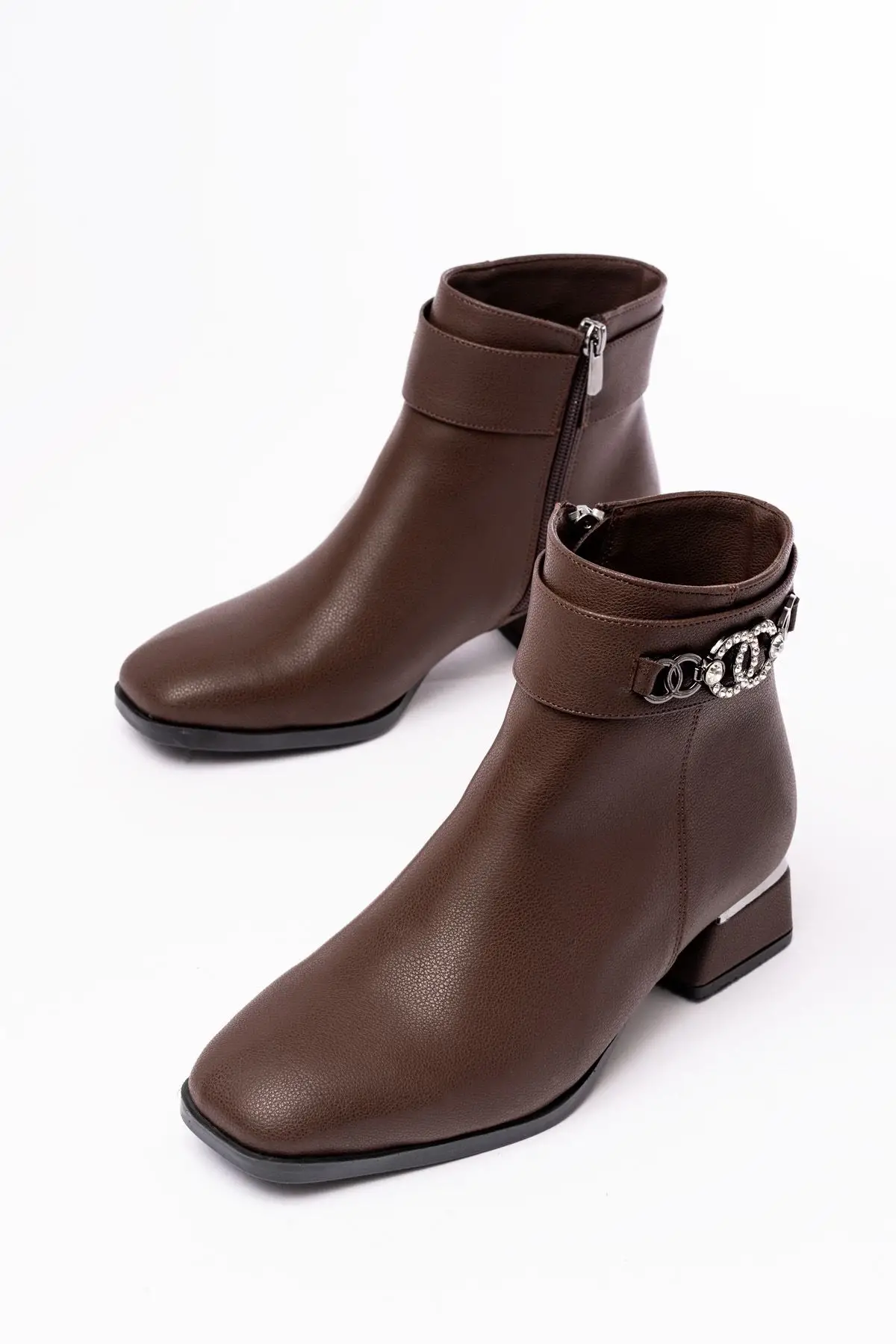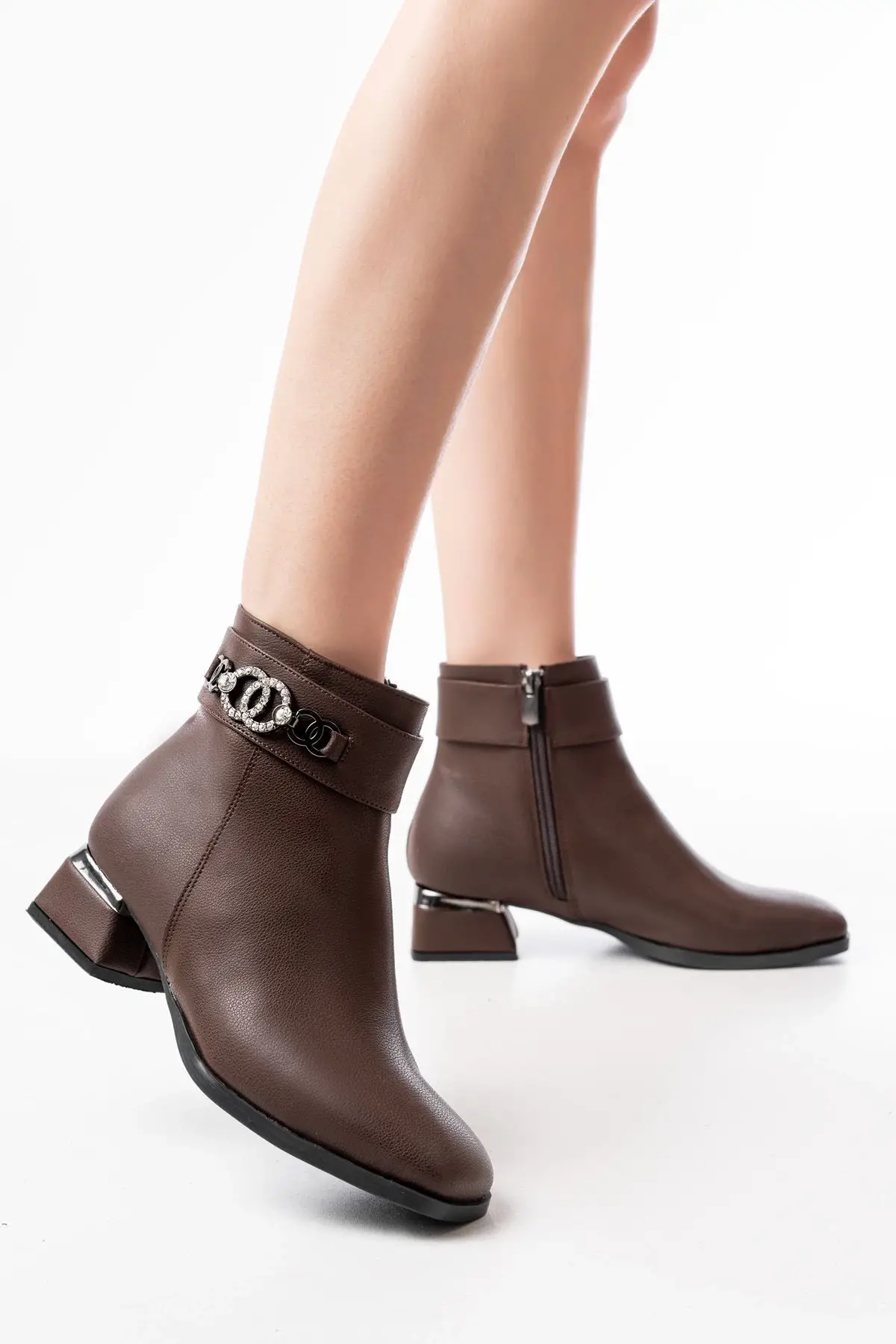Kahverengi Toka Aksesuarlı Topuklu Fermuarlı Günlük Kadın Bot