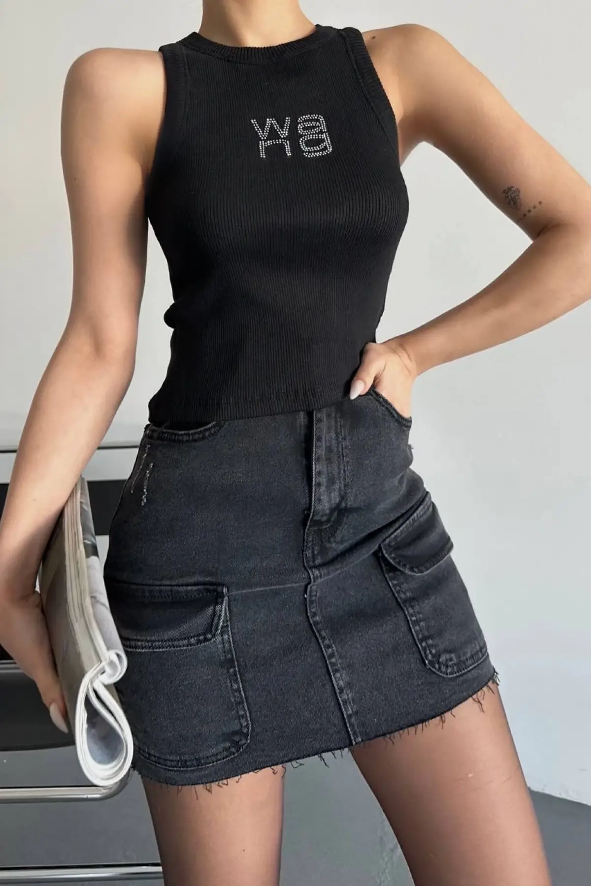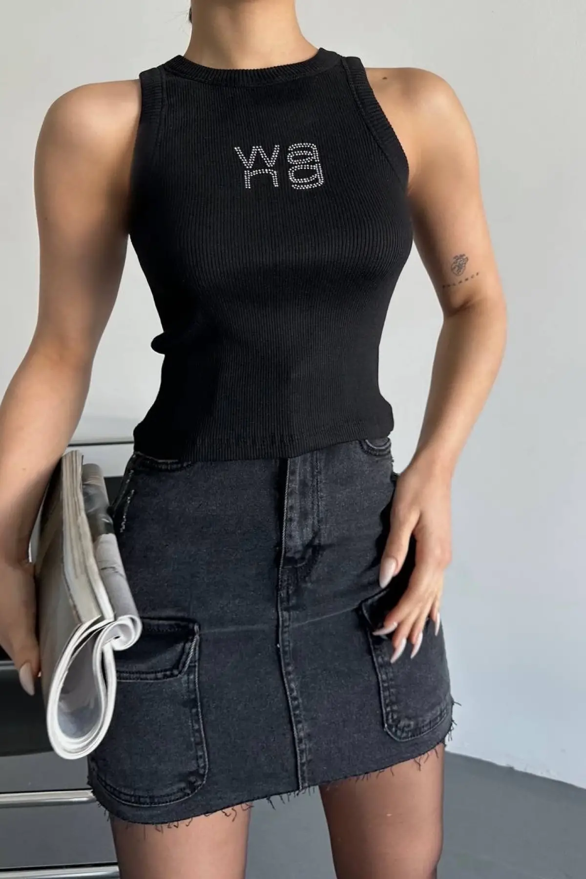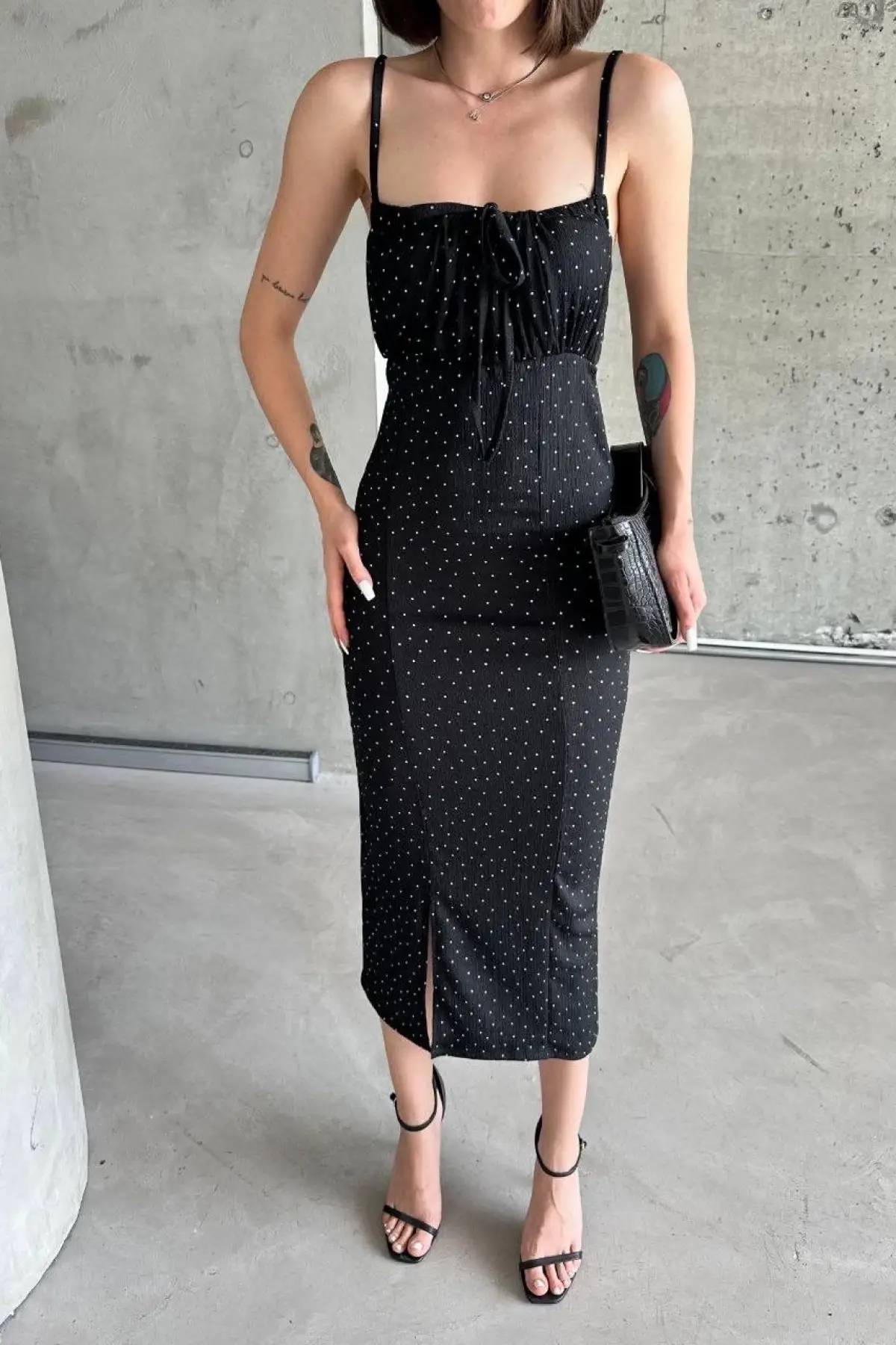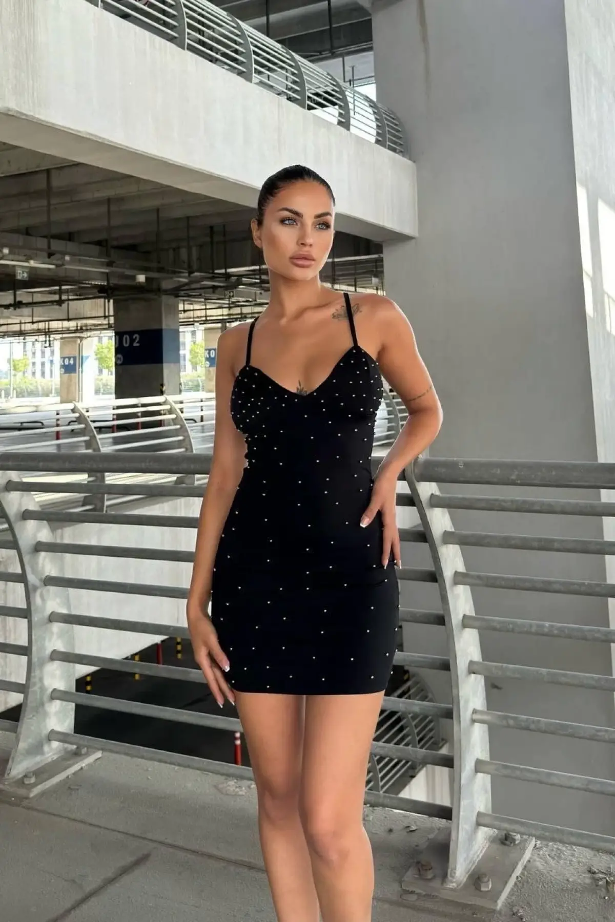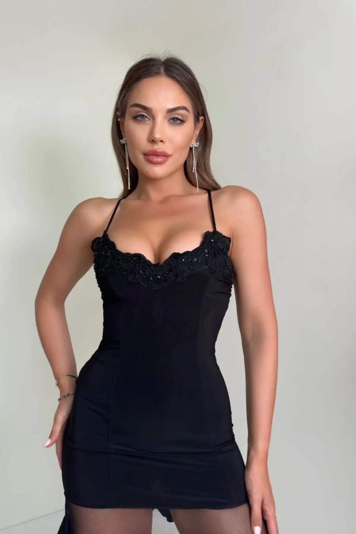 Askılı Taşlı Mini Elbise