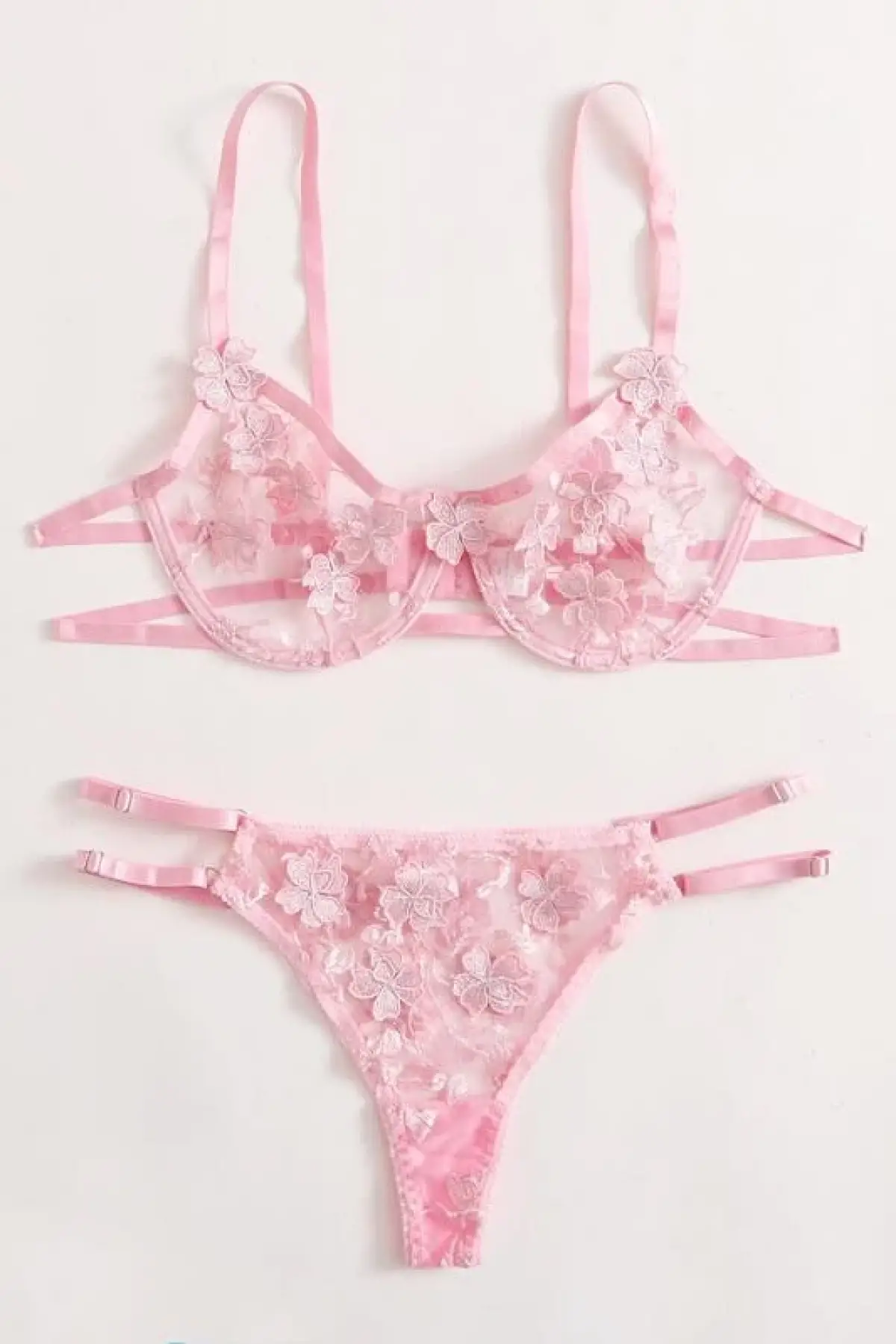 Papatya Işlemeli Sim Nakışlı Pembe Balenli Sütyen Takım